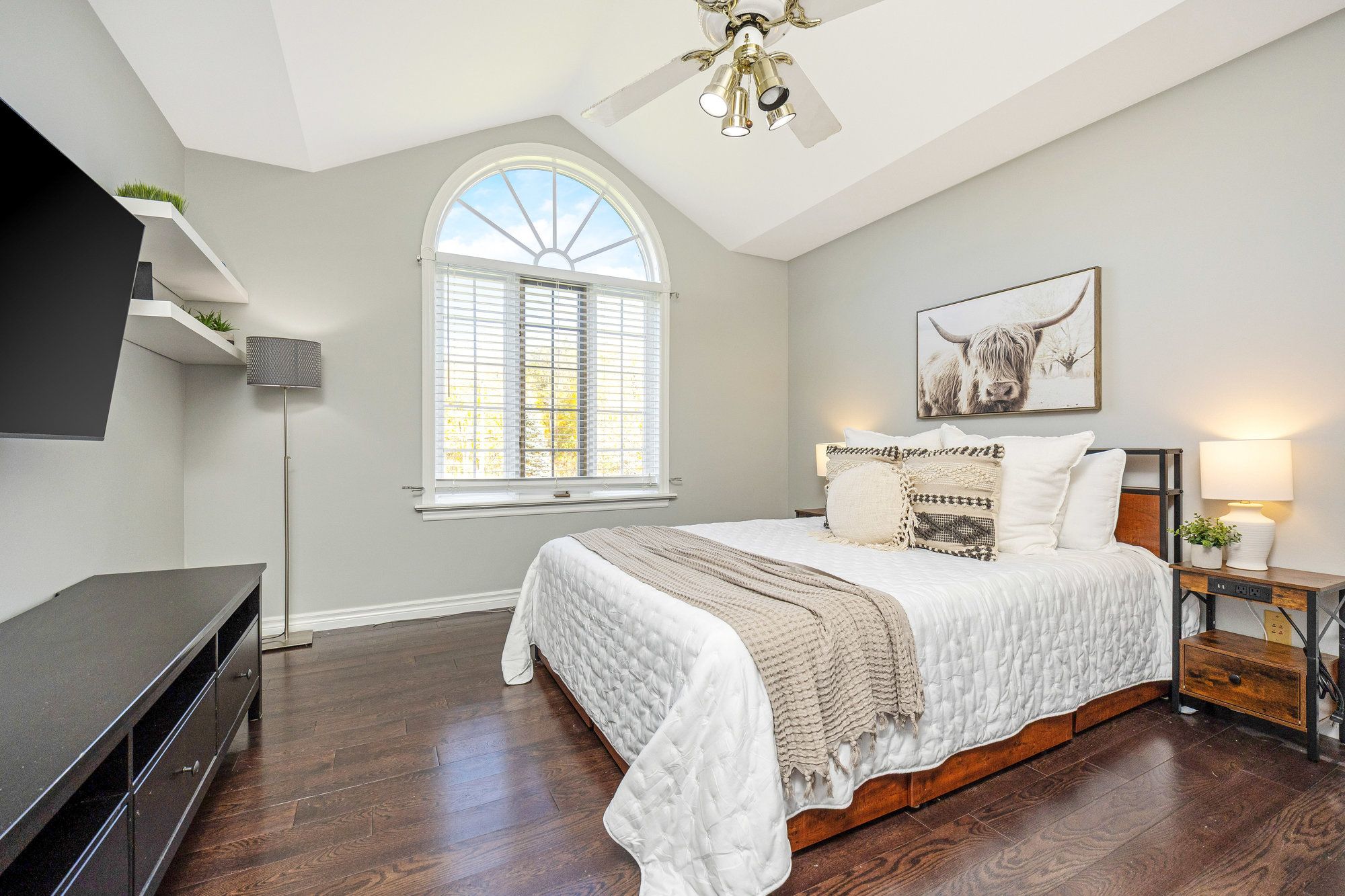 Welcome to this exceptionally renovated and energy efficient r2000 4-bedroom masterpiece. Situated on a sprawling 2. 18-acre corner lot in an exclusive executive cul-de-sac community in campbellville, this stunning residence boasts a spacious layout, ideal for both family living and entertaining. As you enter the front door the oversized foyer with 2 separate closets and grand "scarlett o'hara" staircase will leave you breathless. The open concept main floor provides tons of room for the whole family along with a renovated primary bedroom suite with spa-like 5 pcs ensuite bathroom, massive walk-in shower and deep soaker tub. The heart of the home is the open-concept great room, including gas fireplace and vaulted ceiling with skylights, which flows seamlessly into a breakfast area and gourmet kitchen equipped with top-of-the-line appliances, beautiful cabinetry, elegant quartz countertops and practical farmers sink. Step outside to enjoy your expansive outdoor space, perfect for hosting gatherings or simply enjoying the serene surroundings. As you ascend the gorgeous wood stairs to the second floor you are greeted with a juliet balcony overlooking the greatroom below. Designed with comfort and style in mind and featuring tons of natural light there are 3 additional generous sized bedrooms along with a renovated 4 pcs bathroom. Additional highlights include a three-car garage with 2 ev chargers, plenty of storage and parking spaces, as well as a separate entrance leading to a fully finished basement that can serve as an in-law suite, home office, or entertainment area. This property represents a rare opportunity with a potential 2nd driveway to the rear yard. Enjoy luxurious living in a prestigious neighborhood, combining privacy, space, and modern amenities. Don't miss your chance to call this exquisite property home!