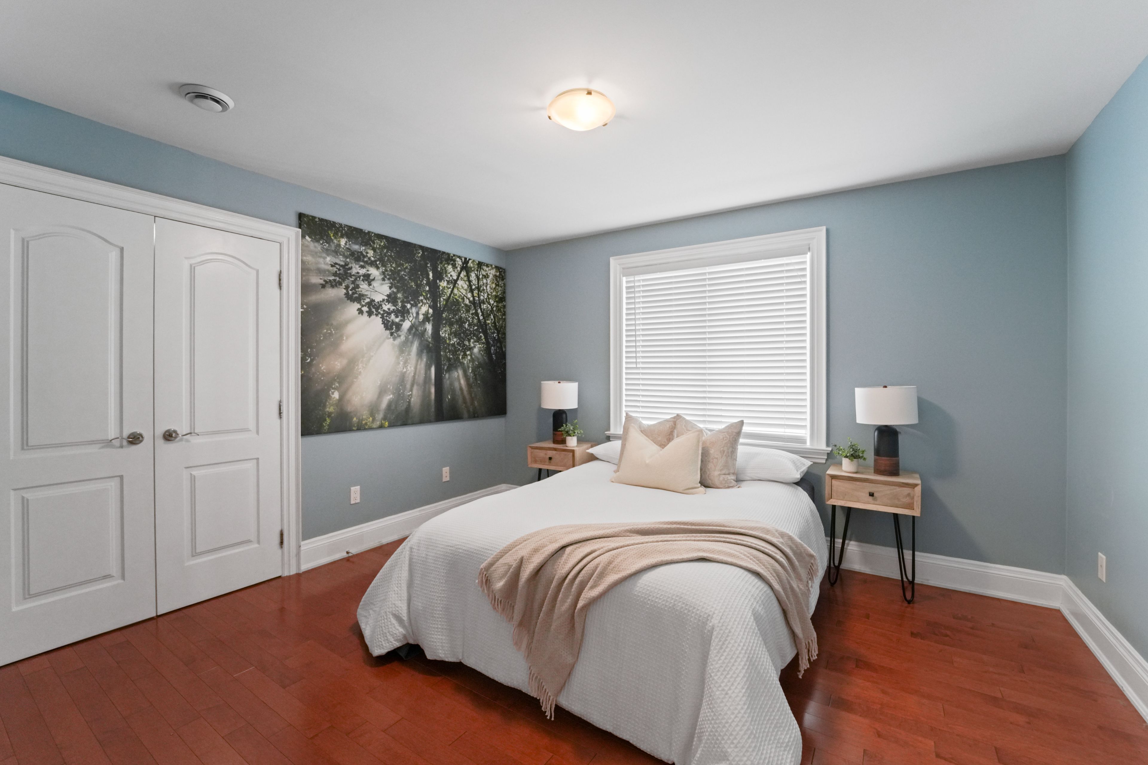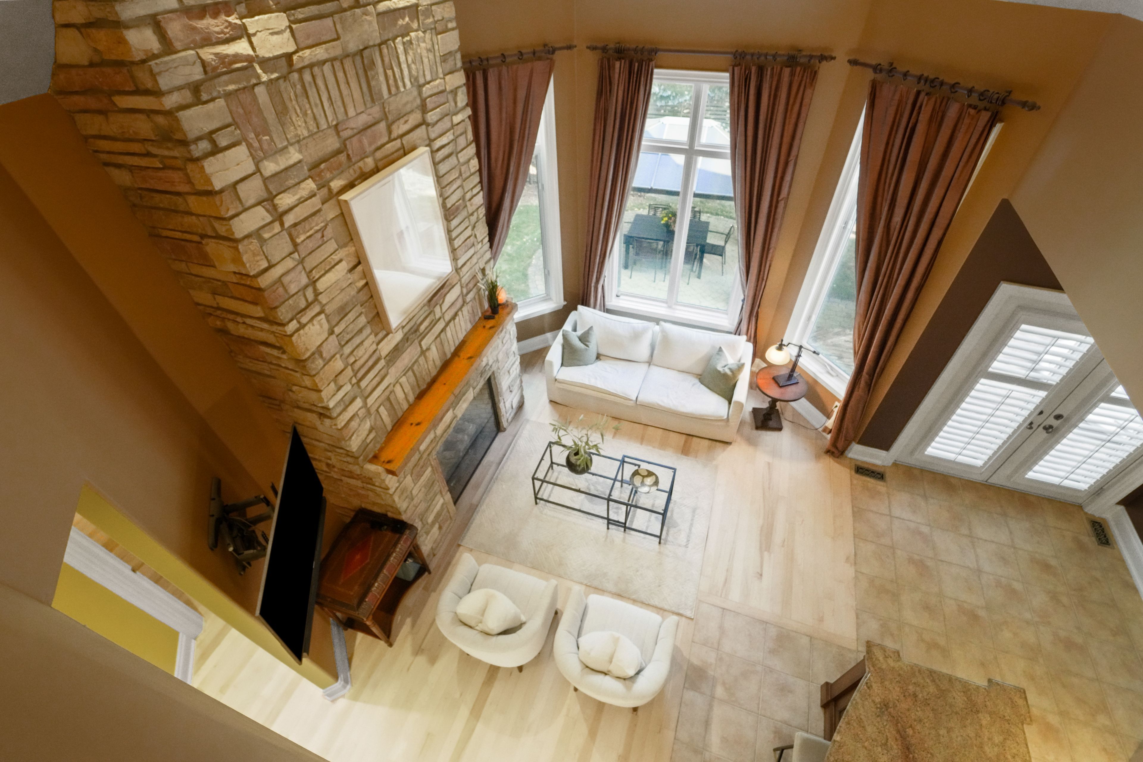 • Rich hardwood floors and a cozy gas fireplace enhance the interior.