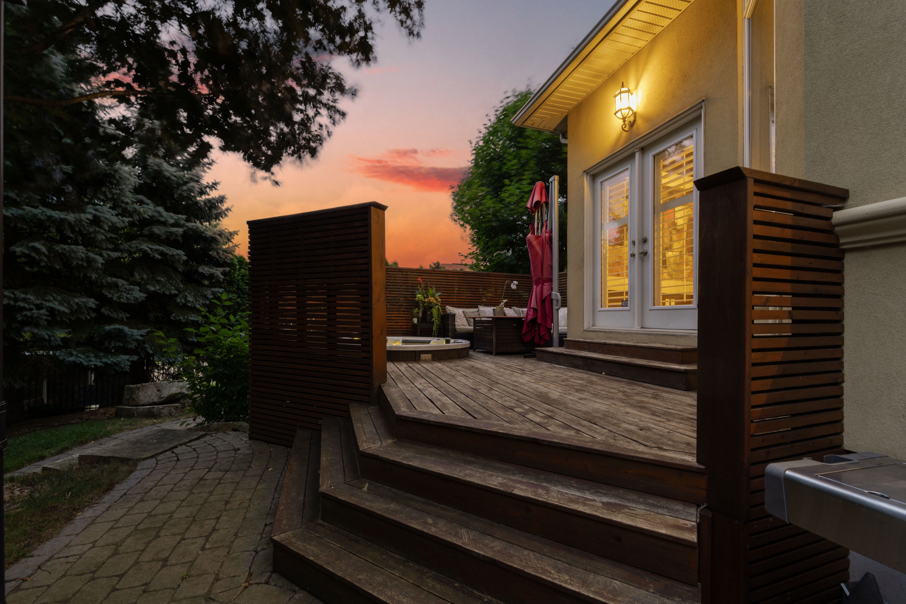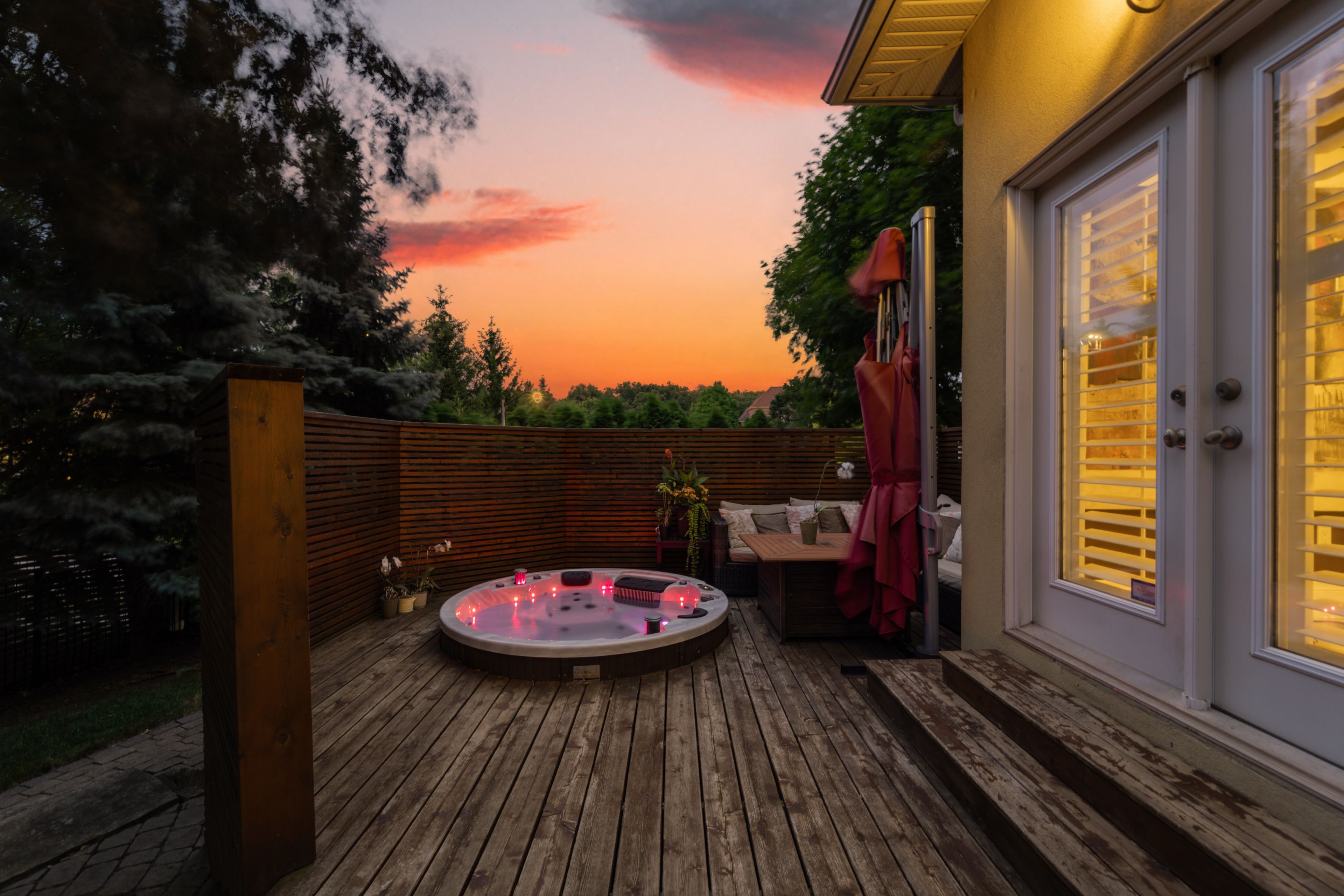Welcome to 2258 providence rd! Gracefully set on a premium 62 x 88 ft corner lot in oakville's coveted river oaks, this executive residence is wrapped in mature trees and finished with a refined stucco exterior, offering distinguished curb appeal and a thoughtfully crafted interior. Inside, rich hardwood floors span the main and upper levels, anchored by a gas fireplace that brings warmth to the heart of the home. The charming kitchen is both stylish and functional, featuring granite countertops, ceramic flooring, a sleek centre island, and direct access to a private backyard oasis. Out back, enjoy a beautifully landscaped setting complete with a raised deck, built-in hot tub, cozy lounge area, and a stone patio with gazebo, perfect for quiet mornings or lively entertaining. Designed with main-floor living in mind, the spacious primary suite is tucked away for privacy and comfort, featuring a walk-in closet and spa-like 5-piece ensuite. Whether you're downsizing, transitioning to multi-generational living, or simply seeking everyday ease, this layout offers the rare convenience of bungalow-style functionality with the added space of an upper level. Upstairs, two generously sized bedrooms share a full bath, ideal for children, guests, or home office needs. The finished lower level adds versatility with a large recreation room, dedicated office, full bathroom, and ample storage. Warm pre-finished wood floors and an upgraded air duct system with wind turbine ensure comfort throughout every season. Tucked in a connected, family-oriented community just steps to river oaks community centre, lions valley park, sixteen mile creek trails, top-rated schools, oak park shopping plaza, and with quick access to the 403, 407, and oakville go, this home blends lifestyle and location with exceptional ease.