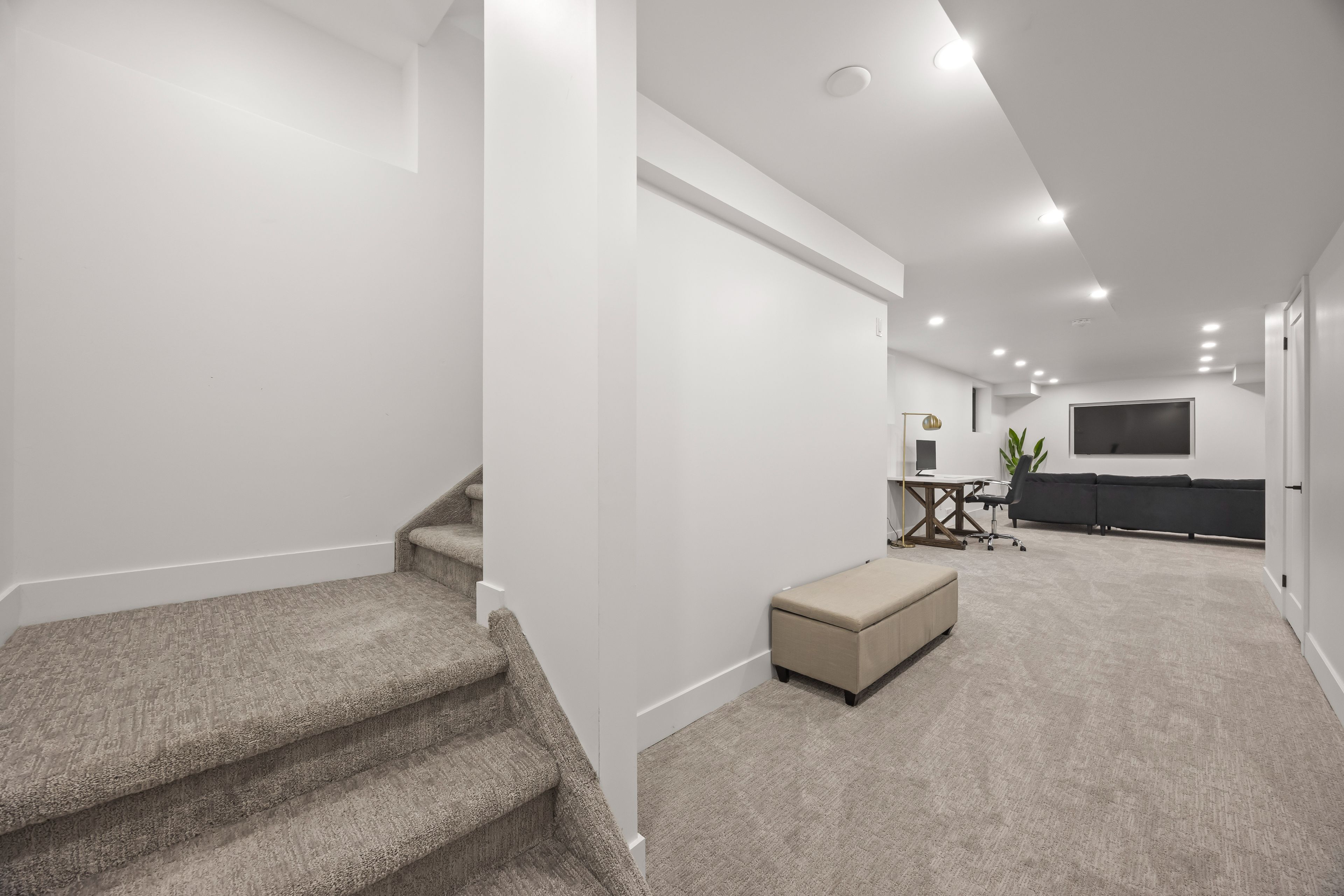 • Finished basement includes a fourth bedroom and full bathroom with glass shower.
