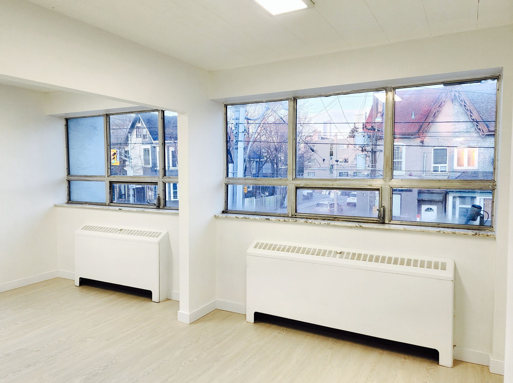 Incredible opportunity to lease this professional office space located at bathurst and queen! Recently renovated corner suite with private lobby, three offices, updated bathroom, ac plusoperable windows for fresh air, soaked in natural light, long or short (2 years +) leases willbe considered. Utilities extra, onsite parking available, private entrance. Can be combined with other unitsfor additional space -- up to 6000 sf total. Don't miss this opportunity.