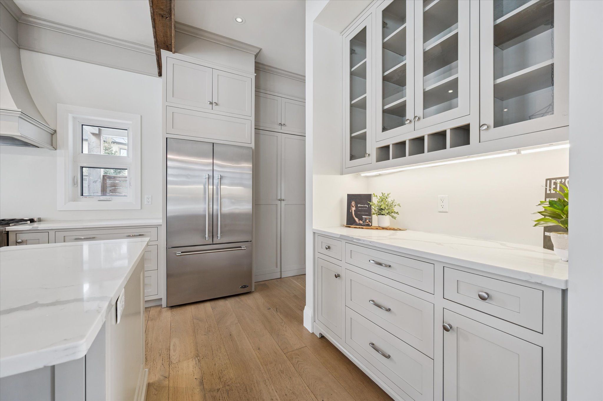 • Gourmet kitchen features chef-grade appliances and a hidden walk-in pantry.