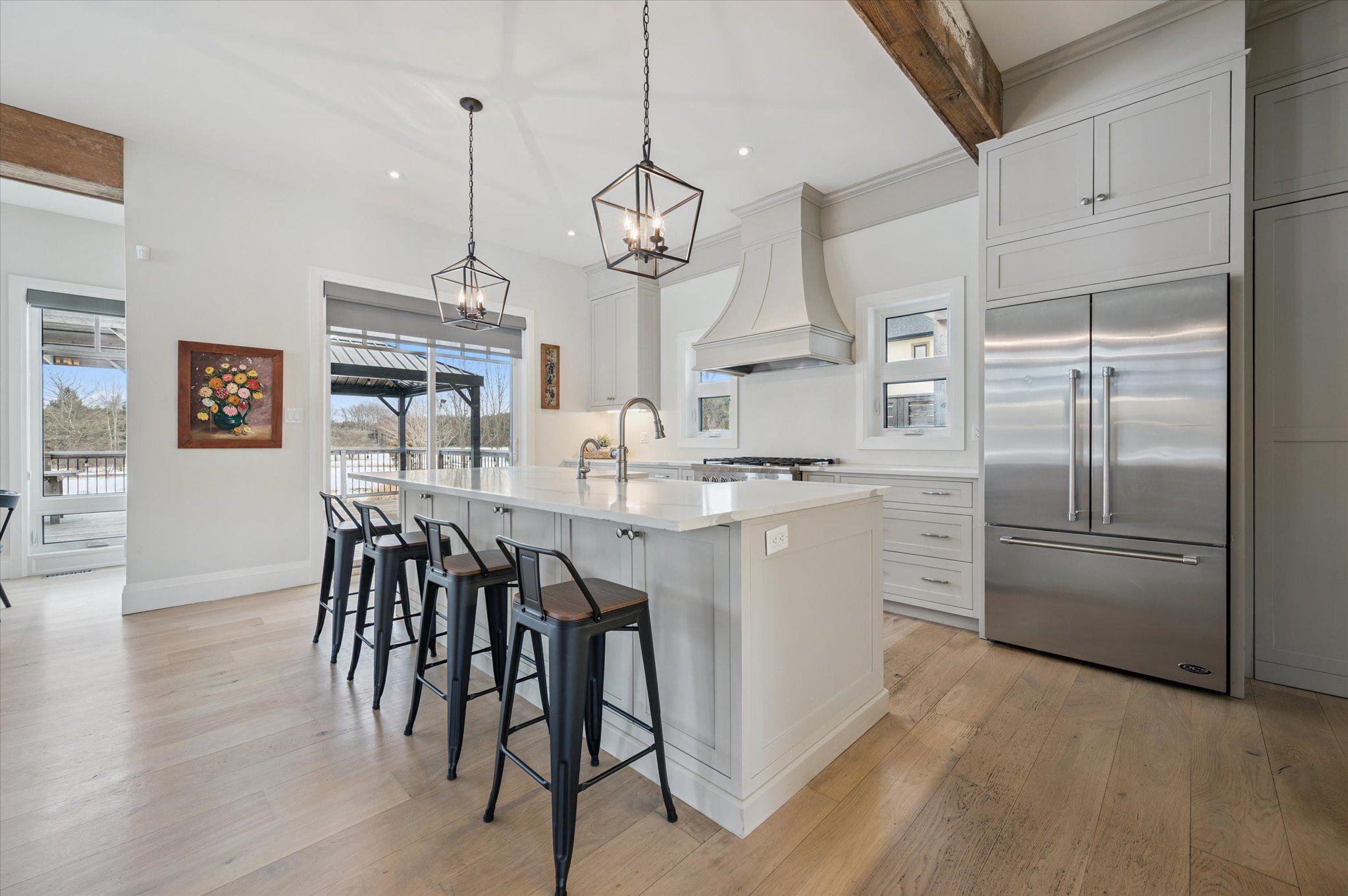 Set on over an acre just minutes from the amenities, schools, and highway 401 access of guelph's south end, 226 carter road in puslinch offers the rare opportunity to enjoy peaceful country living without sacrificing convenience. Built by renowned sloot construction, this thoughtfully designed modern farmhouse blends timeless character with the functionality families seek today. Offering 4+1 bedrooms, 3. 5 bathrooms, and a versatile main floor den that could easily serve as a sixth bedroom or home office, the layout is designed for both everyday living and effortless entertaining. The main level is centred around gathering spaces, while the bedrooms remain a quiet retreat upstairs. Understated luxury is evident throughout, with finished-on-site hardwood floors, exceptional millwork, custom soft-close cabinetry, quartz countertops, and designer lighting. The gourmet kitchen is a true centrepiece, featuring chef-grade appliances including a 6-burner gas range, custom built-in hood, an oversized island, and a hidden walk-in pantry. It opens to a bright dining area with walkout to the expansive rear deck. The great room makes a striking impression with its soaring two-storey ceiling, floor-to-ceiling windows, and dramatic two-sided wood-burning fireplace with full-height stone surround, also known as a mason's furnace. Reclaimed barn beams add warmth and character to the space. Upstairs, the primary suite features a walk-in dressing room and private ensuite, while three additional bedrooms share a well-appointed family bathroom overlooking the great room below. The fully finished basement offers additional flexibility with a guest bedroom, full bathroom, and spacious recreation room with gas fireplace. Outside, the property provides endless possibilities-from gardens and bonfires to a future pool, skating rink, or even a small orchard. A truly special offering combining craftsmanship, space, and lifestyle in an exceptional setting.