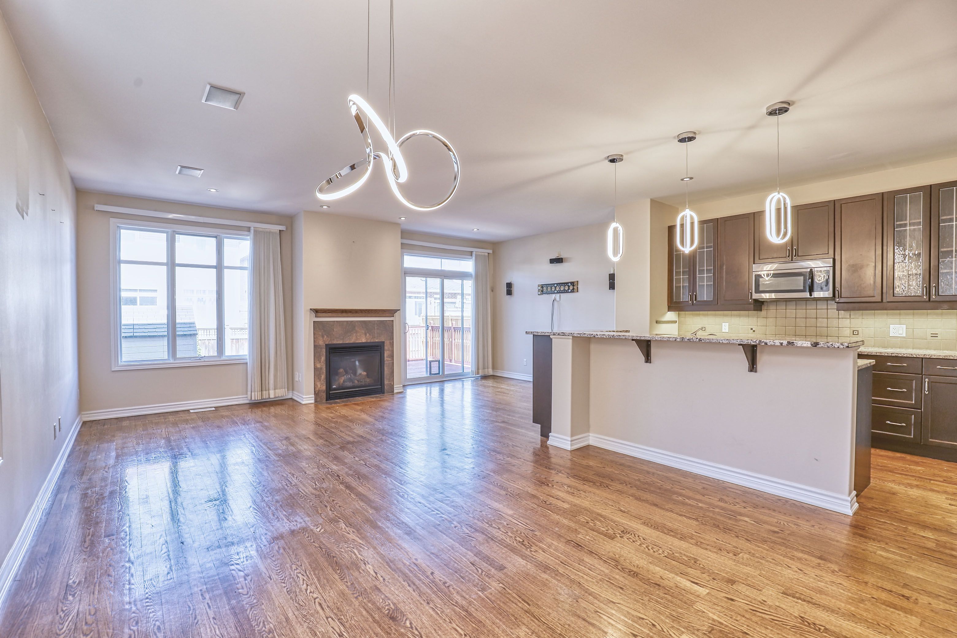 • Bright foyer leads into a sun-filled living room with a gas fireplace.
