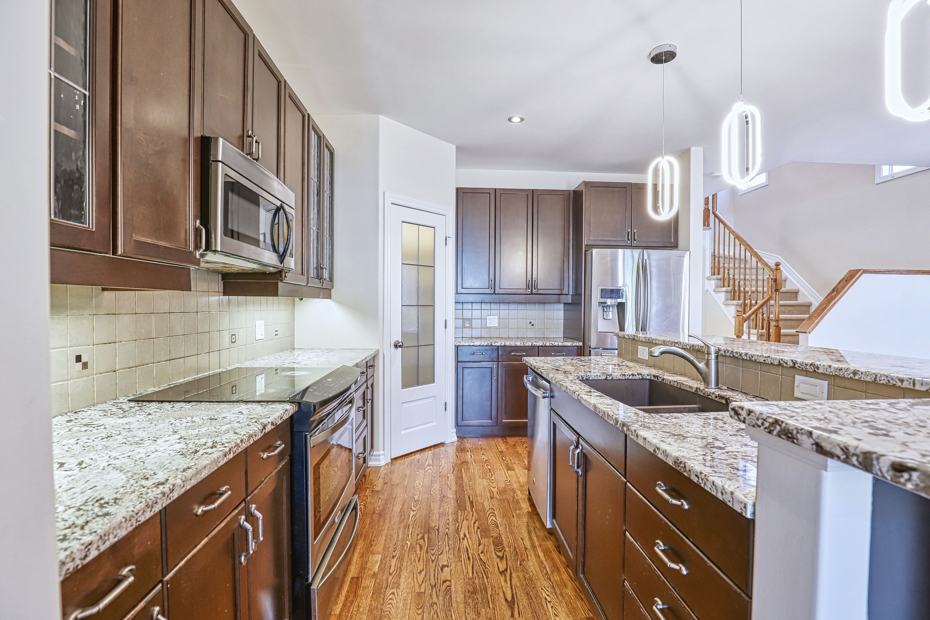 • Spacious kitchen with a walk-in pantry and ample counter space.