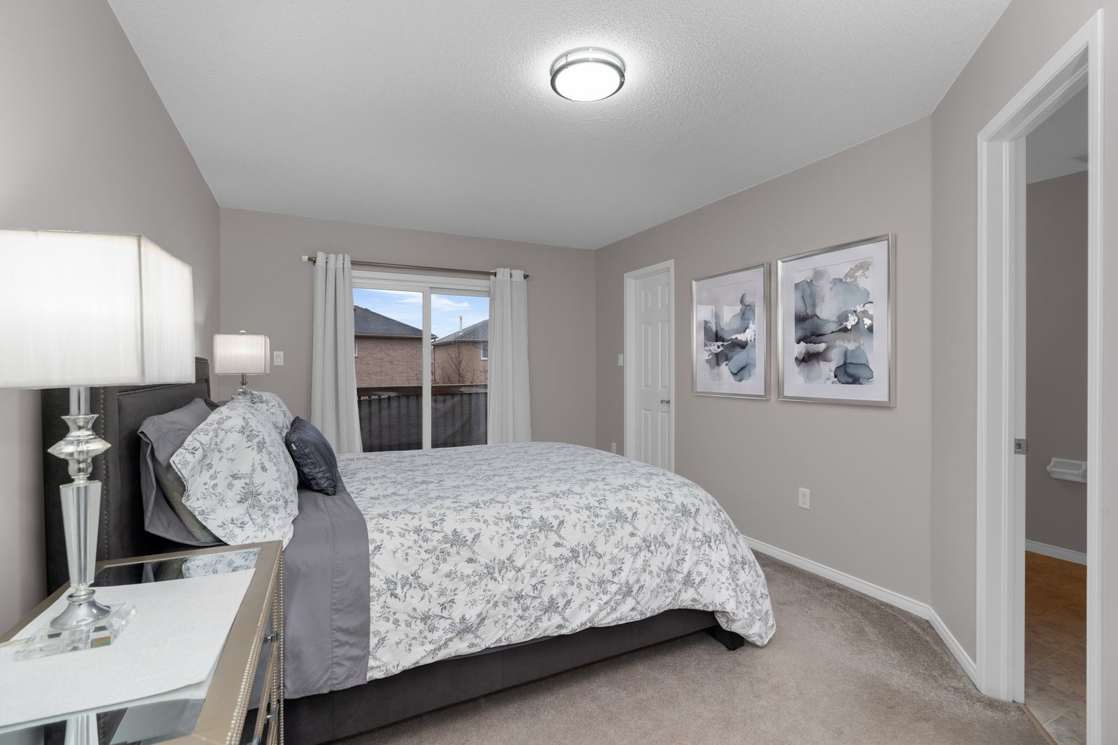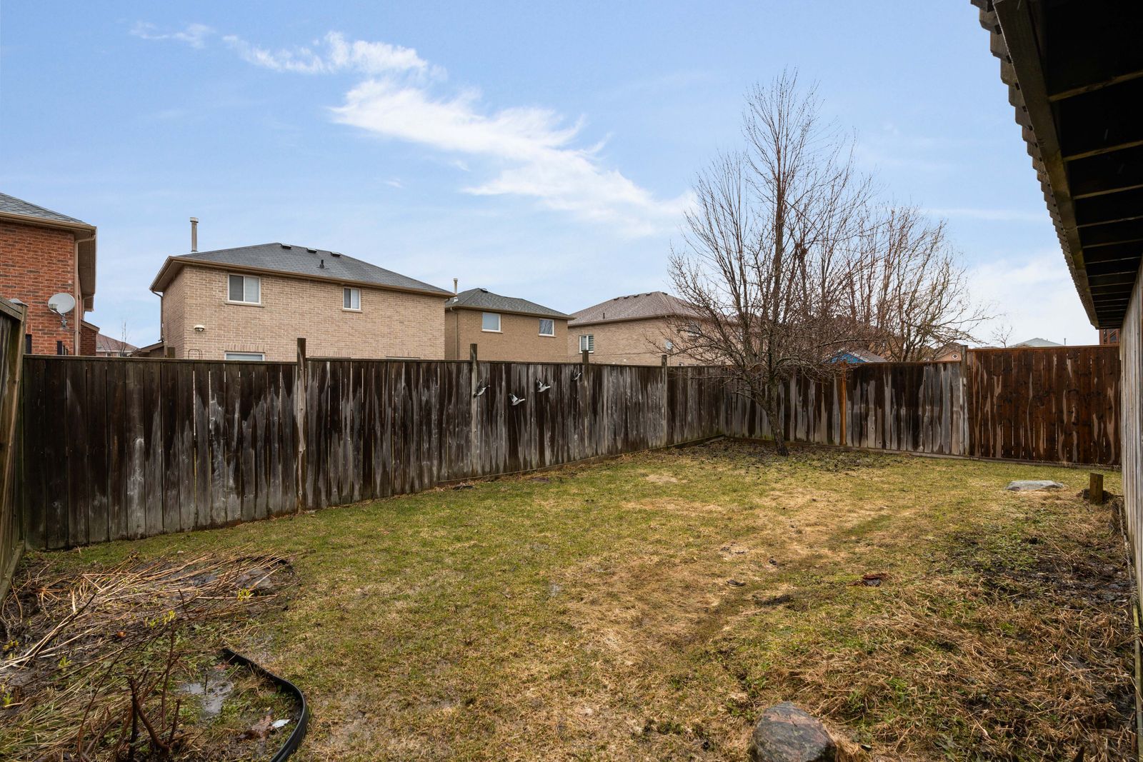 • Large windows and sliding glass walkout connect to a private backyard.
