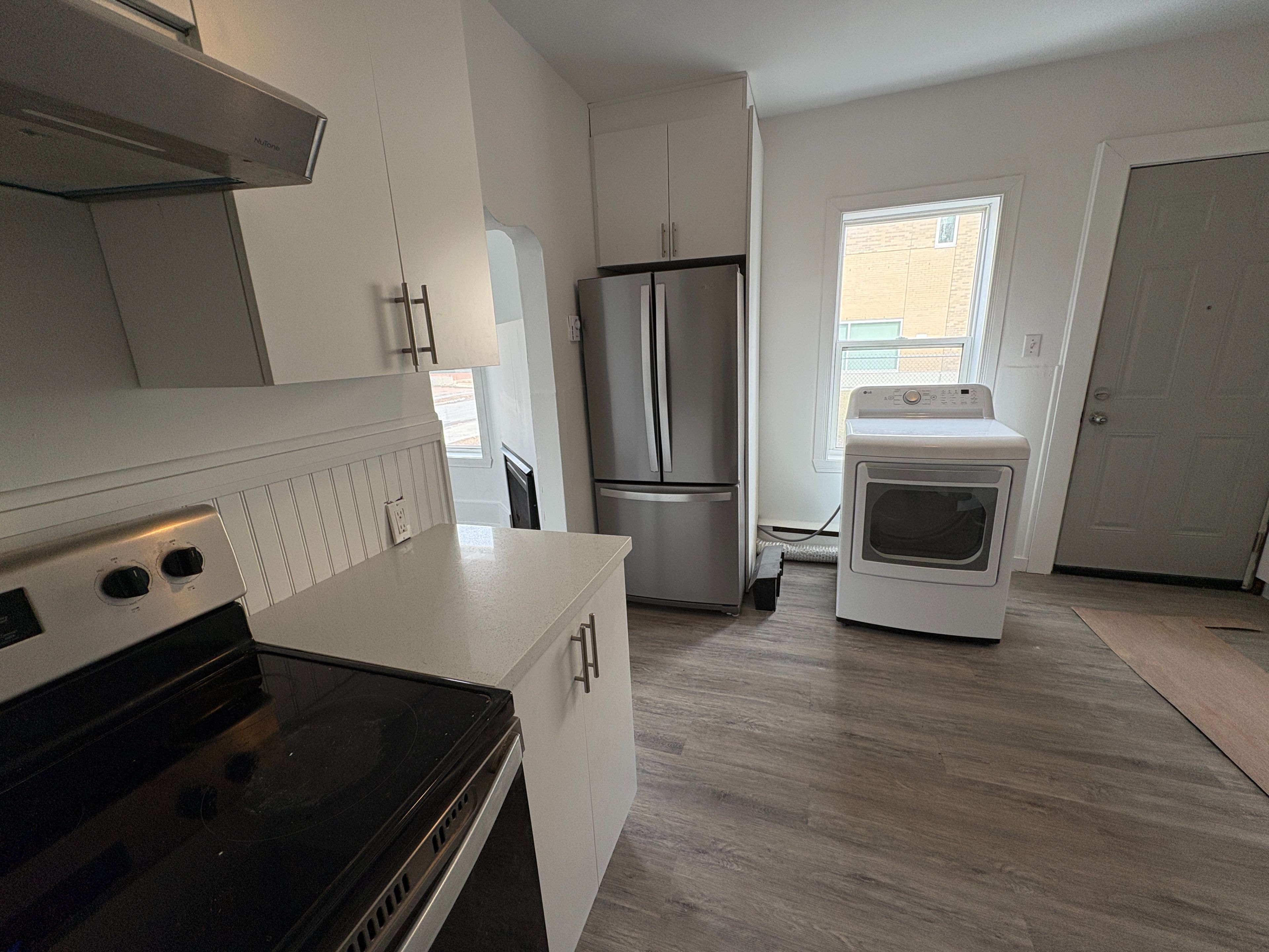Beautifully renovated two-level apartment available for rent in a prime cornwall location, just steps from the st. Lawrence river, the cornwall civic complex, and cornwall square for all shopping and daily needs. This bright and modern unit offers 2 bedrooms and 1 full bathroom, featuring fresh paint throughout, brand new flooring, a new water heater, and a completely new kitchen with quartz countertops and new stainless steel appliances. The main floor includes the kitchen and living room, while the upper level offers two comfortable bedrooms and the bathroom, creating a functional and private layout. One parking space is included. Rent does not include utilities. The unit is pet-friendly (one animal permitted), non-smoking, and available now with a minimum one-year lease. First and last month's rent are required. Prospective tenants must provide a recent pay stub, letter of employment, completed rental application, government-issued id, and a recent credit report.