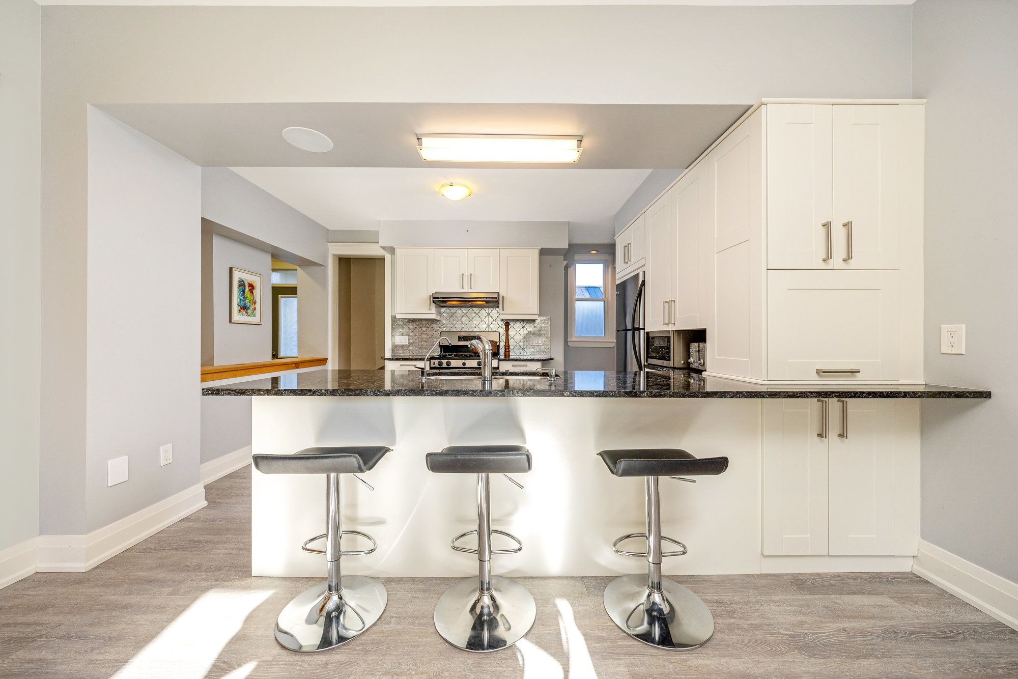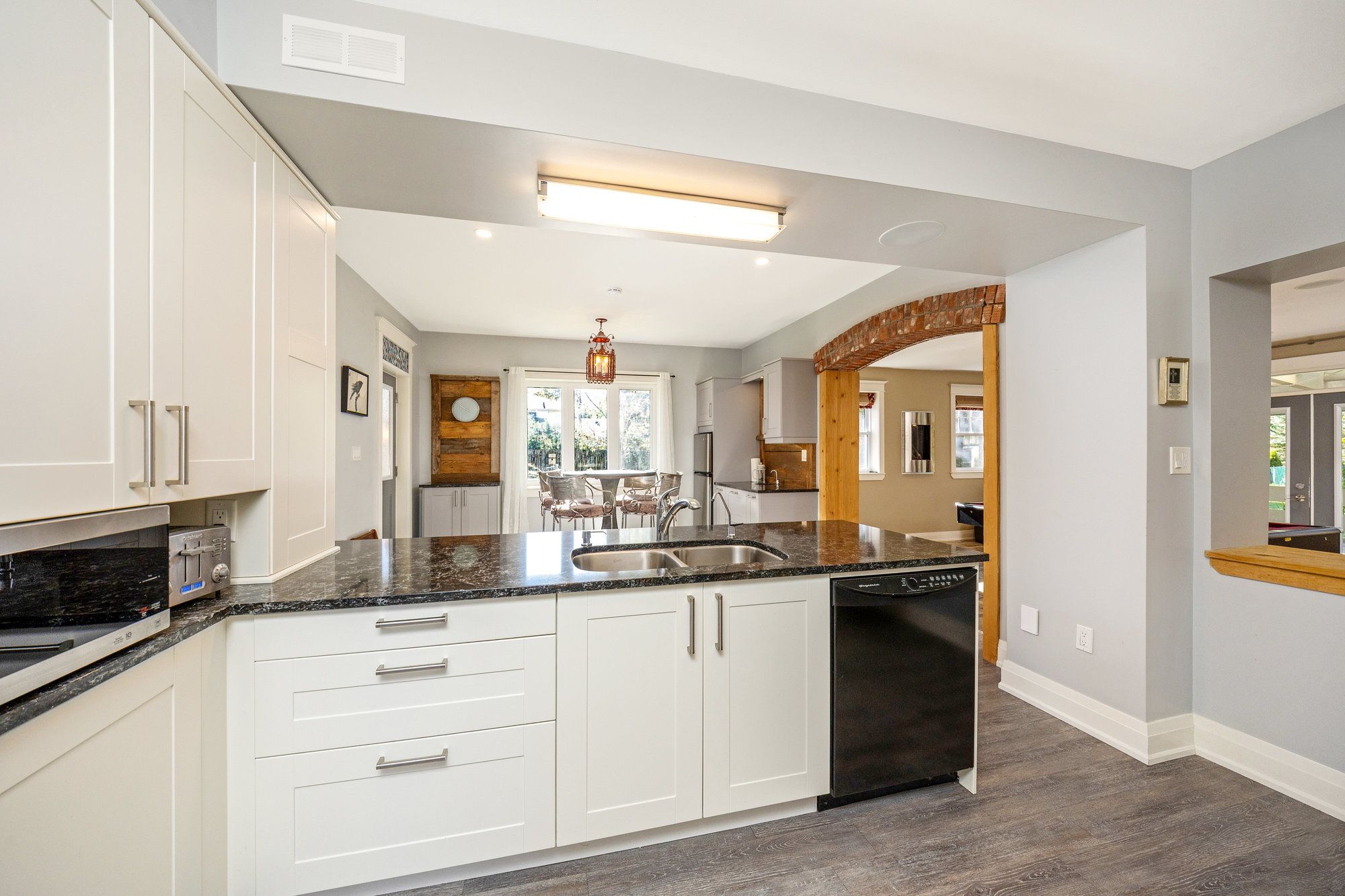 • Large kitchen with plenty of cabinets, wet bar, and access to a sun porch.