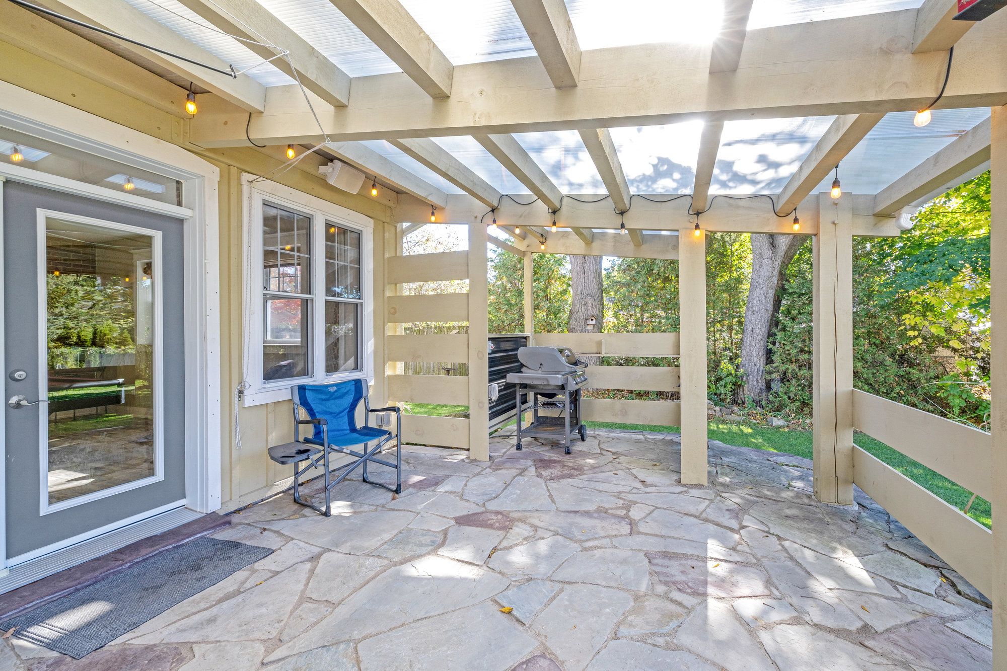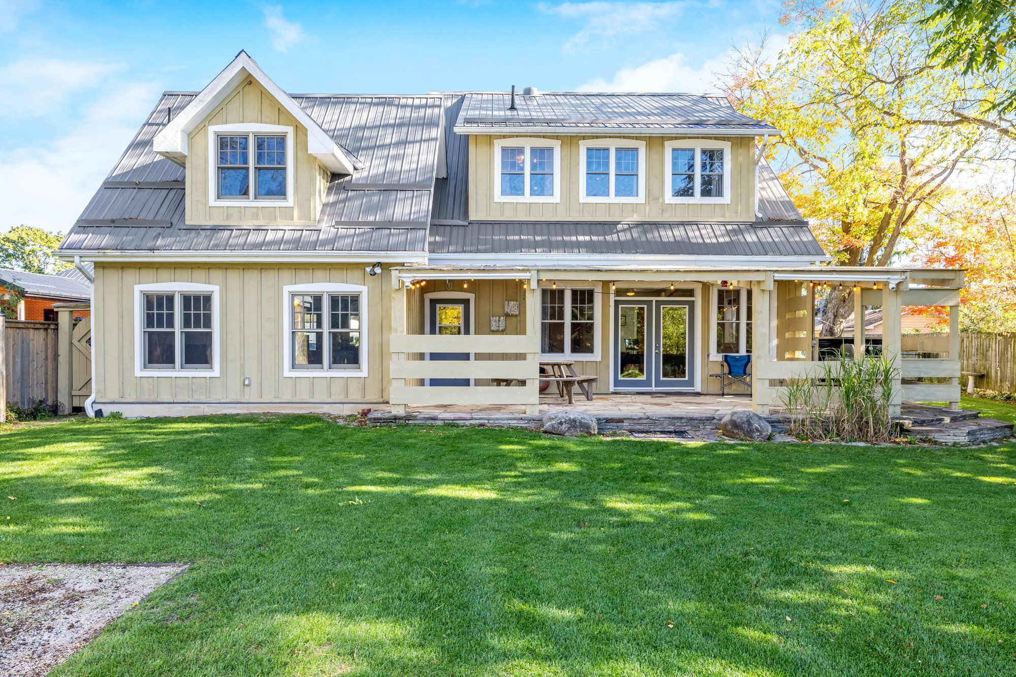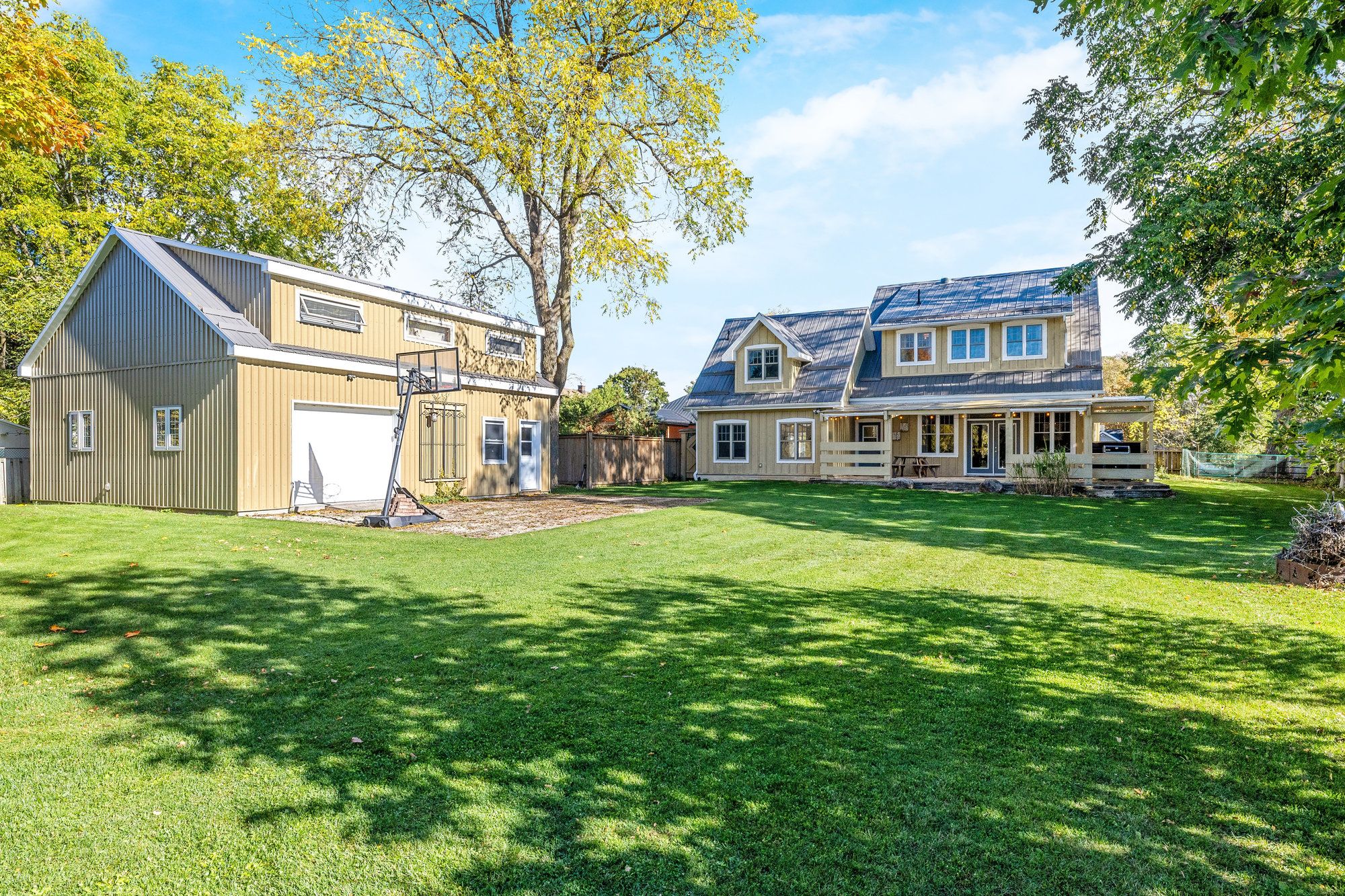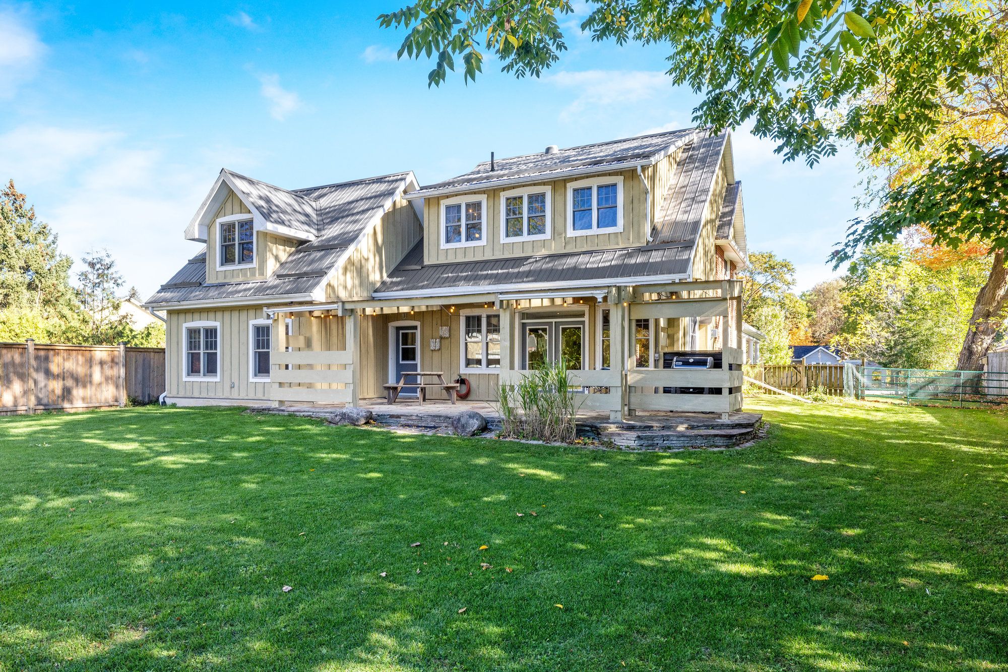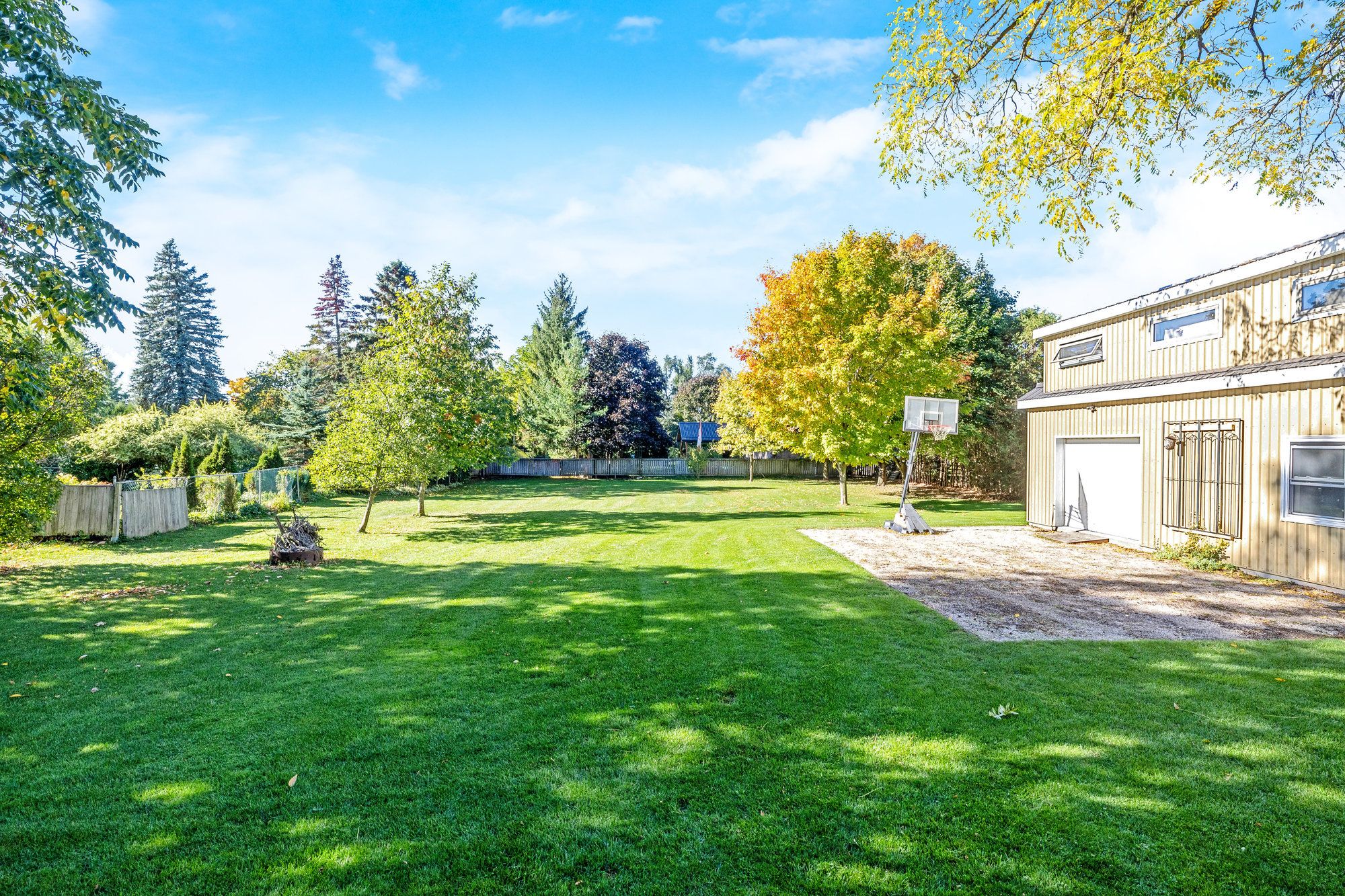 • Expansive backyard with trees and gardens, ideal for outdoor activities and gatherings.