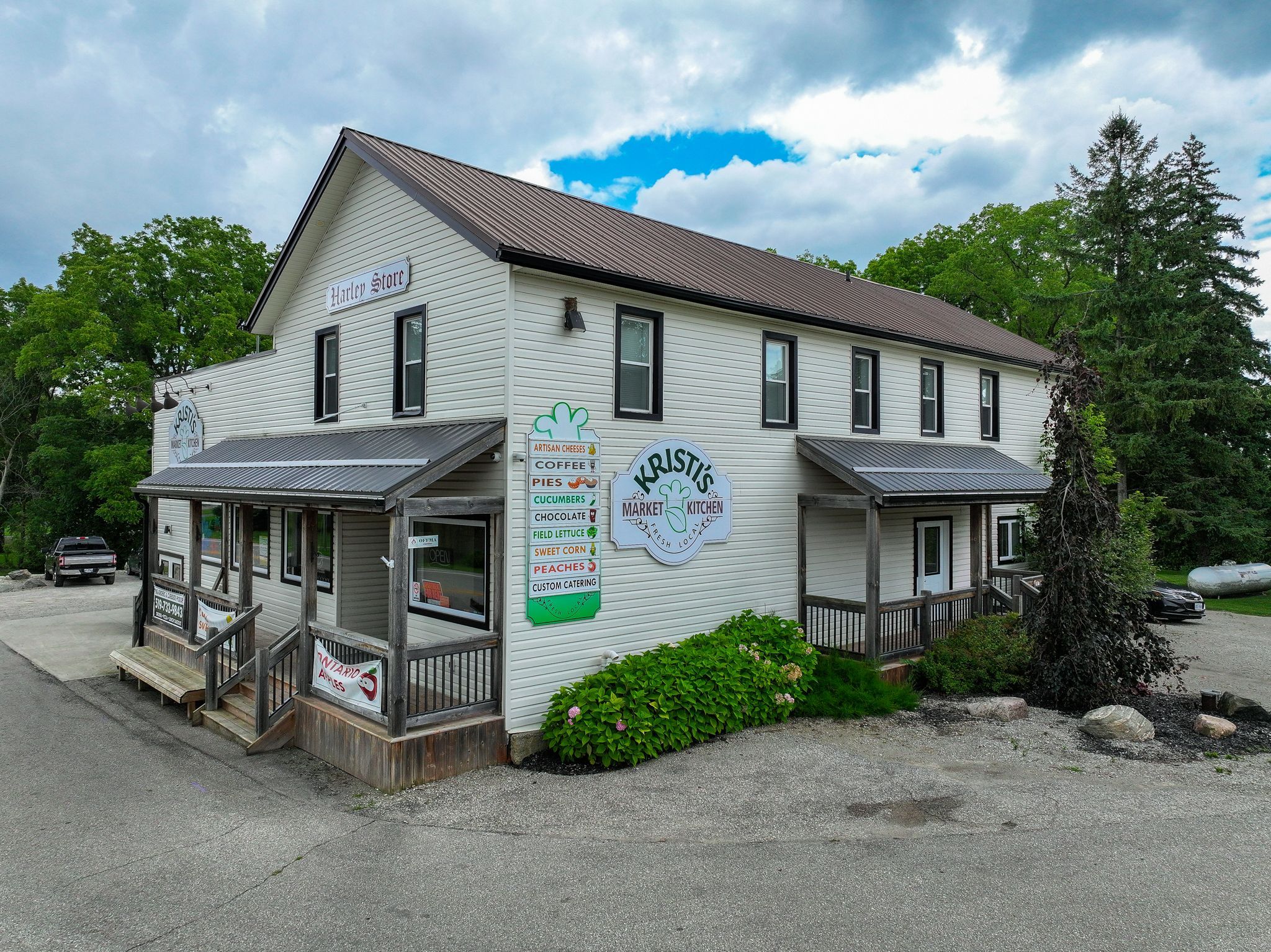 An exceptional commercial property in harley, currently a variety store, bakery, and residential suites! This versatile space includes a 1,120 sq. Ft main store with a connected 650 sq. Ft bakery, featuring nearly 10 foot ceilings and durable trusscore walls. The building is constructed with an all-metal roof, ensuring longevity and low maintenance, with extensive renovations and additions making this a top notch building. The property includes an 8x8 overhead door, making deliveries easy, and features epoxy floors for durability and ease of cleaning. The building is well-equipped with essential amenities, including a public/employees bathroom, a400a/208v electrical service, and an 80 kw diesel generator to keep your business running smoothly, even during power outages. The 350 sq. Ft storage area on the main level, a 11 x 14 walk in freezer, and a 11 x10walk in cooler providing ample space for inventory. Additionally, the property includes a upstairs mechanical/storage area, an office, plus a spacious large new basement with a smaller but useable older basement portion that houses the mechanical equipment. The property also features two residential units on the upper level, each with its own hydro panel. Unit a is a space with two bedrooms and a four-piece bathroom, and comes with a fridge, stove, washer, and dryer. The second unit offers a single bedroom with its own patio, and includes a fridge, and dryer with rent at $1,800 a month each. This property is a rare find, offering everything you need for a thriving retail or bakery business with the added bonus of rental income from the residential units.