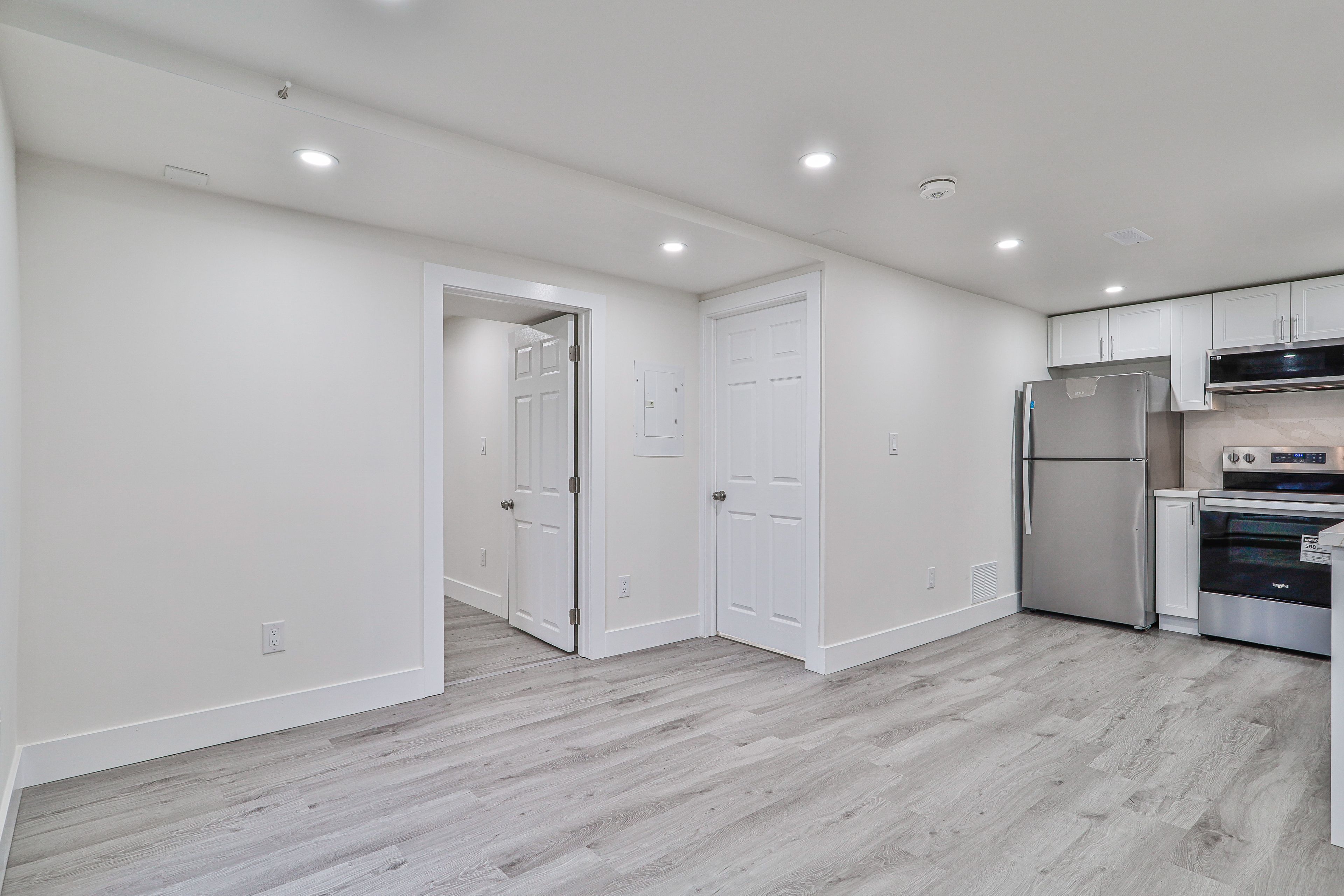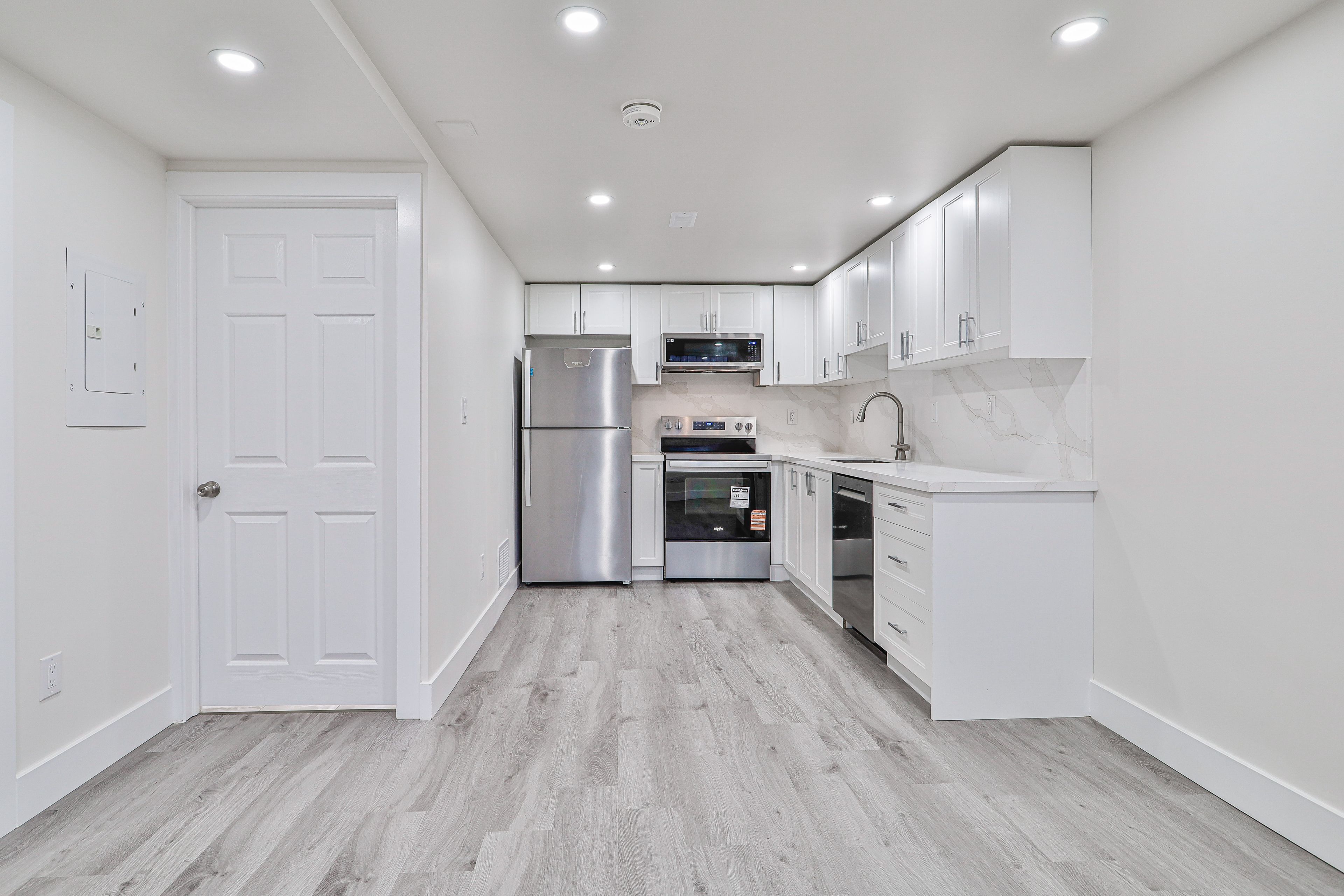 Brand new, never-lived-in 1-bedroom legal lower-level unit for lease with one parking, ensuite laundry and private entrance offering modern comfort, privacy, and exceptional value. Thoughtfully designed with a functional layout, this bright and inviting space is ideal for professionals or couples. Featuring a stylish contemporary kitchen with sleek cabinetry, quartz countertops, and stainless steel appliances, the unit opens into a spacious living and dining area. Large windows and quality finishes throughout enhance the bright, welcoming atmosphere. The generously sized bedroom offers ample closet space, while the modern bathroom is finished with elegant fixtures and clean design. Enjoy the convenience of a private separate entrance and exclusive in-unit laundry, providing complete independence. Situated in a desirable neighborhood close to transit, schools, parks, and everyday amenities. Tenant is responsible for 25% of utilities and snow removal.