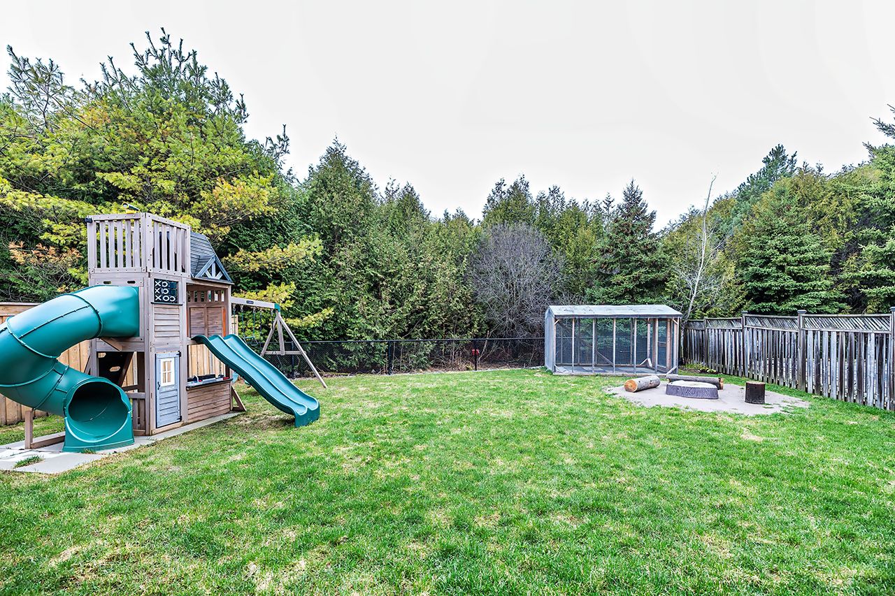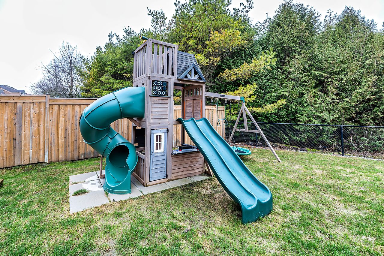• Private backyard next to Cawkers Creek, complete with play structure.
