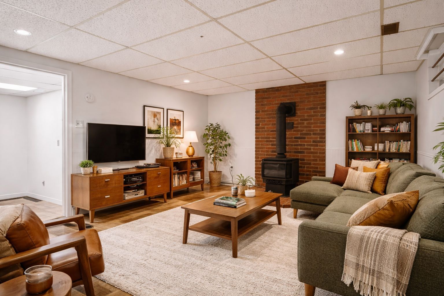 • Versatile rec room ideal for play, workouts, or movie nights.