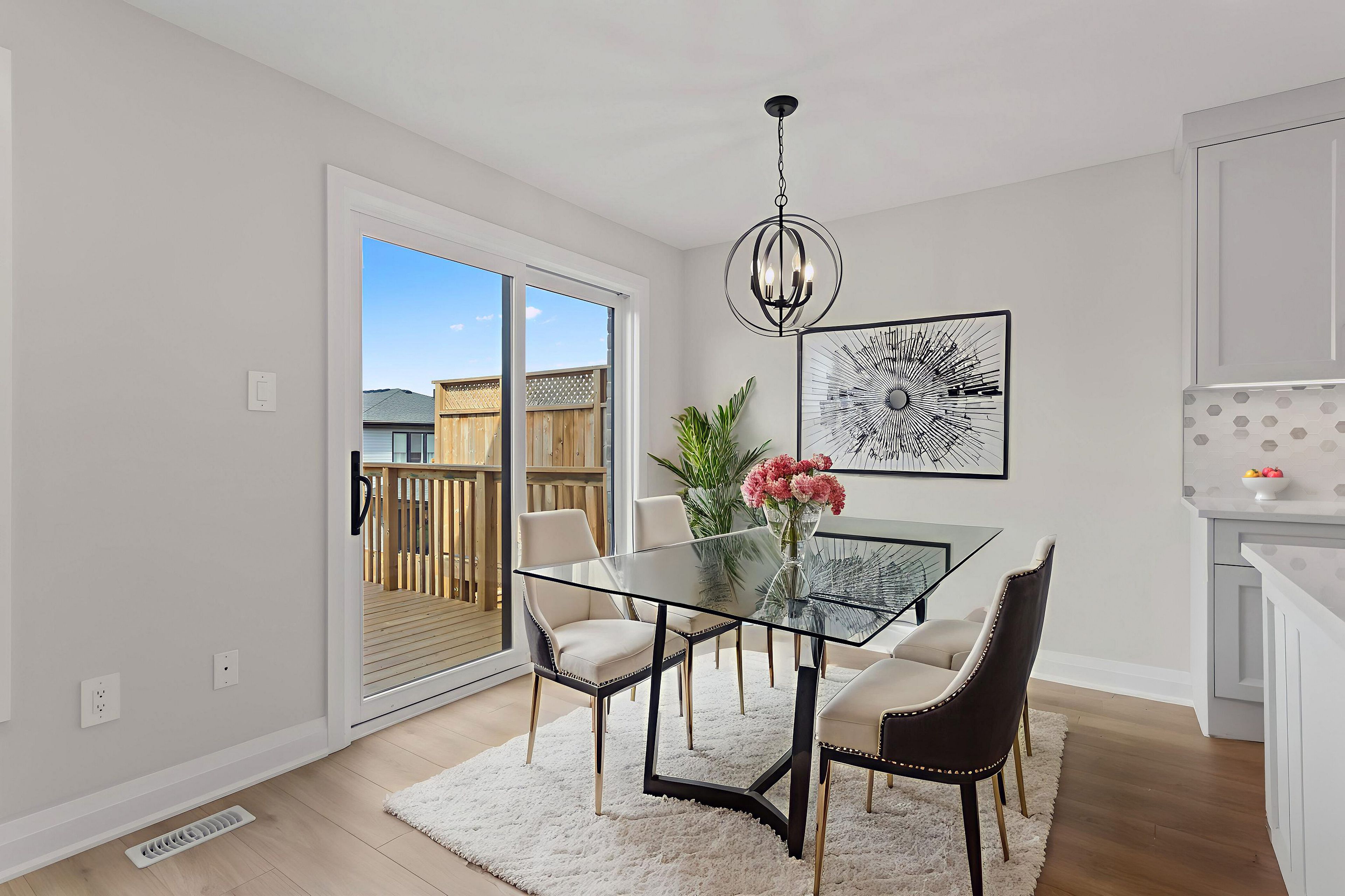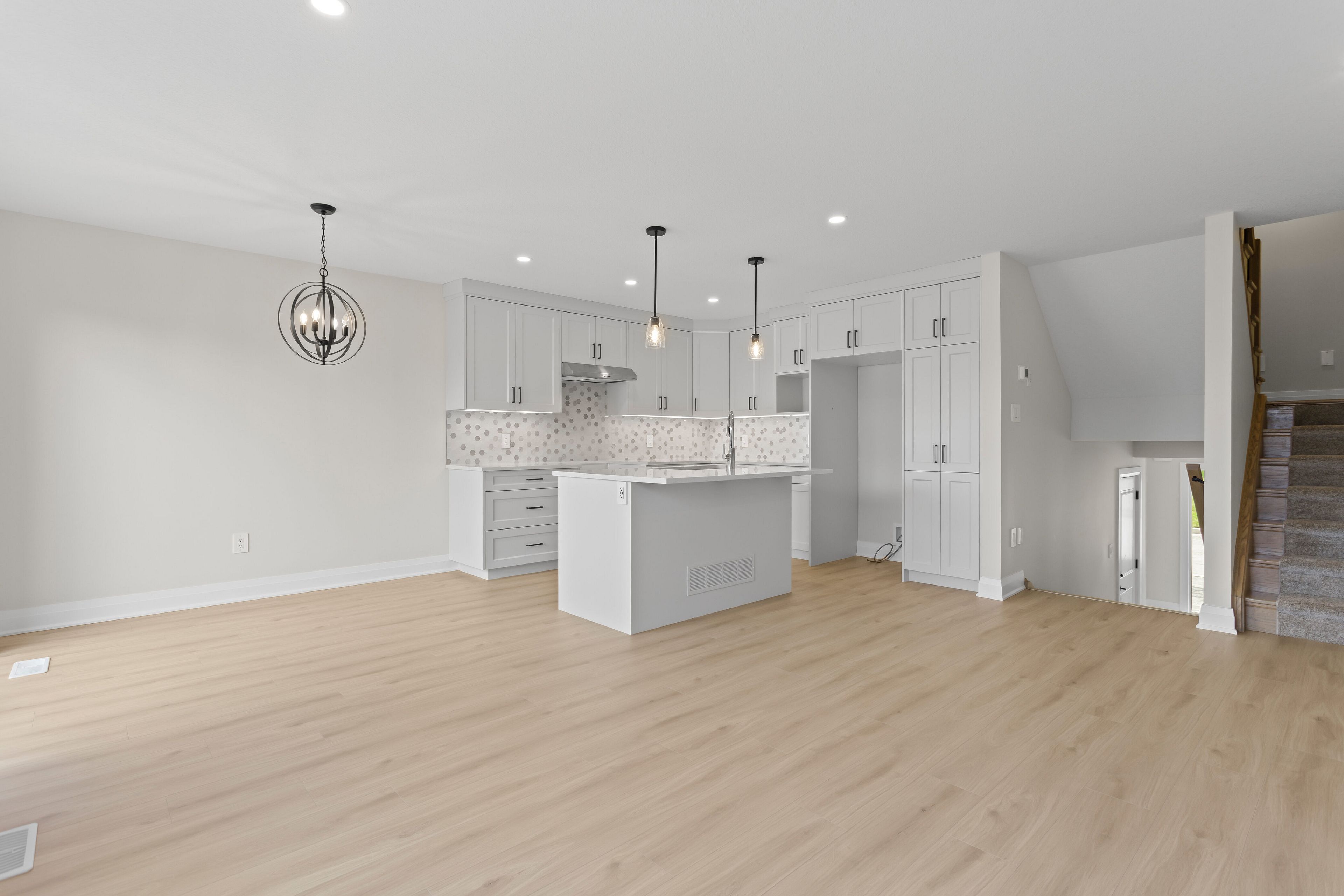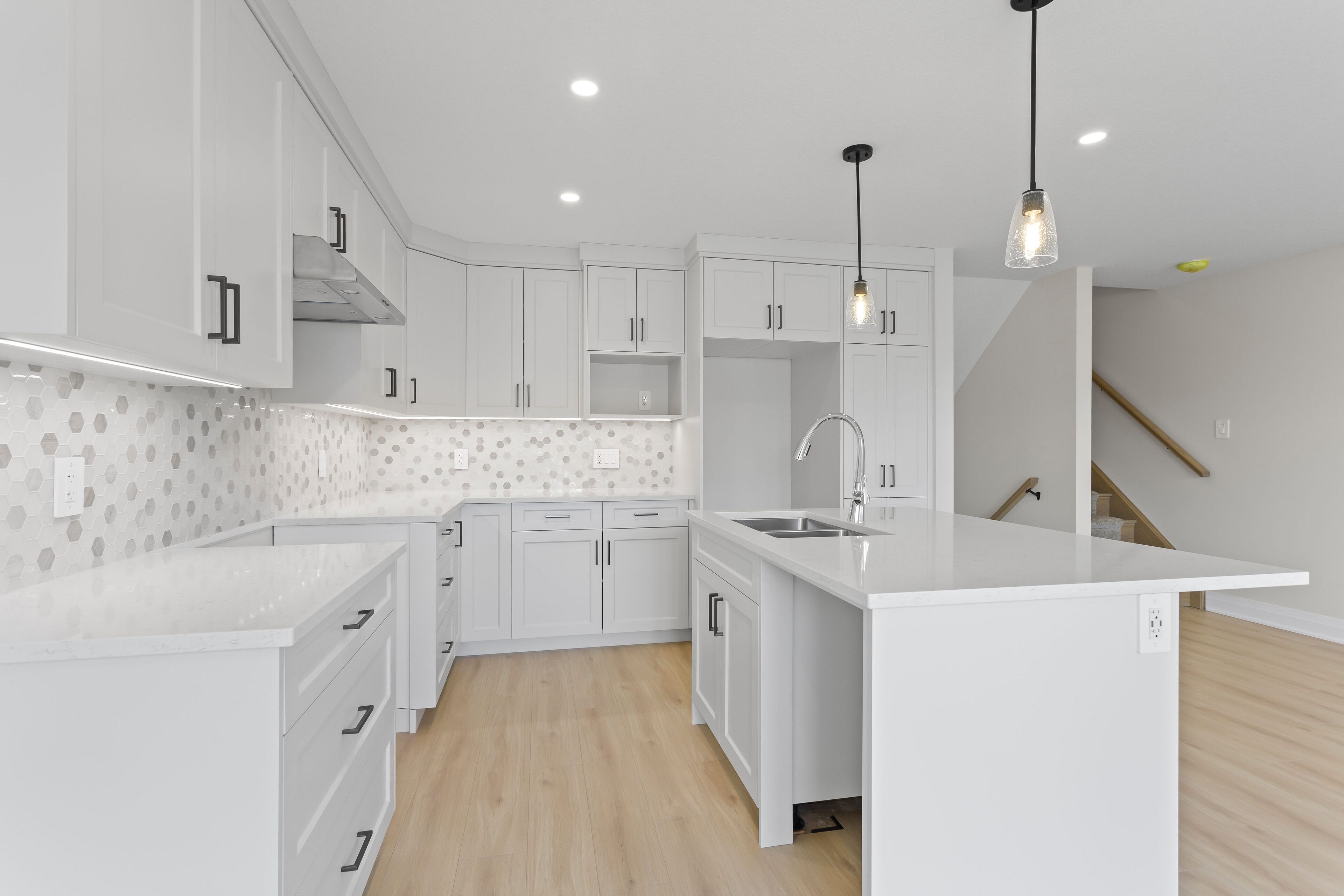 • Luxury finishes include quartz countertops and hardwood floors throughout.