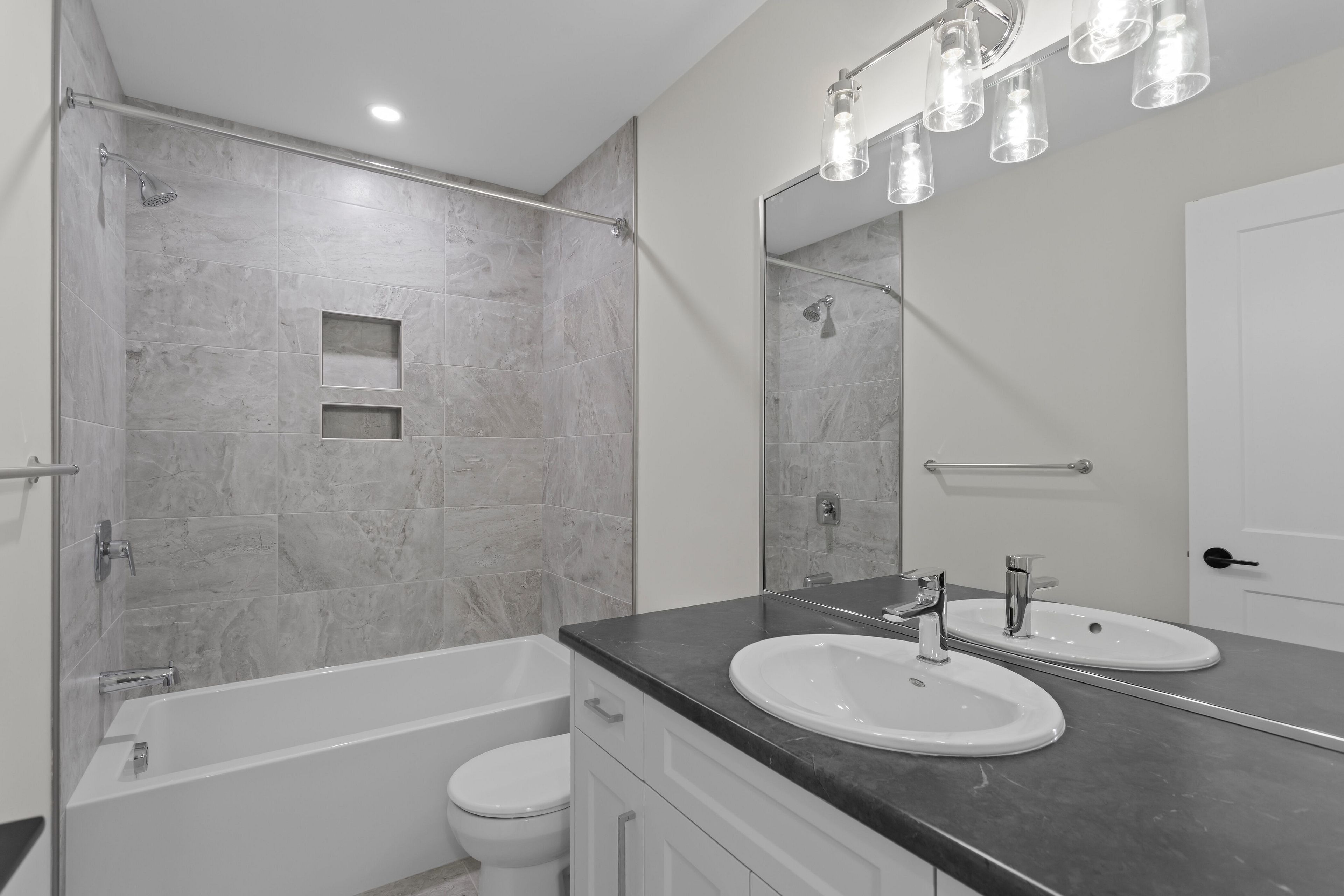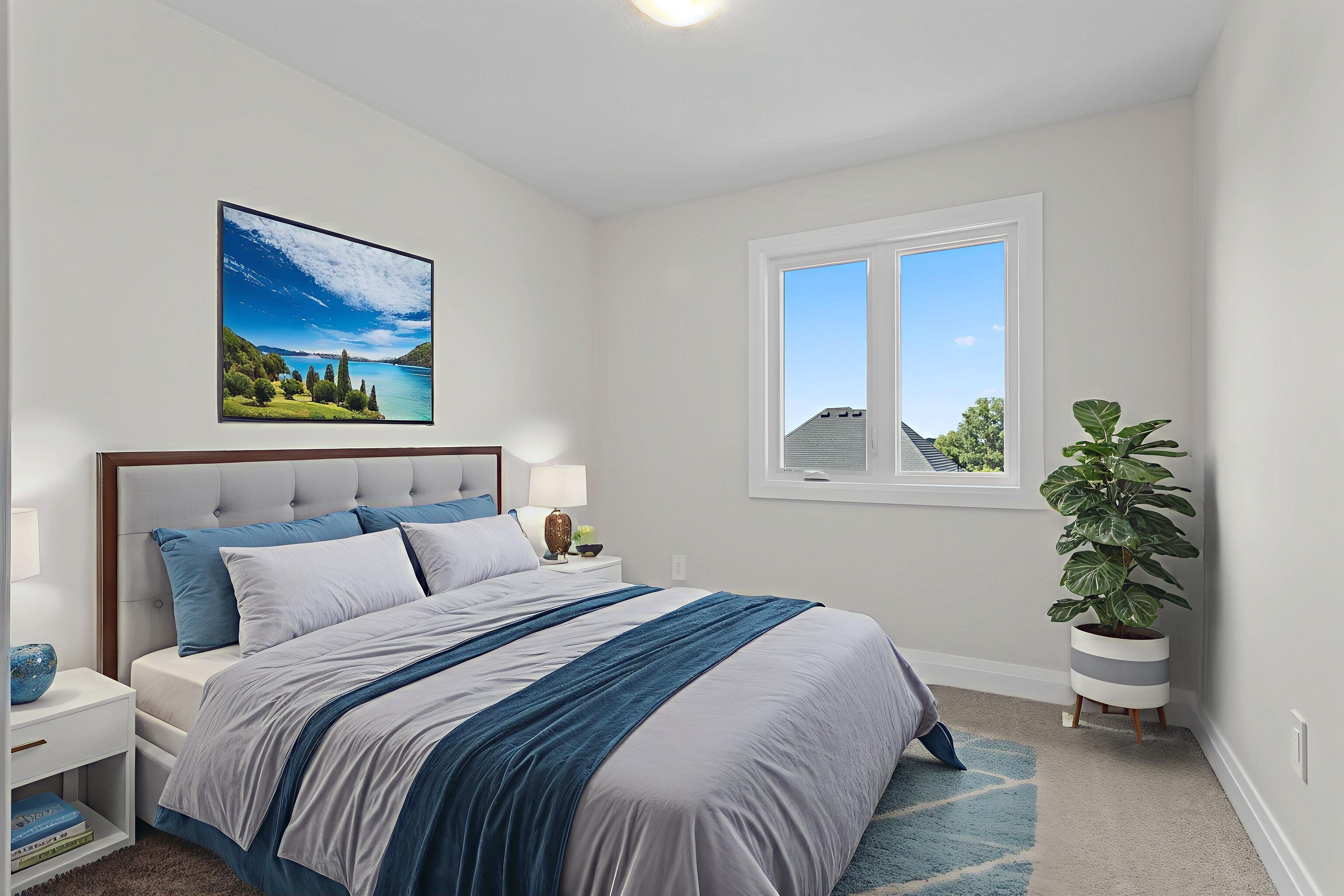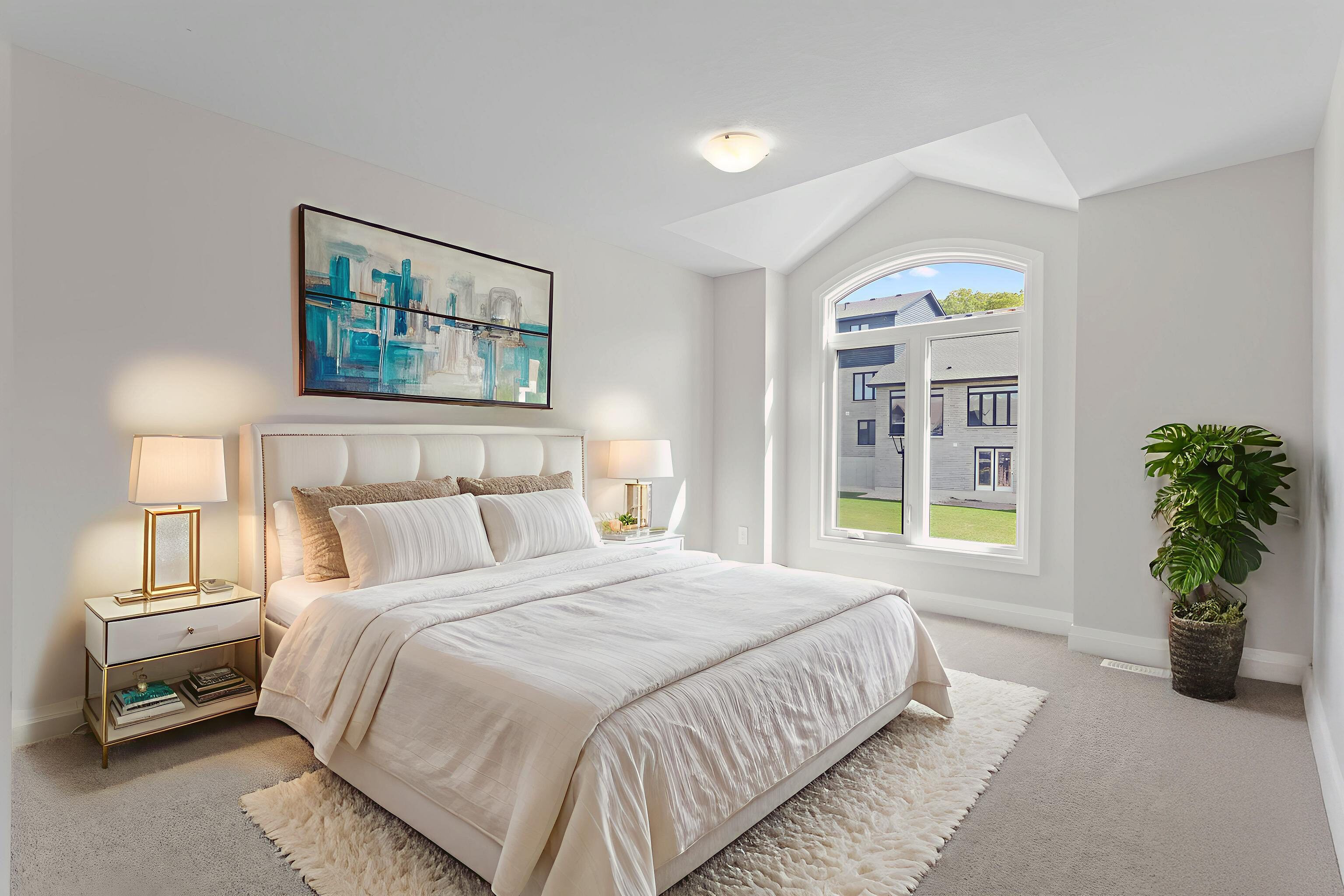 • Luxury finishes include quartz countertops and hardwood floors throughout.