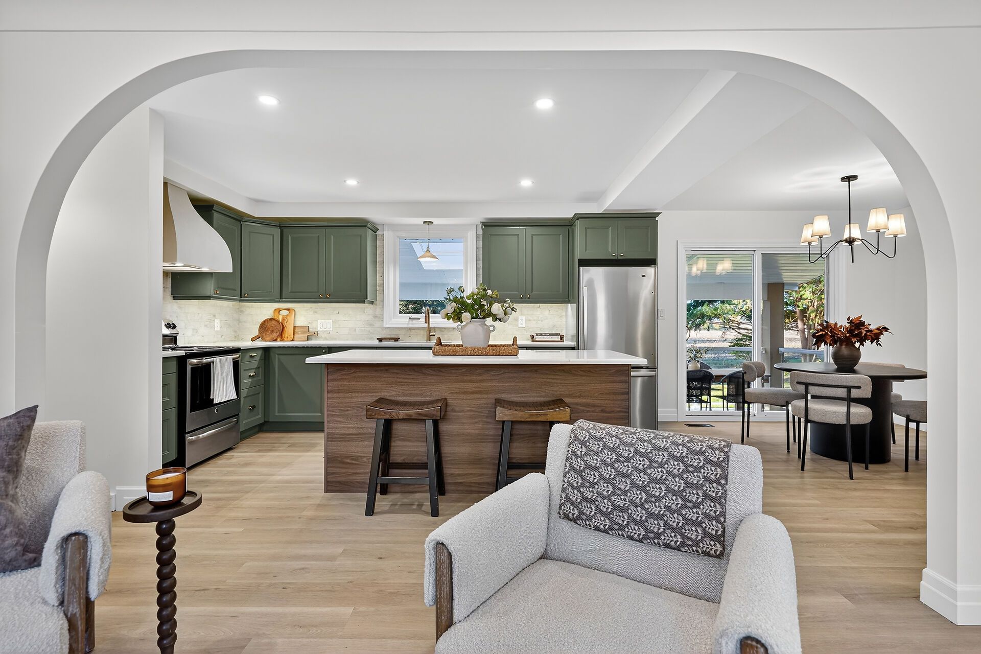 22639 troops rd... A newly renovated bungalow located on a quiet, desirable, paved road in mount brydges. Situated on a 0. 35 acre lot backing onto a field, the house includes 2+2 bedrooms and 3 bathrooms. The main floor houses the living room, dining room, kitchen, 4-piece bathroom, and 2 bedrooms, including the master suite which contains an ensuite and walk-in closet. Venturing downstairs, the house includes 2 more bedrooms, a 3-piece bathroom, laundry room, and a rec room. Proceeding outside, the backyard includes a large covered concrete patio, a shed, and continuous views of the neighbouring field. In addition to the interior renovation, a new septic system was installed in 2025. Located just 1 minute from the 402, this property combines efficiency, thoughtful updates, and a country feel.