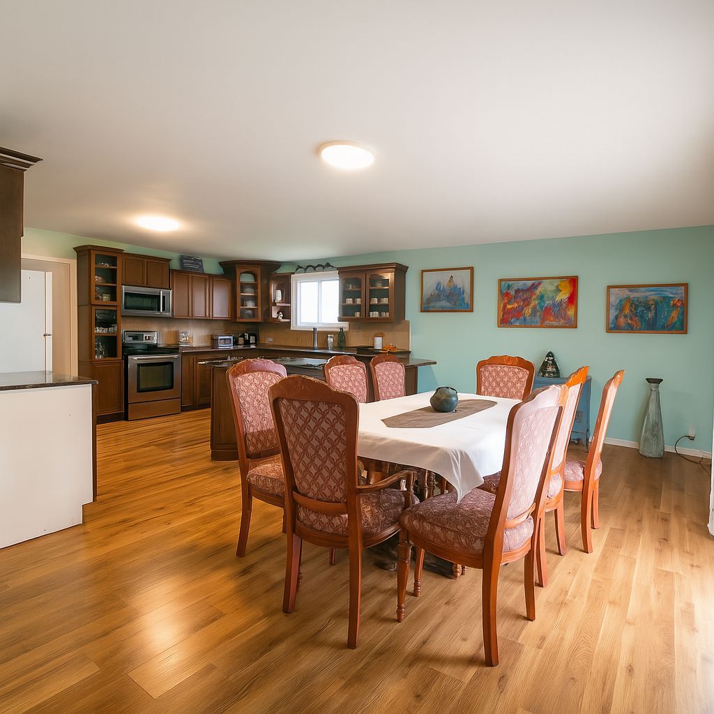 Discover this impressive and spacious bungalow situated on a very large corner lot, offering the perfect combination of privacy, outdoor space, and convenience. As you approach, the expansive property immediately stands out, providing plenty of room for outdoor activities, gardening, or future projects. The double car garage and generous driveway ensure ample parking for family and guests. Inside, the home features a thoughtful layout with six bedrooms in total, three located on the main floor and three additional bedrooms in the fully finished basement. The basement is accessible through its own separate entrance, making it ideal for extended family living, hosting guests, or exploring potential rental income opportunities. The main floor's open-concept design creates a welcoming atmosphere, perfect for both everyday living and entertaining. Large windows fill the living spaces with natural light, and the seamless flow between the living, dining, and kitchen areas makes the home feel even more spacious. Whether you're relaxing with family or hosting friends, this home adapts to your needs with ease. The backyard and outdoor spaces are equally inviting, offering plenty of room for children to play, pets to roam, or for you to simply enjoy peaceful evenings outdoors. Located away from the hustle and bustle of town, this property provides a serene and private setting while still being just a short drive to all essential amenities, including shopping, schools, and parks. It's the best of both worlds, offering peaceful country-style living without sacrificing convenience. This bungalow is perfect for families seeking space to grow, multi-generational households, or anyone looking for a flexible layout with income potential. With its prime location, abundant space, and versatile design, this home is ready to welcome its next owners.