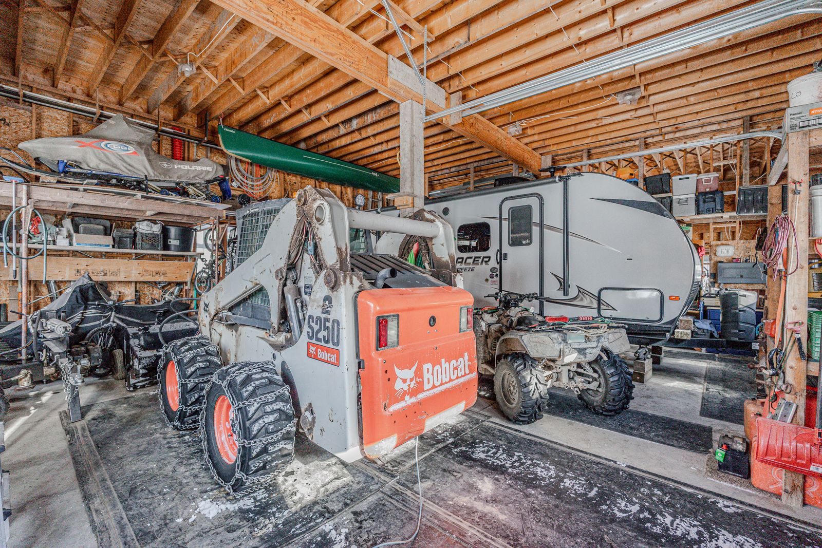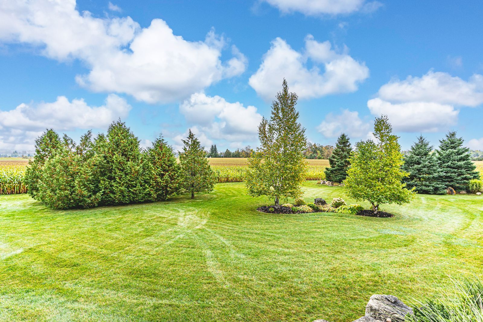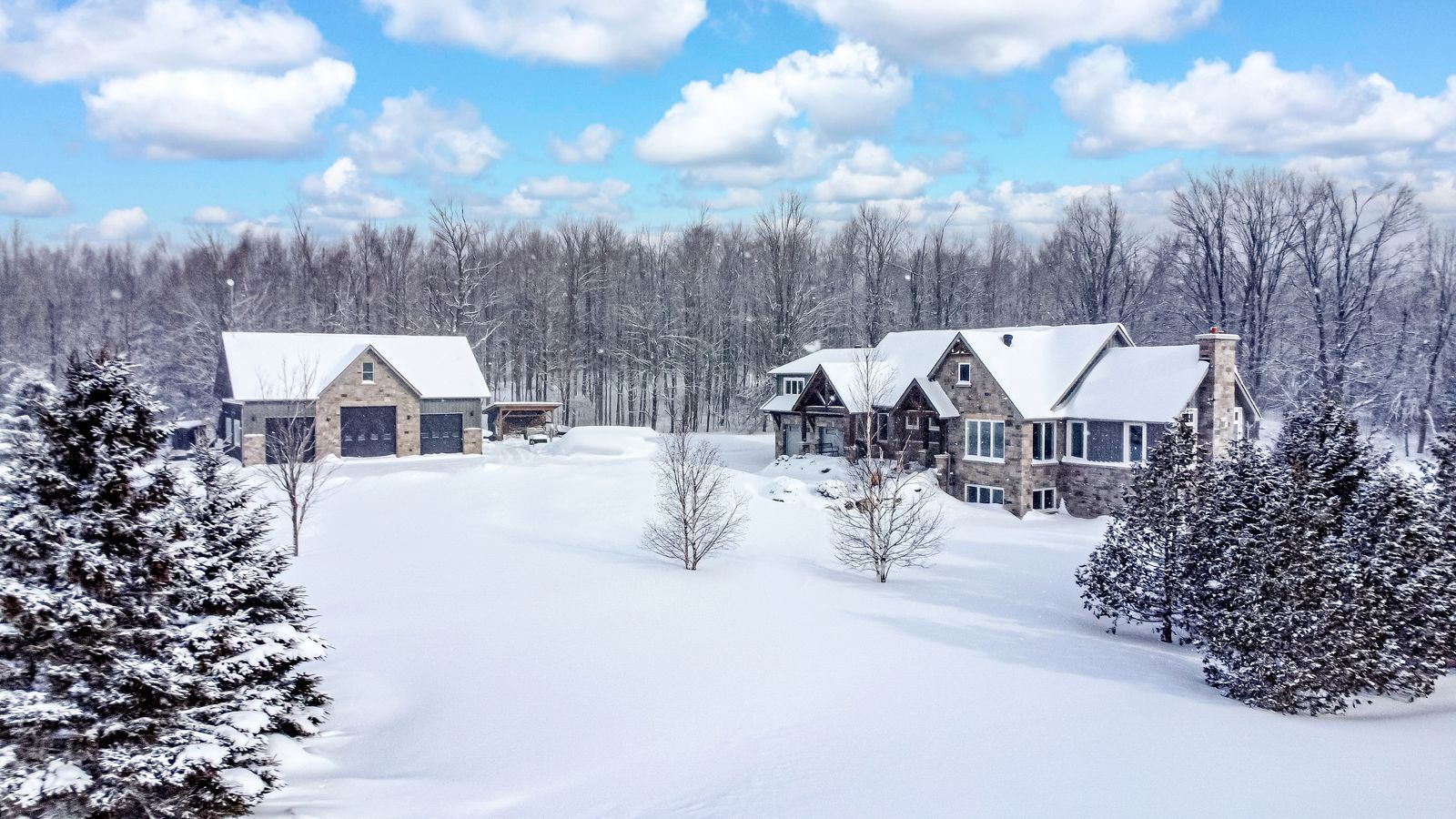 Sophisticated country living in a custom home in sought-after location on sprawling acreage with a separate detached shop, & a 2-bedroom independent second living area for multigenerational living! At the end of a long private driveway, you'll find a 2. 47-acre estate offering over 4,300 fin sq ft, an attached 2 car garage, a 3 car shop, and a separate self-contained living area. The secondary living space offers a kitchen, living room with a fireplace, 2 bedrooms, bathroom, laundry, and heated floors, making it ideal for multigenerational living. This custom bungalow showcases a stone and board-and-batten exterior with timber beams, and a covered porch, while the 30 x 50 ft shop provides 100 amp service, 3 oversized bay doors, including a 12 x 12 ft door, and a 855 sq ft unfinished loft above. Inside the main residence, solid ash hardwood floors lead through an open concept layout featuring a magazine-worthy kitchen with an aga 6-burner range and statement hood, open shelves, contrasting cabinets, an island, and a walk-in pantry. A dining room and bright breakfast area overlook the property, with the breakfast nook offering a walkout to the stone patio. The great room stands out with 16 ft vaulted ceilings and a floor-to-ceiling stone fireplace, plus an approx 750 sq ft unfinished loft above with potential for extra bedrooms or a family room. The primary suite features a barn door leading to 2 walk-in closets and an ensuite with a freestanding tub, dual vanity, shower with built-in niches, and a separate water closet. The finished lower level feels open and bright, with radiant in-floor heating, vinyl plank flooring, a large recreation room with a wood stove and wet bar, and 2 bedrooms connected by a shared ensuite. Located near devil's glen country club and bruce trail access, with collingwood and wasaga beach approximately 25 mins away, and blue mountain under 30 mins, this #hometostay captures everything people imagine when they envision elevated country living.