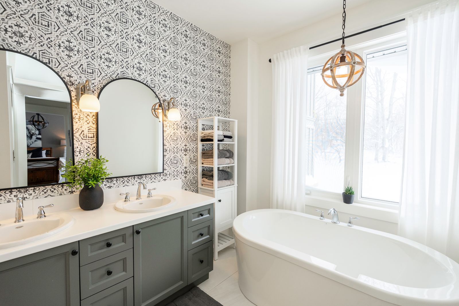 • Primary suite features walk-in closets and a luxurious ensuite bathroom.