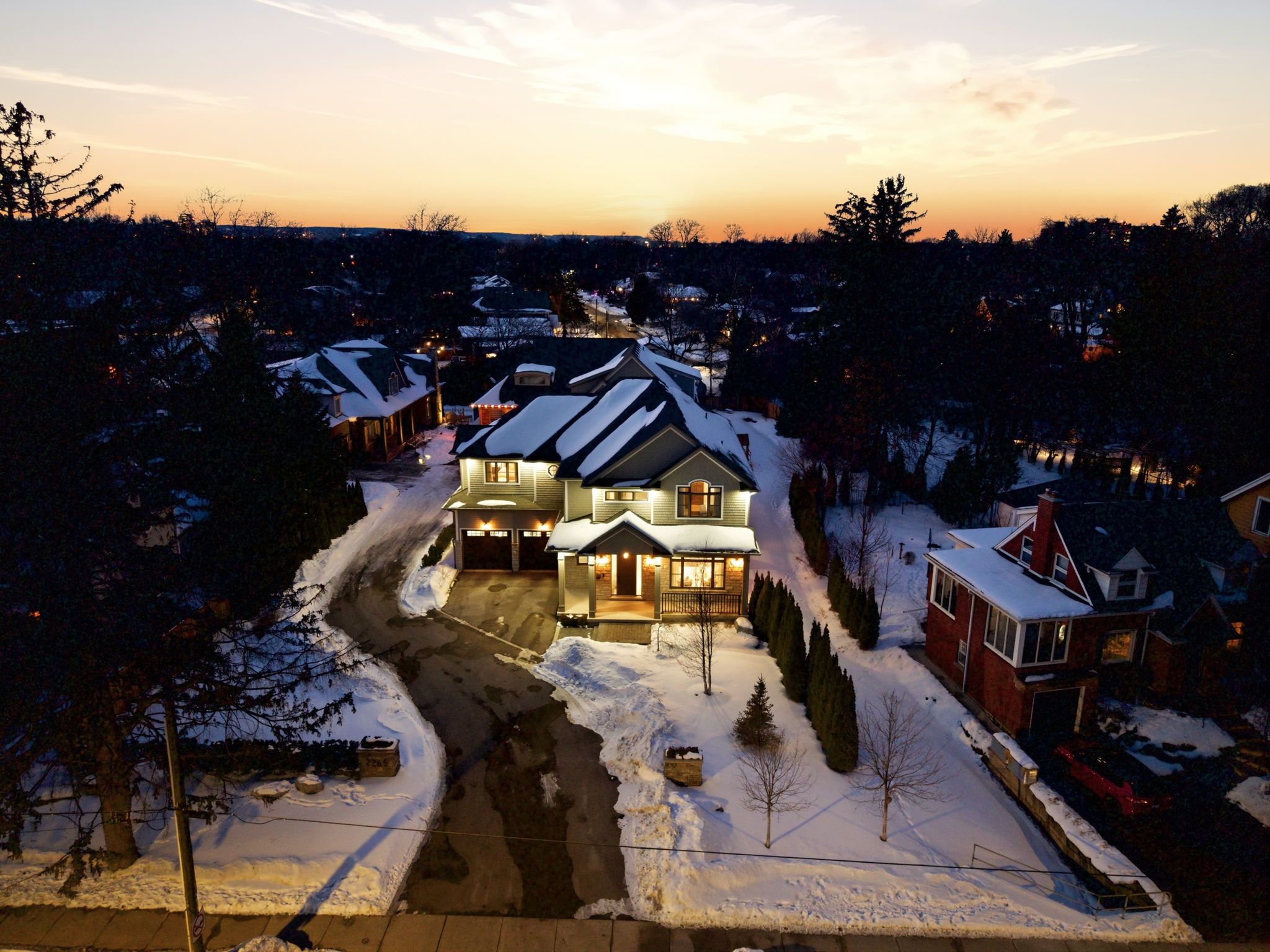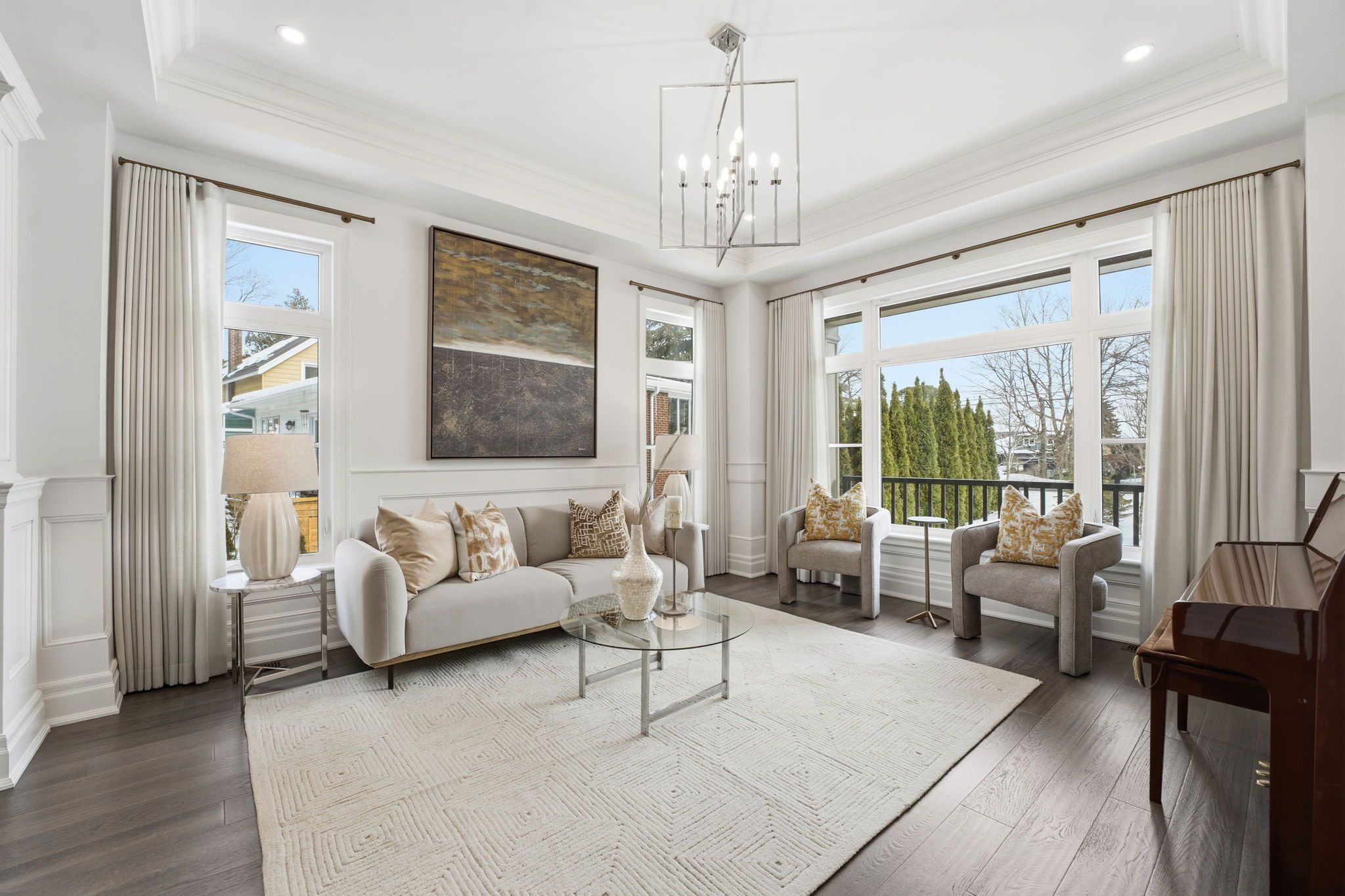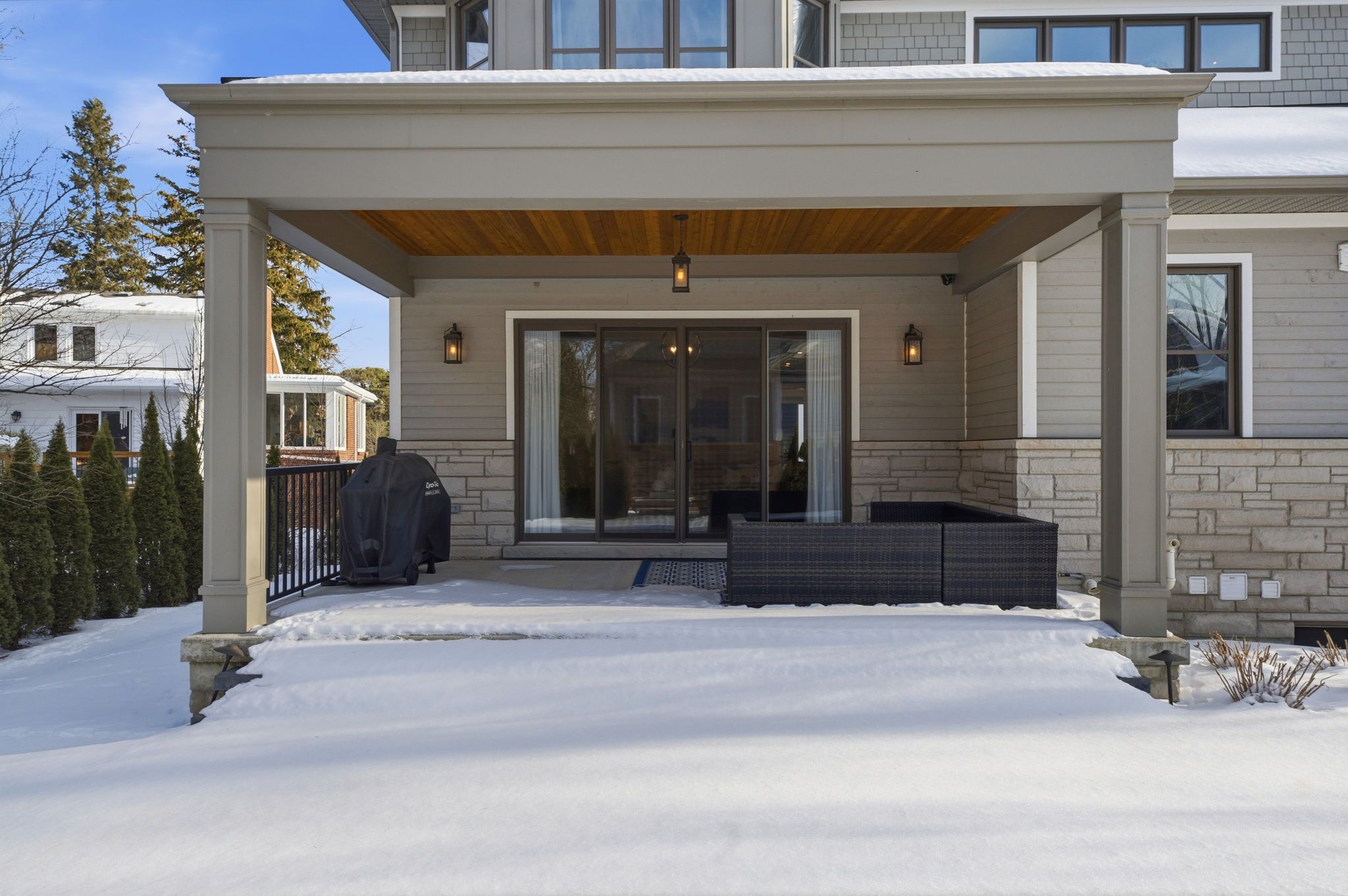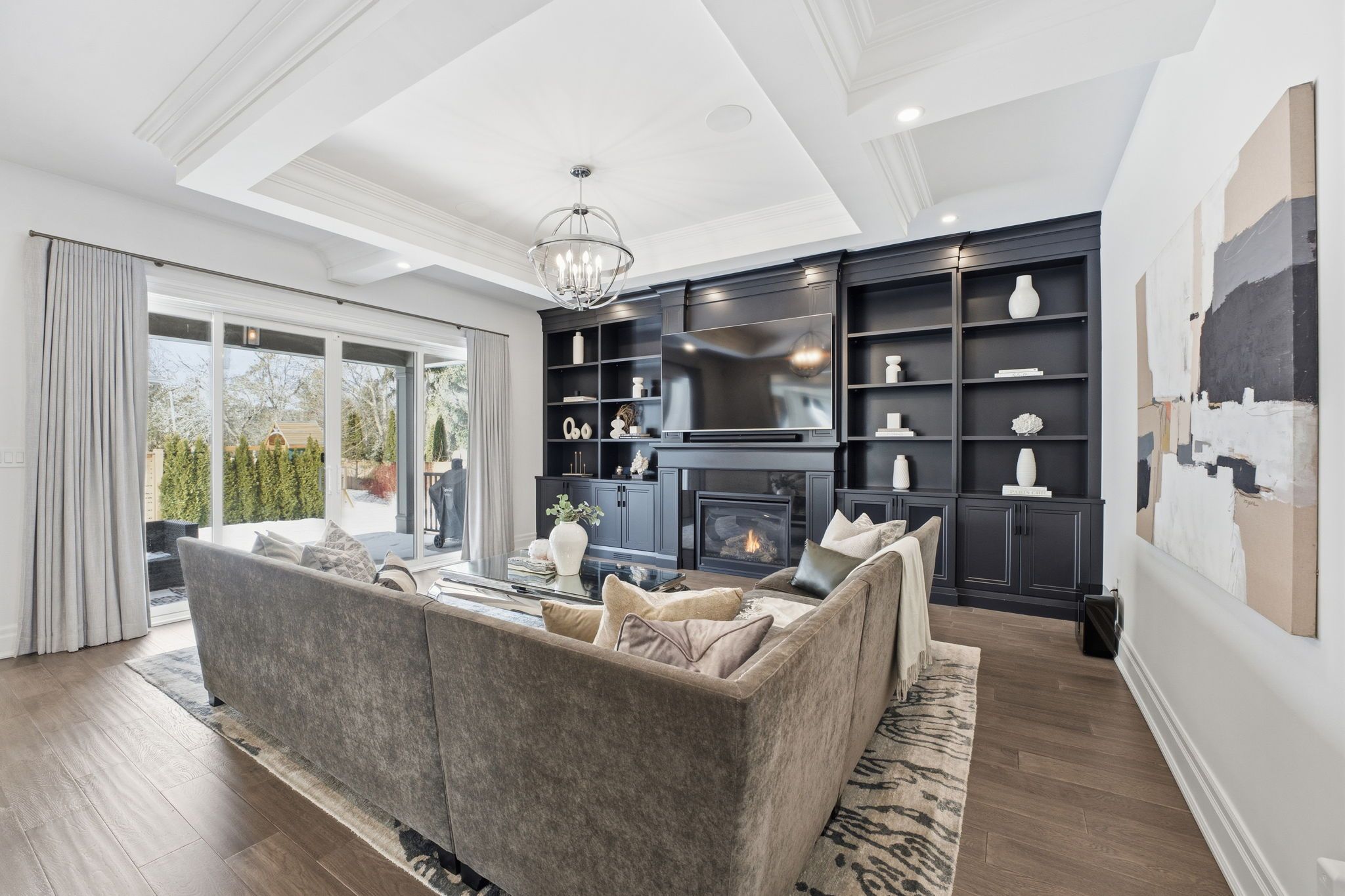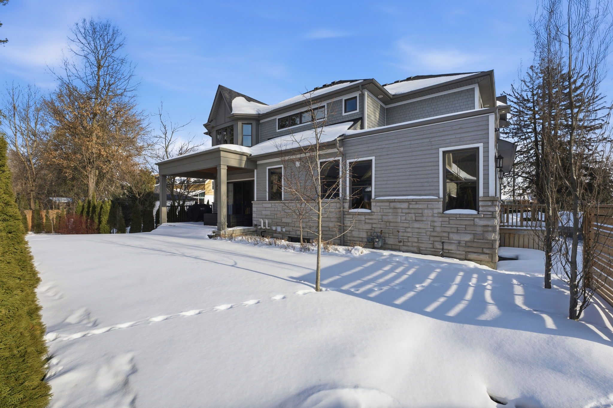 Discover an exceptional custom residence nestled in an exclusive lakeside enclave just moments from the shores of lake ontario and minutes to downtown burlington's vibrant boutiques, cafés, and restaurants. Offering 5 bedrooms and an impressive 8 bathrooms (5 ensuite baths), this extensively upgraded home blends timeless elegance with modern comfort across all levels. The main floor unfolds with soaring 10-foot ceilings, rich hardwood flooring, intricate wainscoting, coffered ceiling details, and a striking oak staircase with wrought-iron balustrades-setting a sophisticated architectural tone. Thoughtfully designed principal rooms include formal living and dining spaces, alongside a welcoming family room anchored by a gas fireplace, custom built-ins, and walkout access to the rear grounds. A well-appointed mudroom with interior access to the double garage enhances everyday functionality. At the heart of the home, the bespoke chef's kitchen showcases a statement quartz island, premium stainless appliances, gas range, and an inviting breakfast area designed for both daily living and entertaining. Upstairs, the serene primary retreat offers a luxurious dressing room, spa-inspired ensuite, and convenient private laundry. The fully finished lower level is curated for lifestyle and leisure, featuring a spacious recreation lounge with fireplace, projector and integrated audio, a glass-enclosed fitness studio, guest bedroom, and a heated-floor bath-ideal for extended family or entertaining. Set on a professionally landscaped, low-maintenance lot, the exterior presents refined curb appeal with irrigation and security features, while the covered rear patio creates an elegant outdoor living space for relaxation and hosting. A rare offering where lakeside proximity, architectural quality, and turnkey luxury converge.