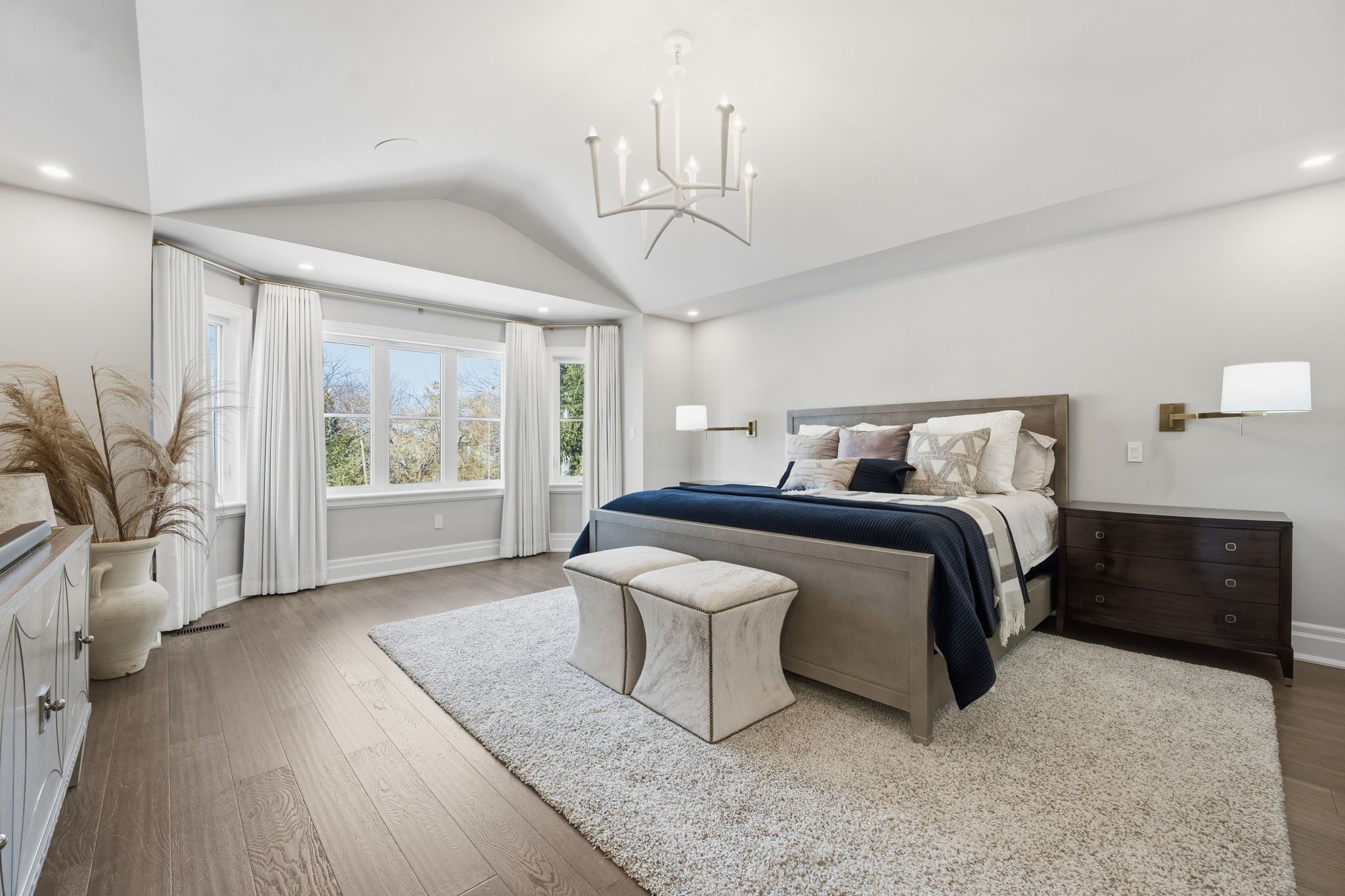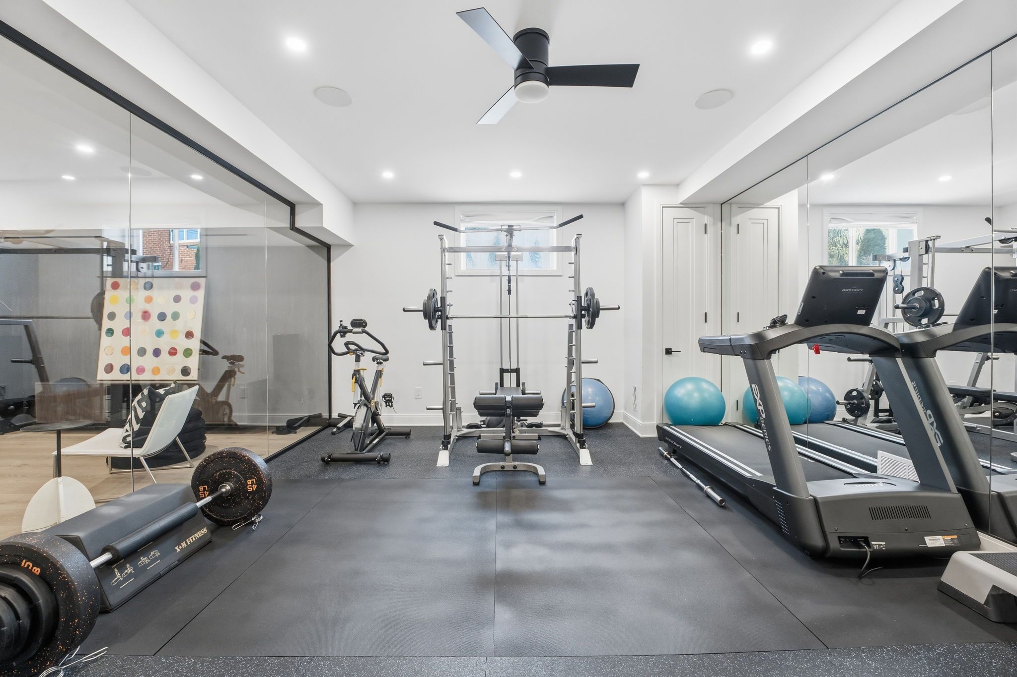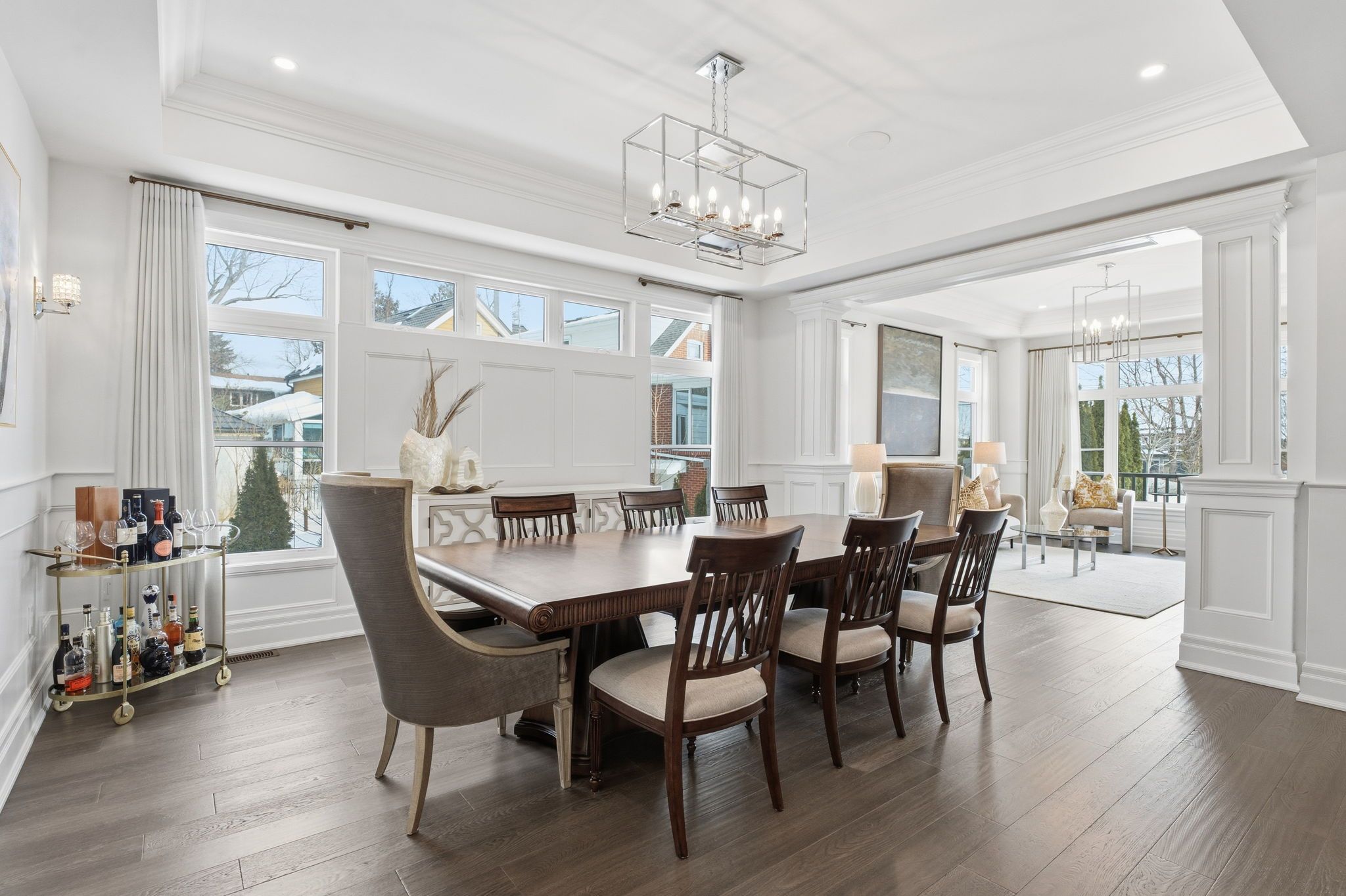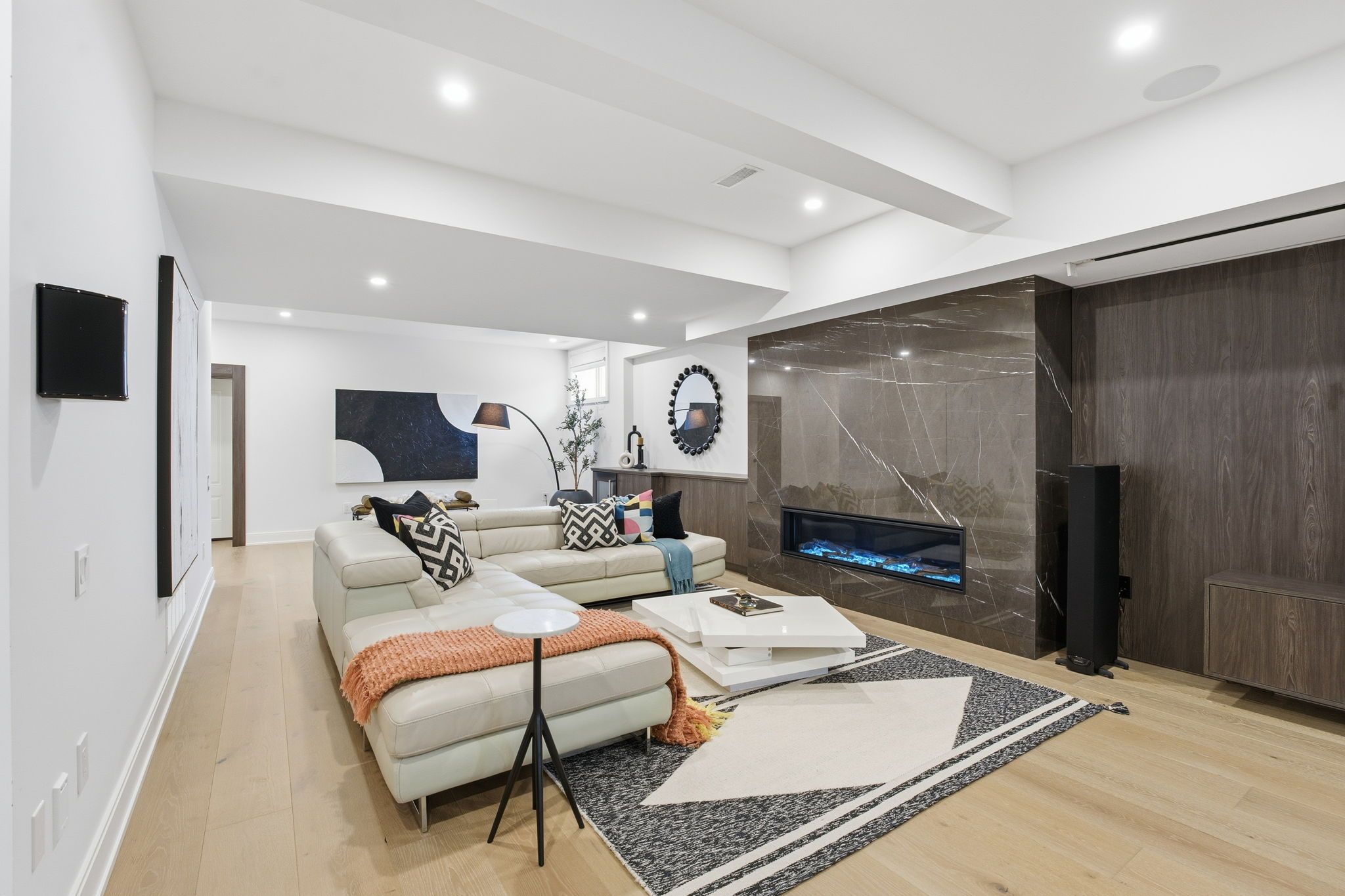 Discover an exceptional custom residence nestled in an exclusive lakeside enclave just moments from the shores of lake ontario and minutes to downtown burlington's vibrant boutiques, cafés, and restaurants. Offering 5 bedrooms and an impressive 8 bathrooms (5 ensuite baths), this extensively upgraded home blends timeless elegance with modern comfort across all levels. The main floor unfolds with soaring 10-foot ceilings, rich hardwood flooring, intricate wainscoting, coffered ceiling details, and a striking oak staircase with wrought-iron balustrades-setting a sophisticated architectural tone. Thoughtfully designed principal rooms include formal living and dining spaces, alongside a welcoming family room anchored by a gas fireplace, custom built-ins, and walkout access to the rear grounds. A well-appointed mudroom with interior access to the double garage enhances everyday functionality. At the heart of the home, the bespoke chef's kitchen showcases a statement quartz island, premium stainless appliances, gas range, and an inviting breakfast area designed for both daily living and entertaining. Upstairs, the serene primary retreat offers a luxurious dressing room, spa-inspired ensuite, and convenient private laundry. The fully finished lower level is curated for lifestyle and leisure, featuring a spacious recreation lounge with fireplace, projector and integrated audio, a glass-enclosed fitness studio, guest bedroom, and a heated-floor bath-ideal for extended family or entertaining. Set on a professionally landscaped, low-maintenance lot, the exterior presents refined curb appeal with irrigation and security features, while the covered rear patio creates an elegant outdoor living space for relaxation and hosting. A rare offering where lakeside proximity, architectural quality, and turnkey luxury converge.