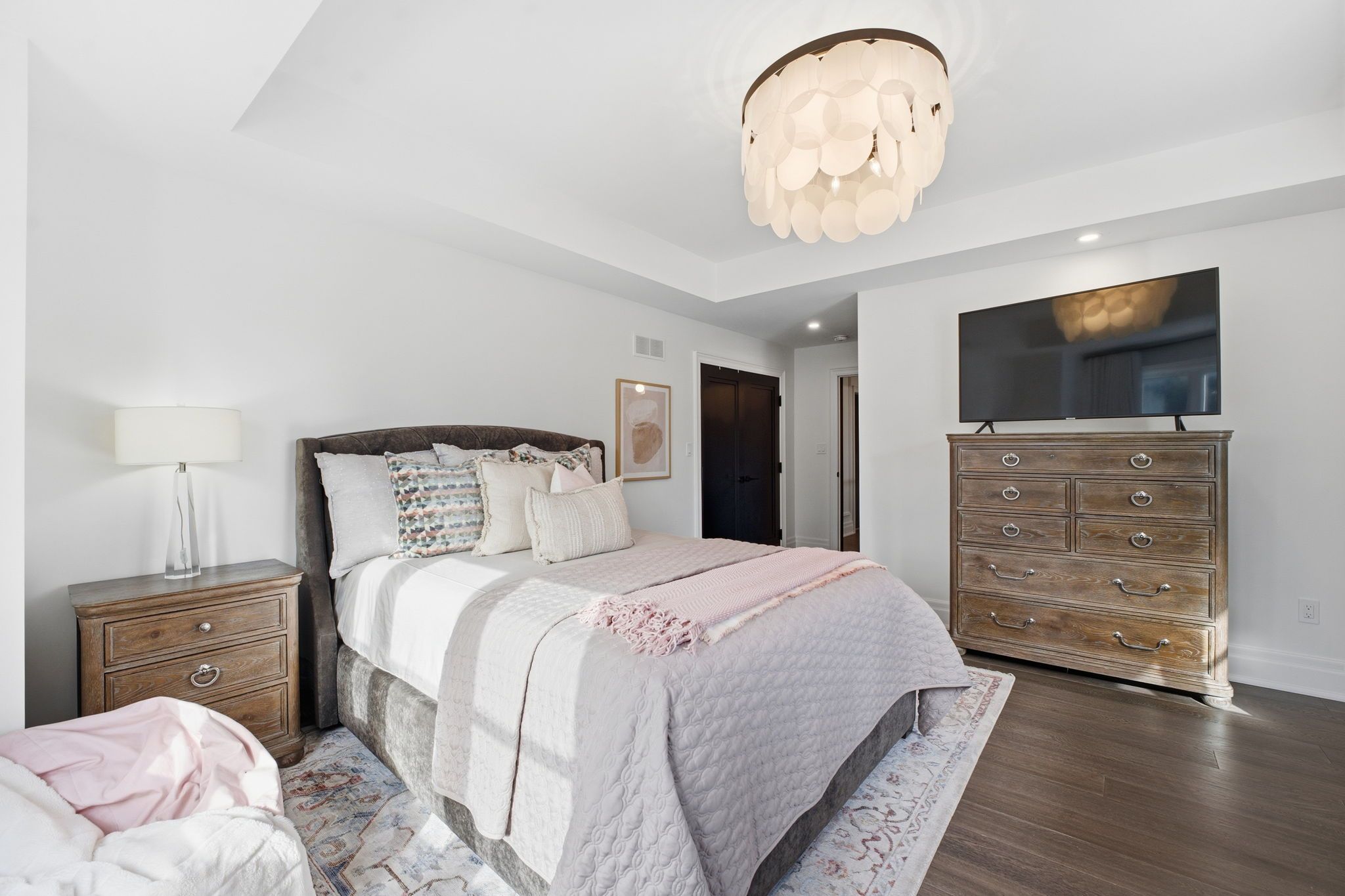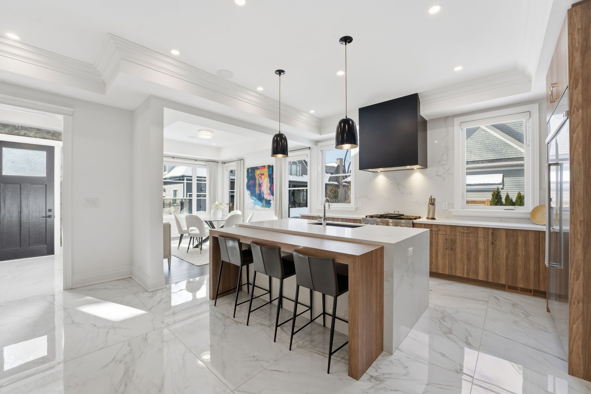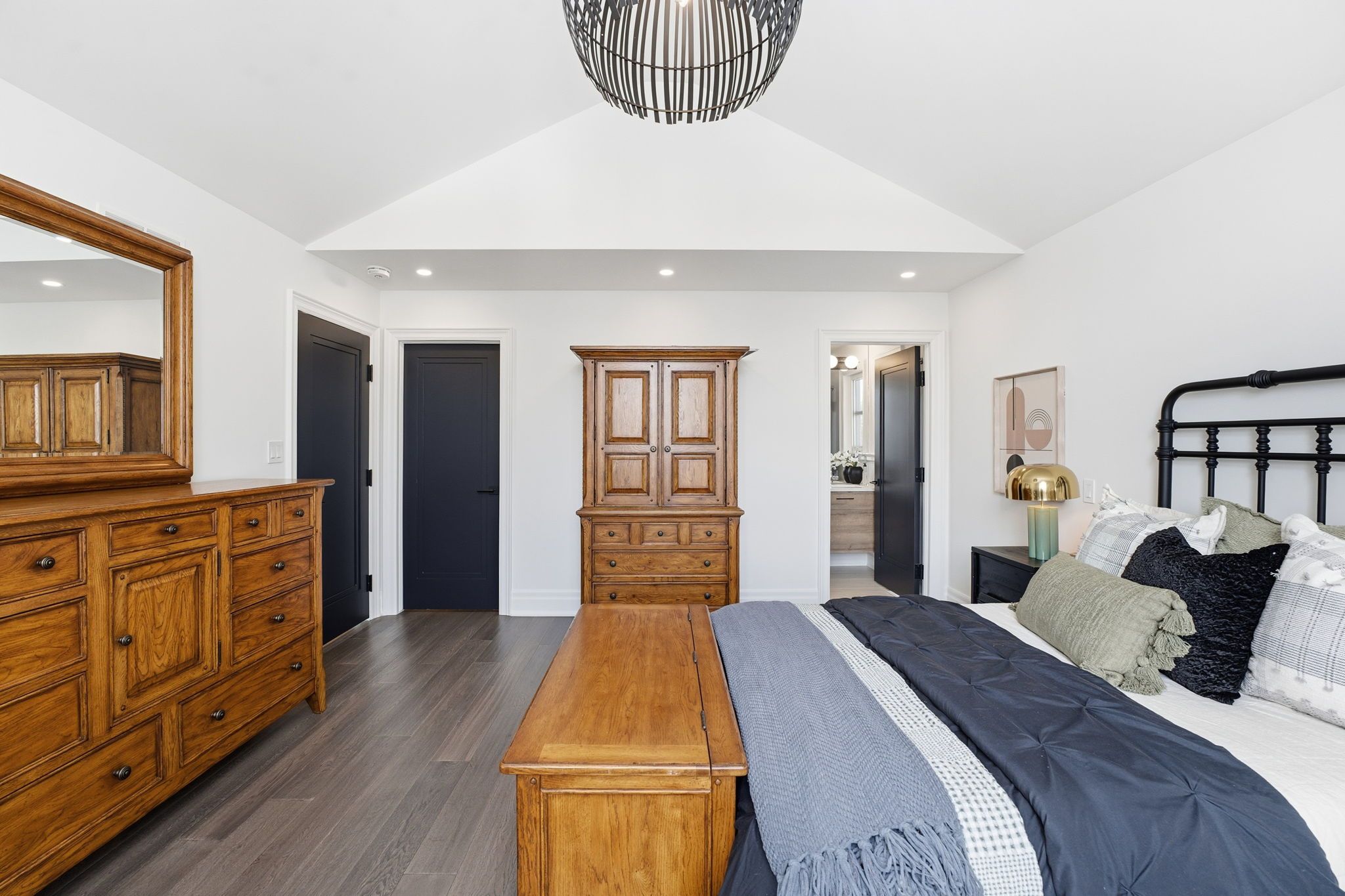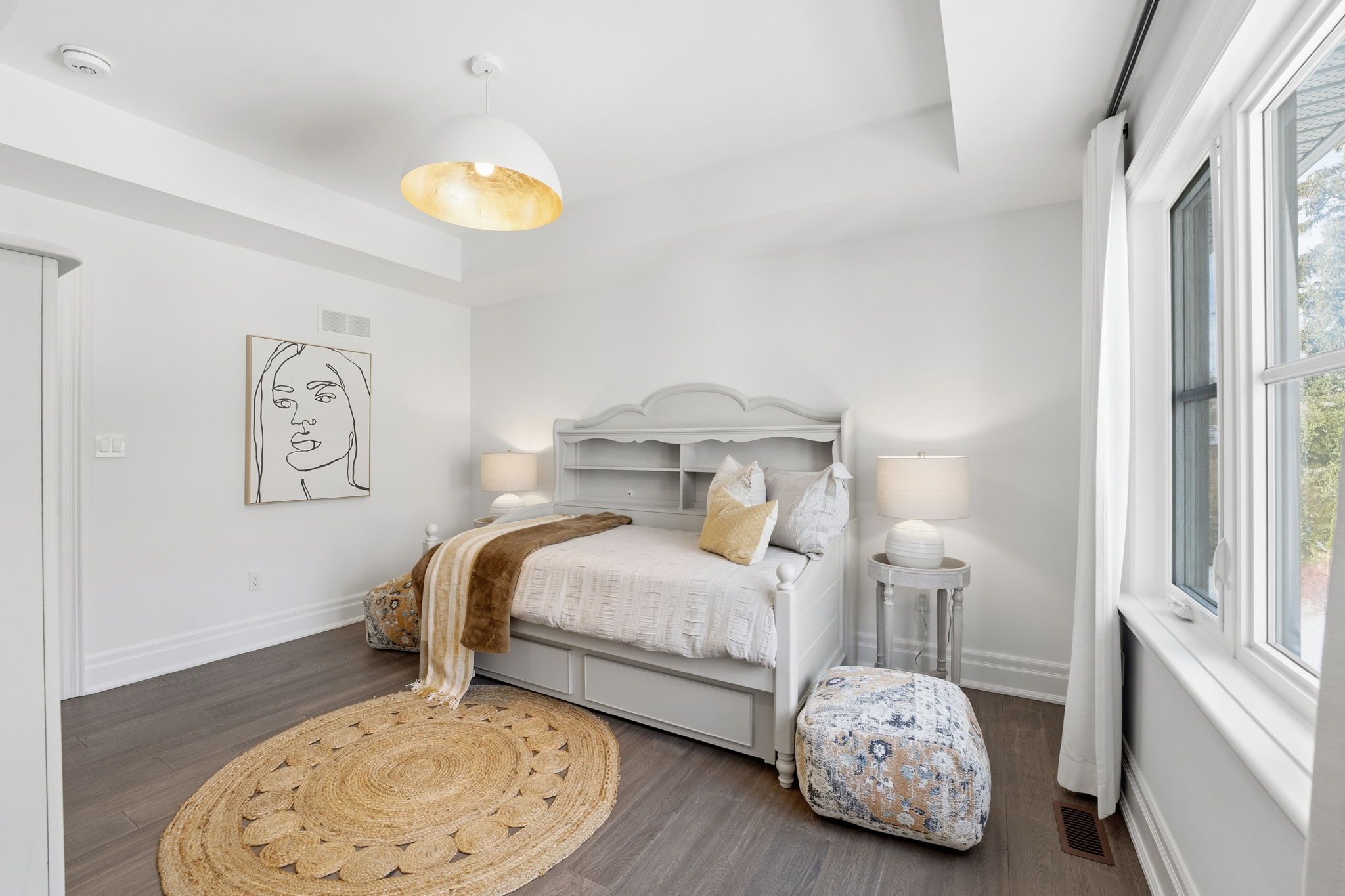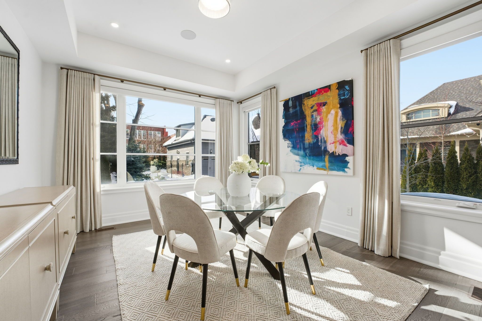 Discover an exceptional custom residence nestled in an exclusive lakeside enclave just moments from the shores of lake ontario and minutes to downtown burlington's vibrant boutiques, cafés, and restaurants. Offering 5 bedrooms and an impressive 8 bathrooms (5 ensuite baths), this extensively upgraded home blends timeless elegance with modern comfort across all levels. The main floor unfolds with soaring 10-foot ceilings, rich hardwood flooring, intricate wainscoting, coffered ceiling details, and a striking oak staircase with wrought-iron balustrades-setting a sophisticated architectural tone. Thoughtfully designed principal rooms include formal living and dining spaces, alongside a welcoming family room anchored by a gas fireplace, custom built-ins, and walkout access to the rear grounds. A well-appointed mudroom with interior access to the double garage enhances everyday functionality. At the heart of the home, the bespoke chef's kitchen showcases a statement quartz island, premium stainless appliances, gas range, and an inviting breakfast area designed for both daily living and entertaining. Upstairs, the serene primary retreat offers a luxurious dressing room, spa-inspired ensuite, and convenient private laundry. The fully finished lower level is curated for lifestyle and leisure, featuring a spacious recreation lounge with fireplace, projector and integrated audio, a glass-enclosed fitness studio, guest bedroom, and a heated-floor bath-ideal for extended family or entertaining. Set on a professionally landscaped, low-maintenance lot, the exterior presents refined curb appeal with irrigation and security features, while the covered rear patio creates an elegant outdoor living space for relaxation and hosting. A rare offering where lakeside proximity, architectural quality, and turnkey luxury converge.