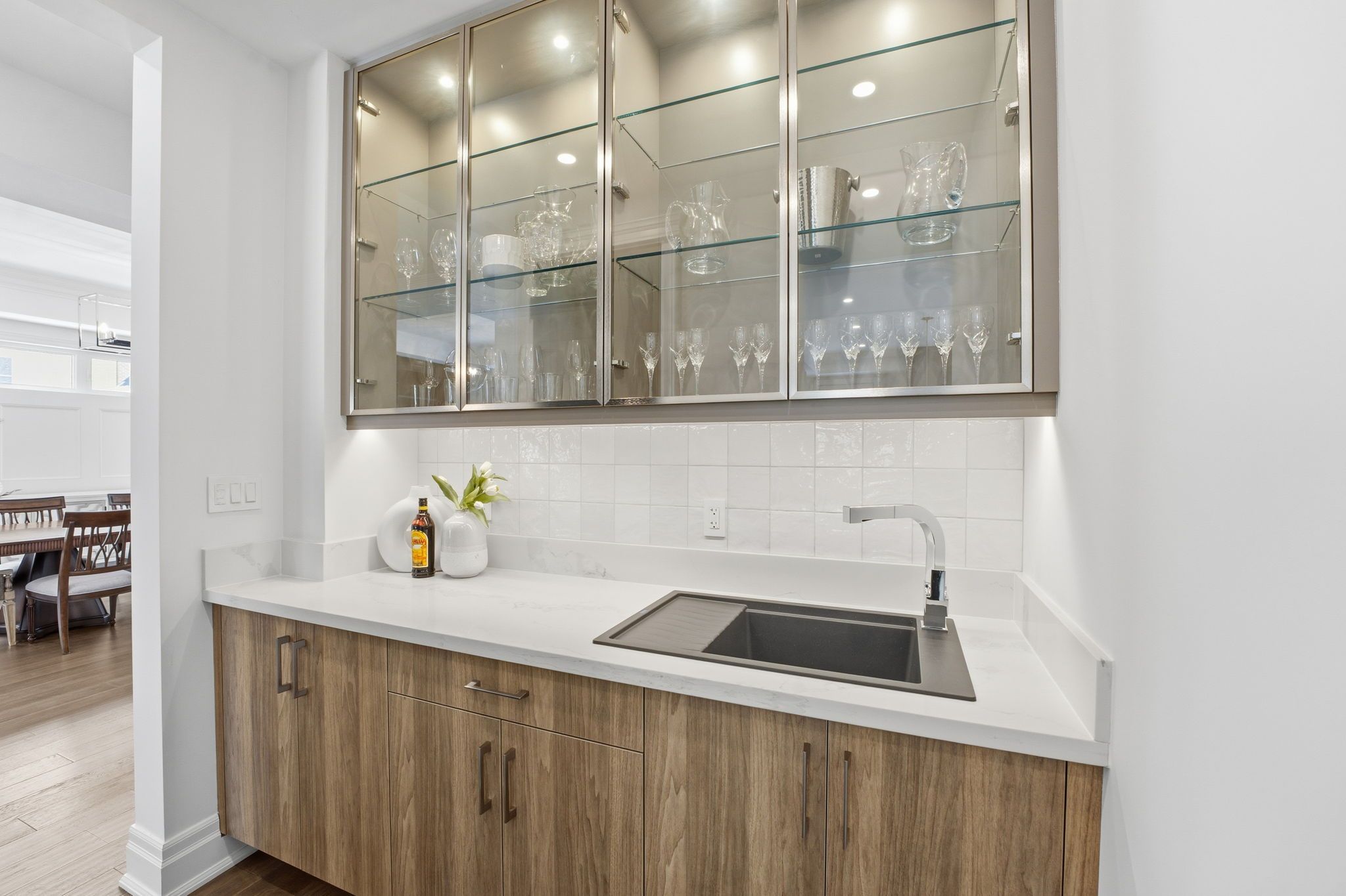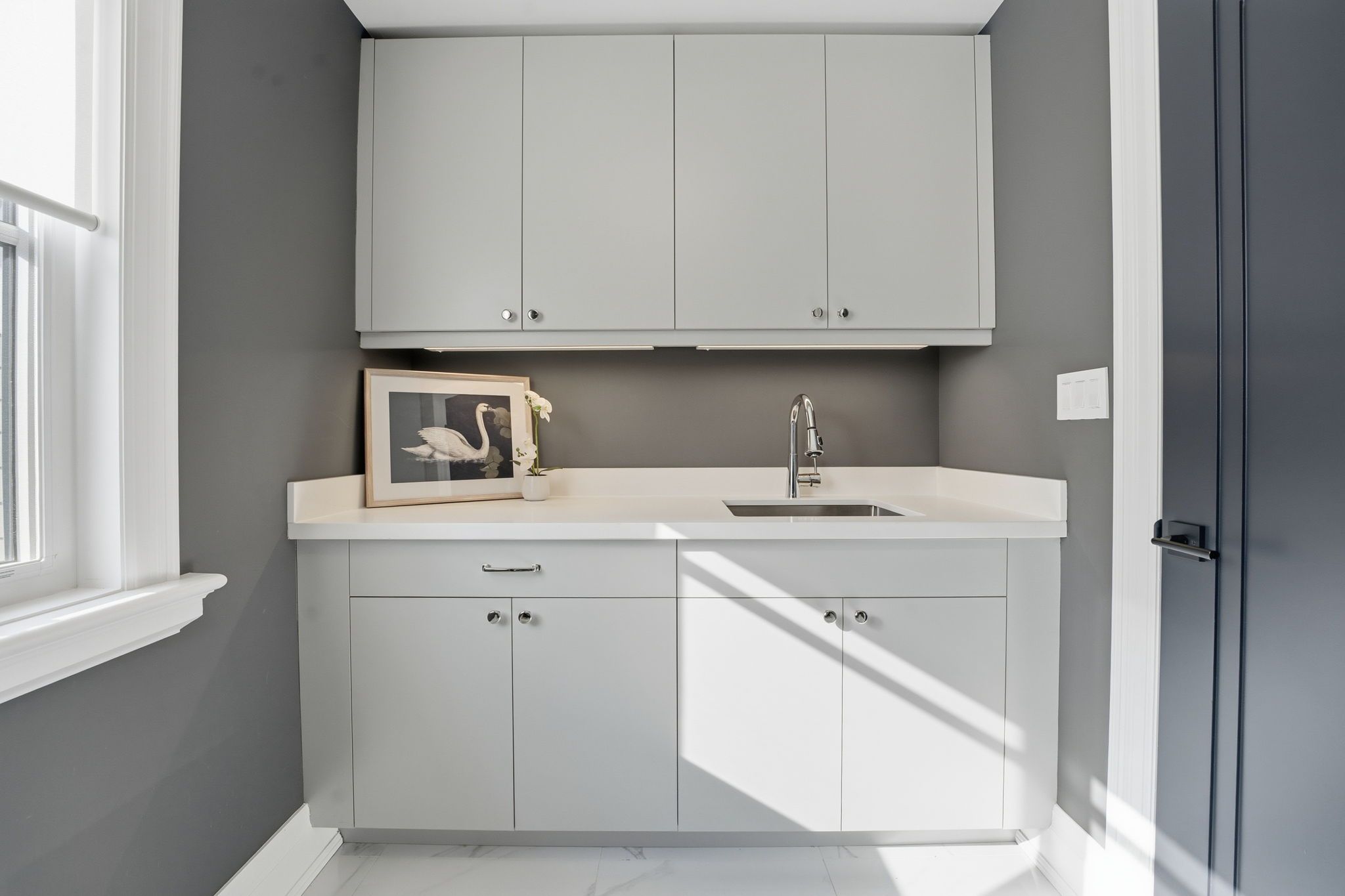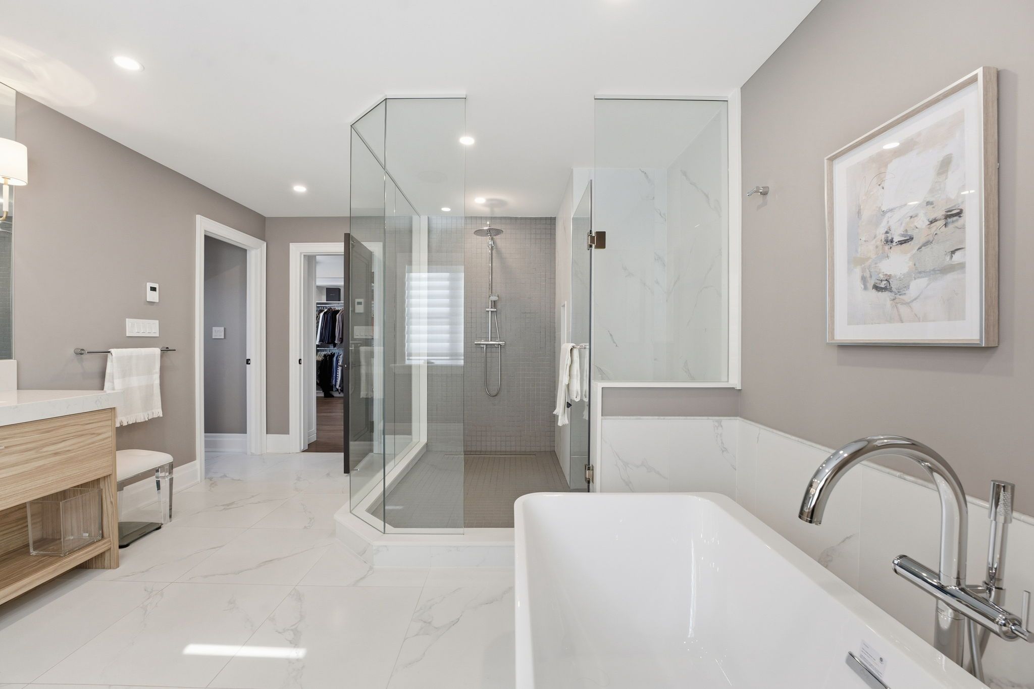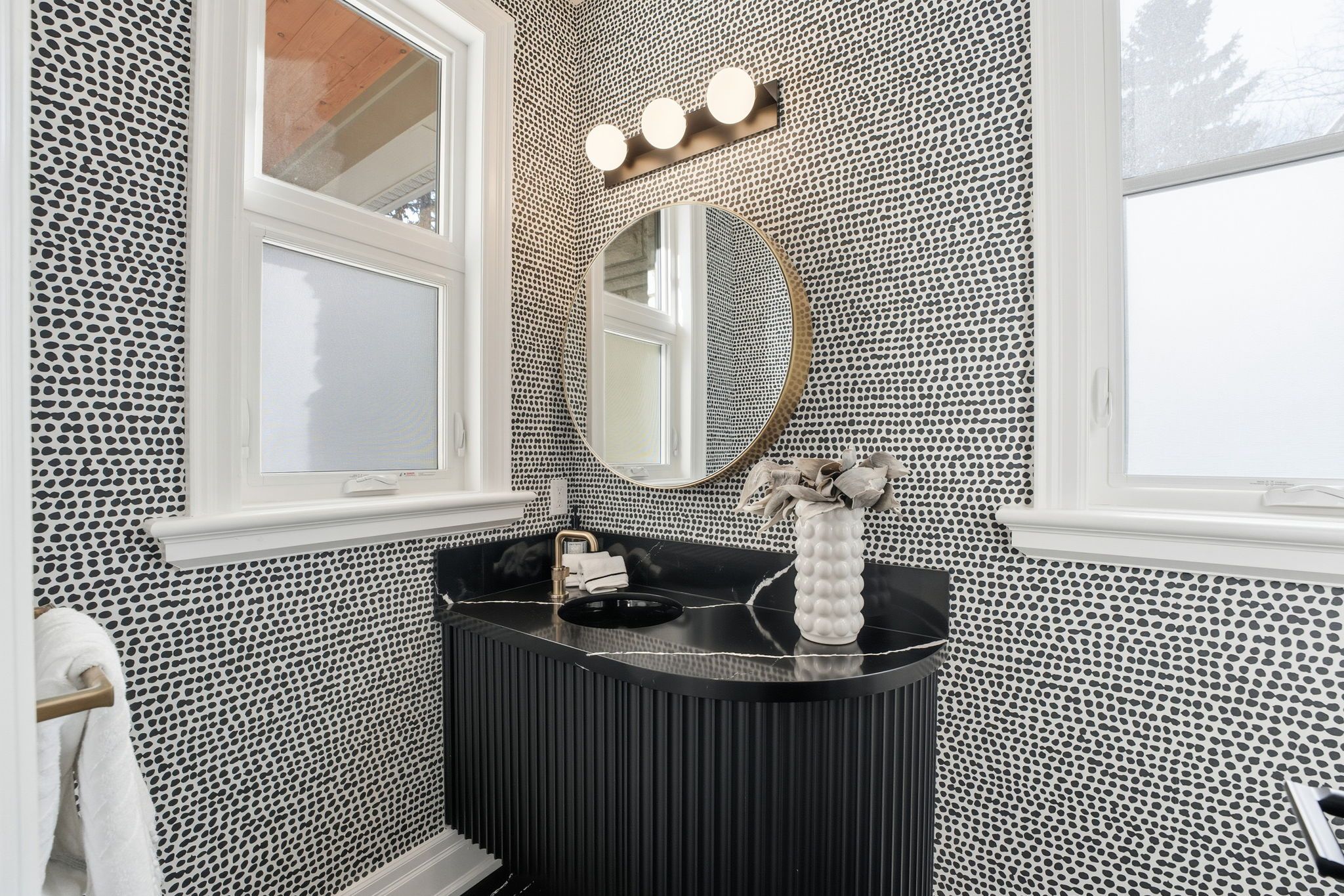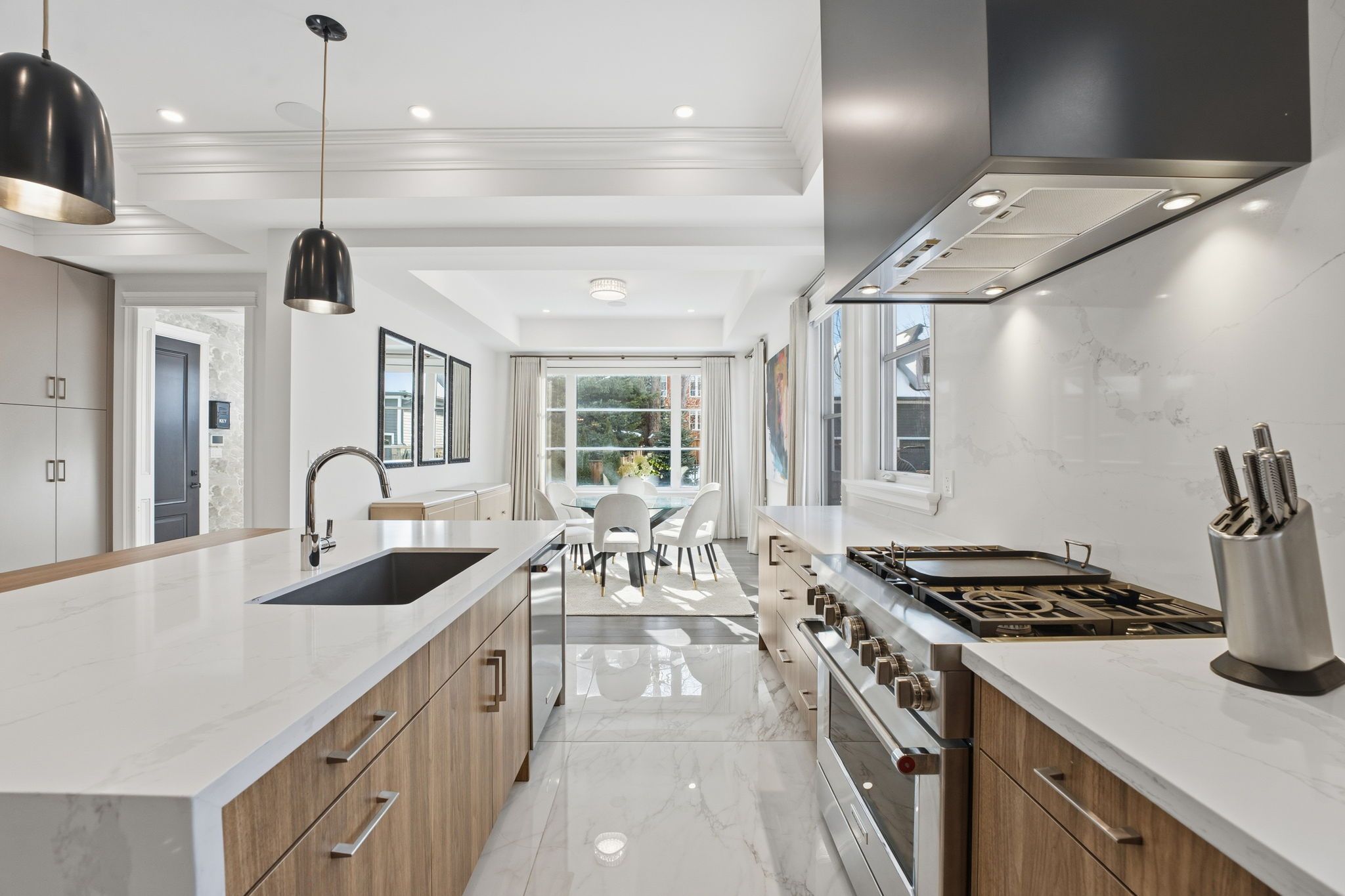 Discover an exceptional custom residence nestled in an exclusive lakeside enclave just moments from the shores of lake ontario and minutes to downtown burlington's vibrant boutiques, cafés, and restaurants. Offering 5 bedrooms and an impressive 8 bathrooms (5 ensuite baths), this extensively upgraded home blends timeless elegance with modern comfort across all levels. The main floor unfolds with soaring 10-foot ceilings, rich hardwood flooring, intricate wainscoting, coffered ceiling details, and a striking oak staircase with wrought-iron balustrades-setting a sophisticated architectural tone. Thoughtfully designed principal rooms include formal living and dining spaces, alongside a welcoming family room anchored by a gas fireplace, custom built-ins, and walkout access to the rear grounds. A well-appointed mudroom with interior access to the double garage enhances everyday functionality. At the heart of the home, the bespoke chef's kitchen showcases a statement quartz island, premium stainless appliances, gas range, and an inviting breakfast area designed for both daily living and entertaining. Upstairs, the serene primary retreat offers a luxurious dressing room, spa-inspired ensuite, and convenient private laundry. The fully finished lower level is curated for lifestyle and leisure, featuring a spacious recreation lounge with fireplace, projector and integrated audio, a glass-enclosed fitness studio, guest bedroom, and a heated-floor bath-ideal for extended family or entertaining. Set on a professionally landscaped, low-maintenance lot, the exterior presents refined curb appeal with irrigation and security features, while the covered rear patio creates an elegant outdoor living space for relaxation and hosting. A rare offering where lakeside proximity, architectural quality, and turnkey luxury converge.