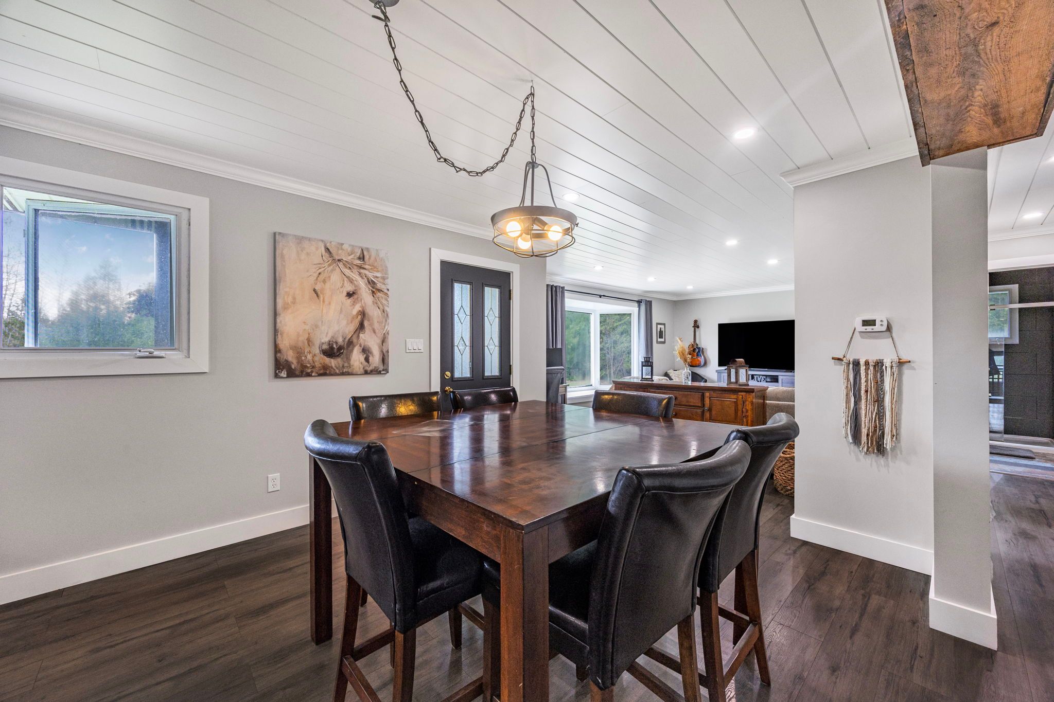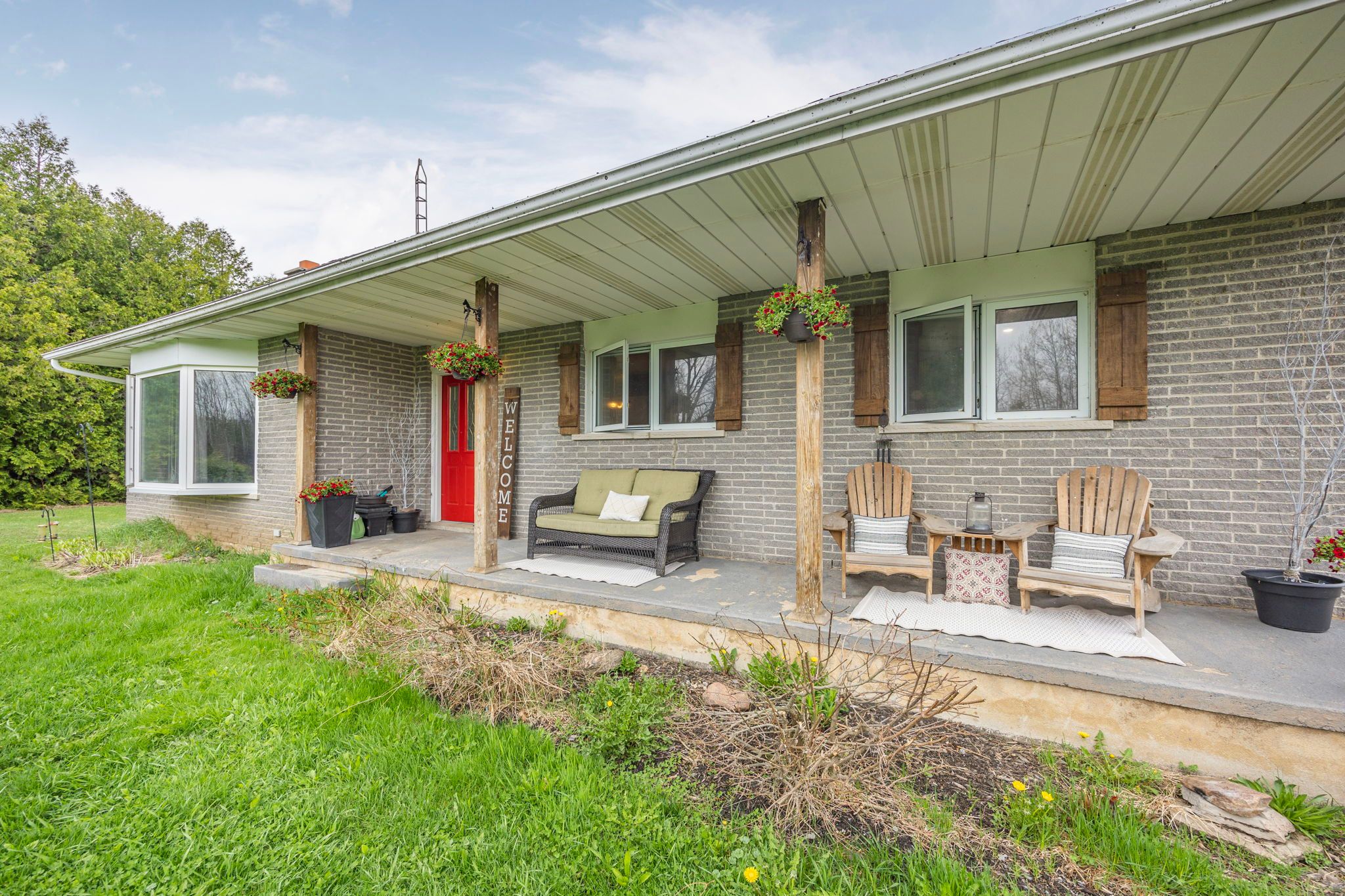 Set on 6 picturesque acres, this newly renovated brick bungalow blends timeless rural charm with thoughtful modern upgrades. Step inside to a warm, rustic-inspired interior that captures the essence of country living while offering everyday comfort and efficiency. The main level features two inviting bedrooms, a full bath, a well-appointed kitchen, and the convenience of main-floor laundry, all designed for easy, single-level living. A large exterior deck extends your living space outdoors-perfect for morning coffee or sunset views over open fields. The partially finished basement adds versatility with an additional bedroom and is fully spray-foam insulated, the basement exterior walls are mostly drywalled, this home with hobby farm and shop is equipped with a 200 amp electrical service, complemented by major improvements include a newer furnace for year-round efficiency with a newer drilled water well.. New asphalt roof (2025), giving peace of mind for years to come. For those needing space to work or pursue hobbies, the 24' x 36' detached garage/shop offers newer insulation, a plywood-finished interior, and new exterior siding-ideal for projects, storage, or equipment. Equestrian and hobby farm enthusiasts will appreciate the 48' x 32' barn, complete with four horse stalls, generous hay storage, and six separated exterior paddocks with electric fencing, plus open fields designed for rotational grazing. This is a rare opportunity to enjoy a move-in-ready country home with the infrastructure to support horses, hobbies, or a self-sustaining rural lifestyle-where comfort, function, and wide-open space come together seamlessly.