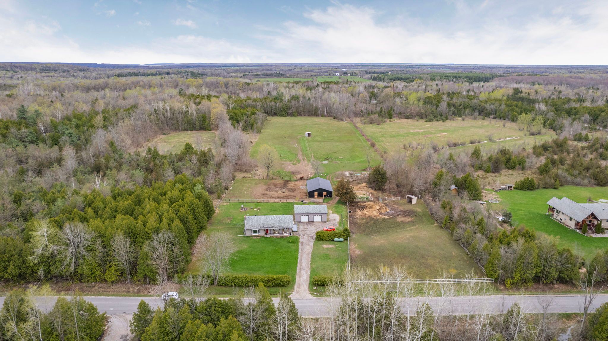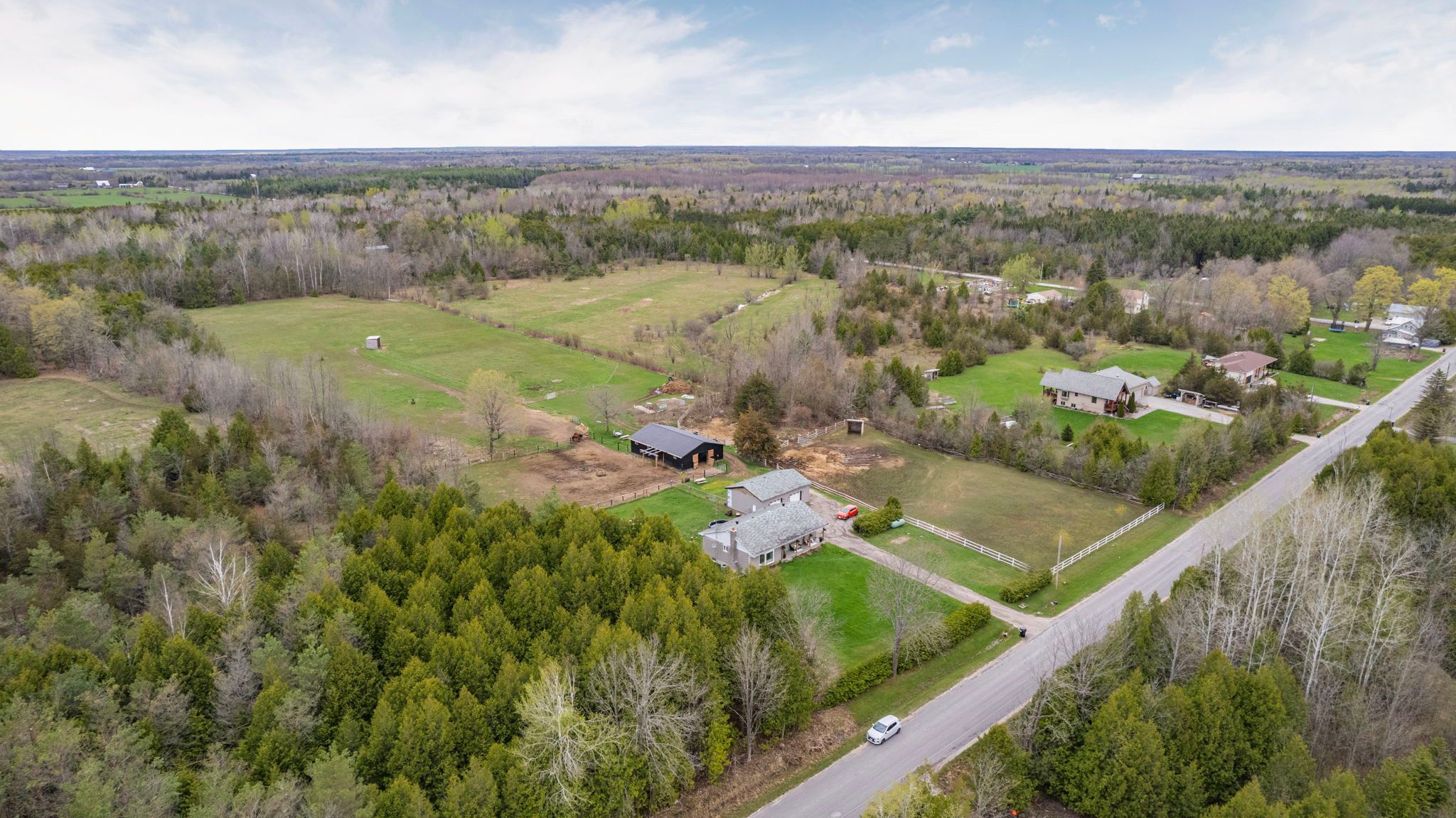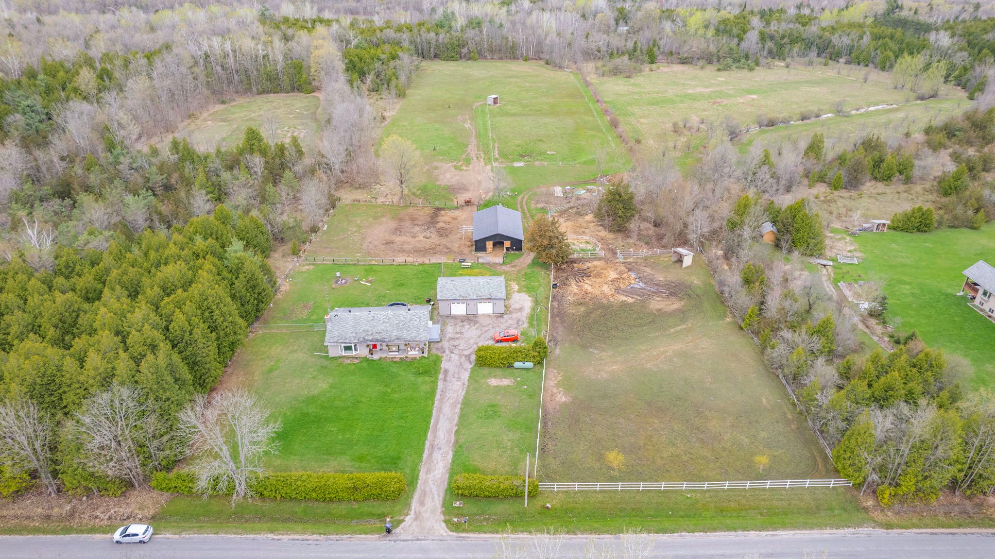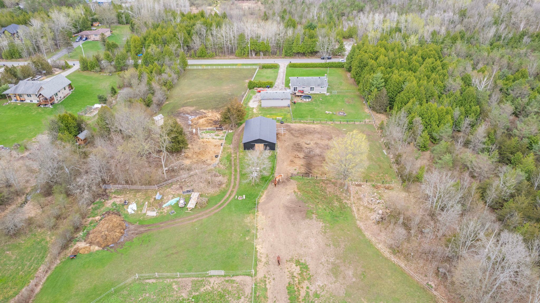 • Equestrian-friendly barn with stalls, paddocks, and ample space for rotation.
