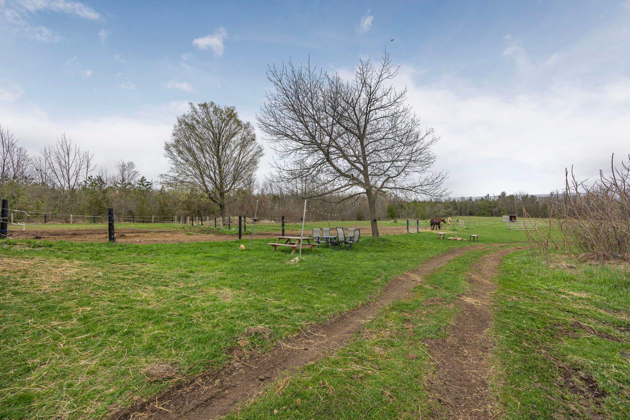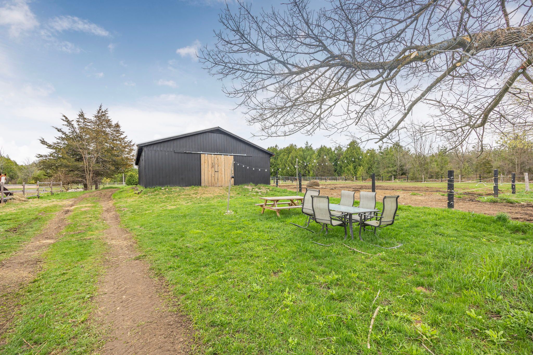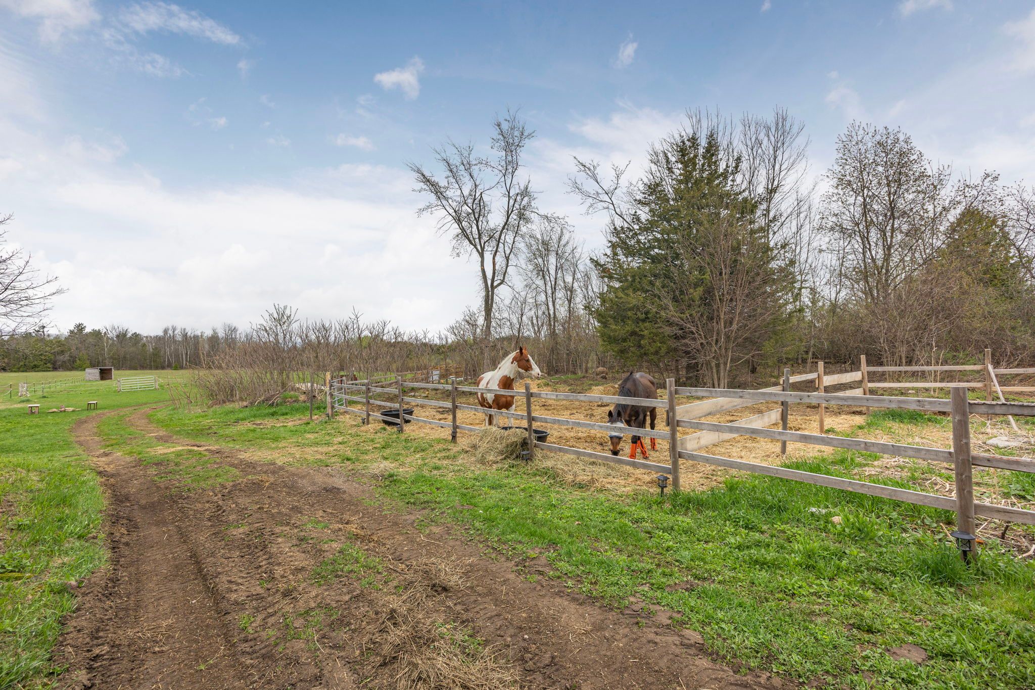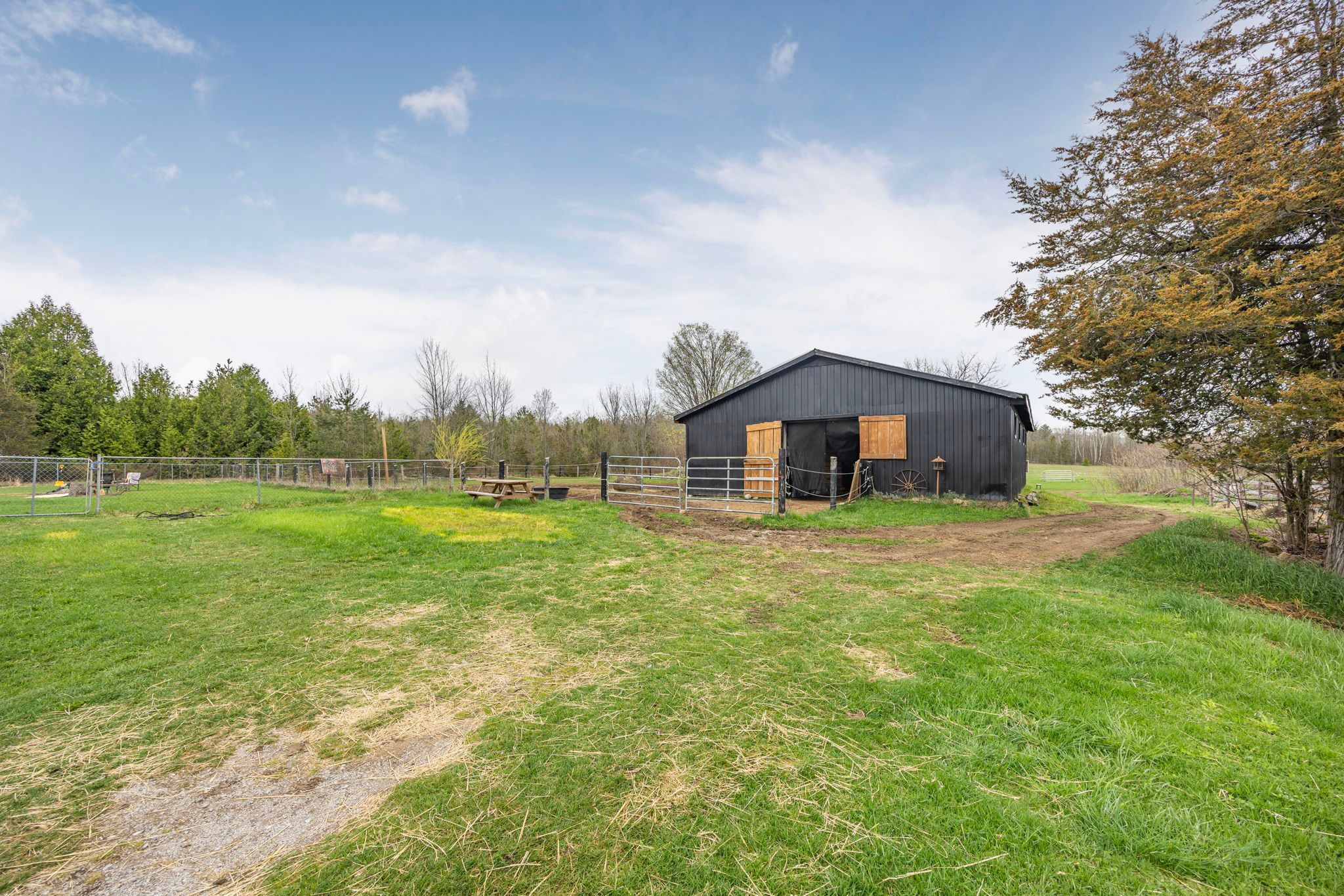 • Equestrian-friendly barn with stalls, paddocks, and ample space for rotation.