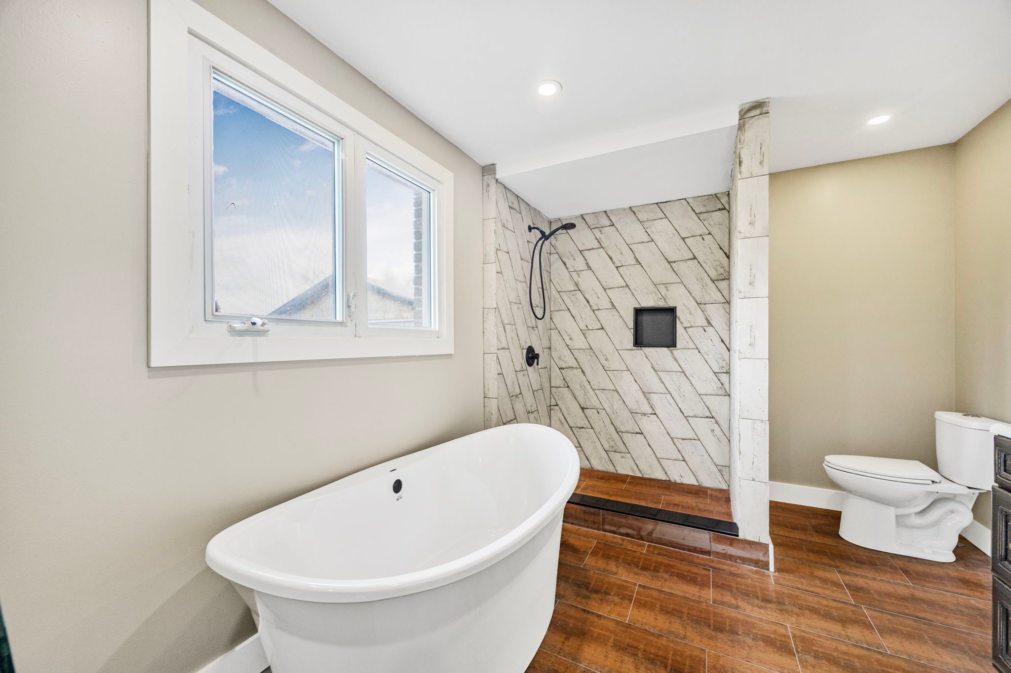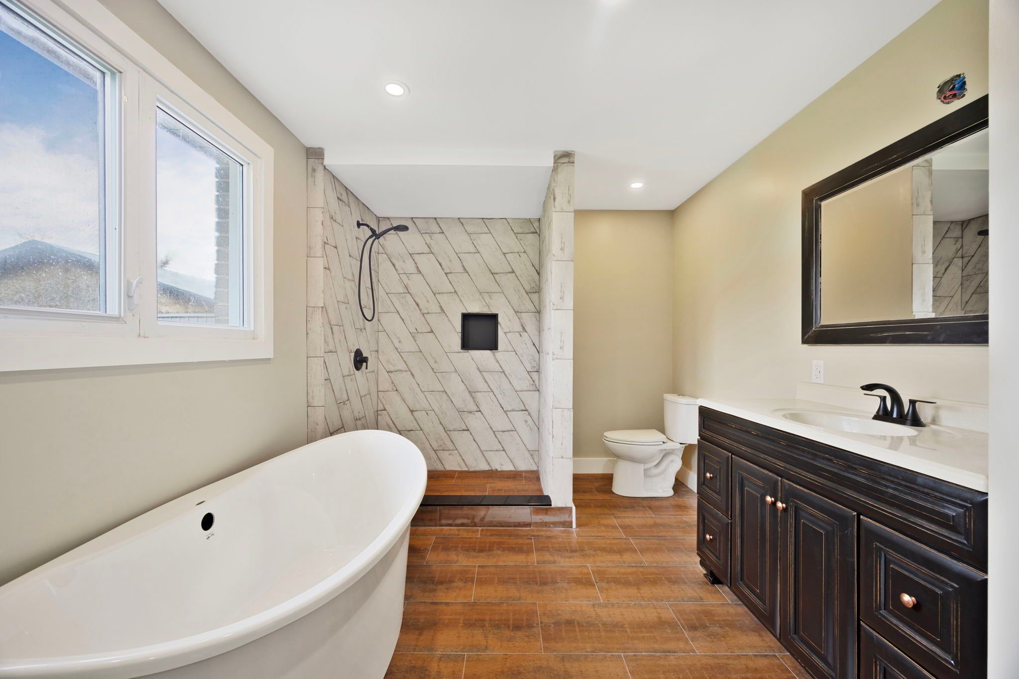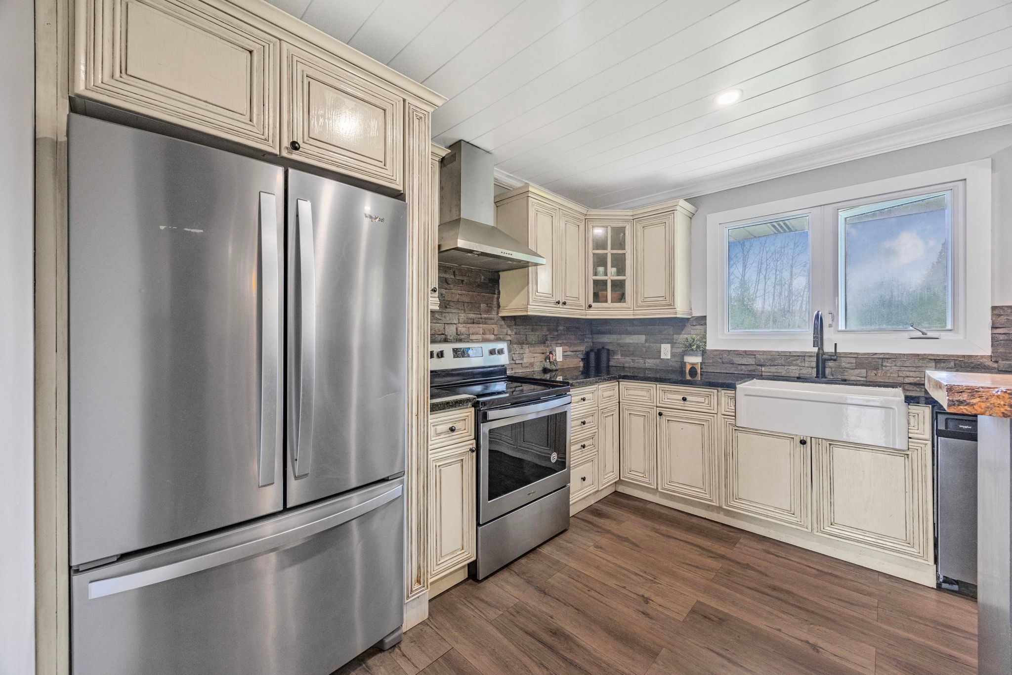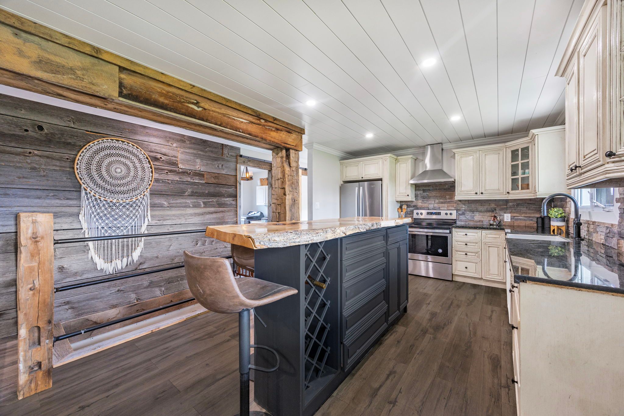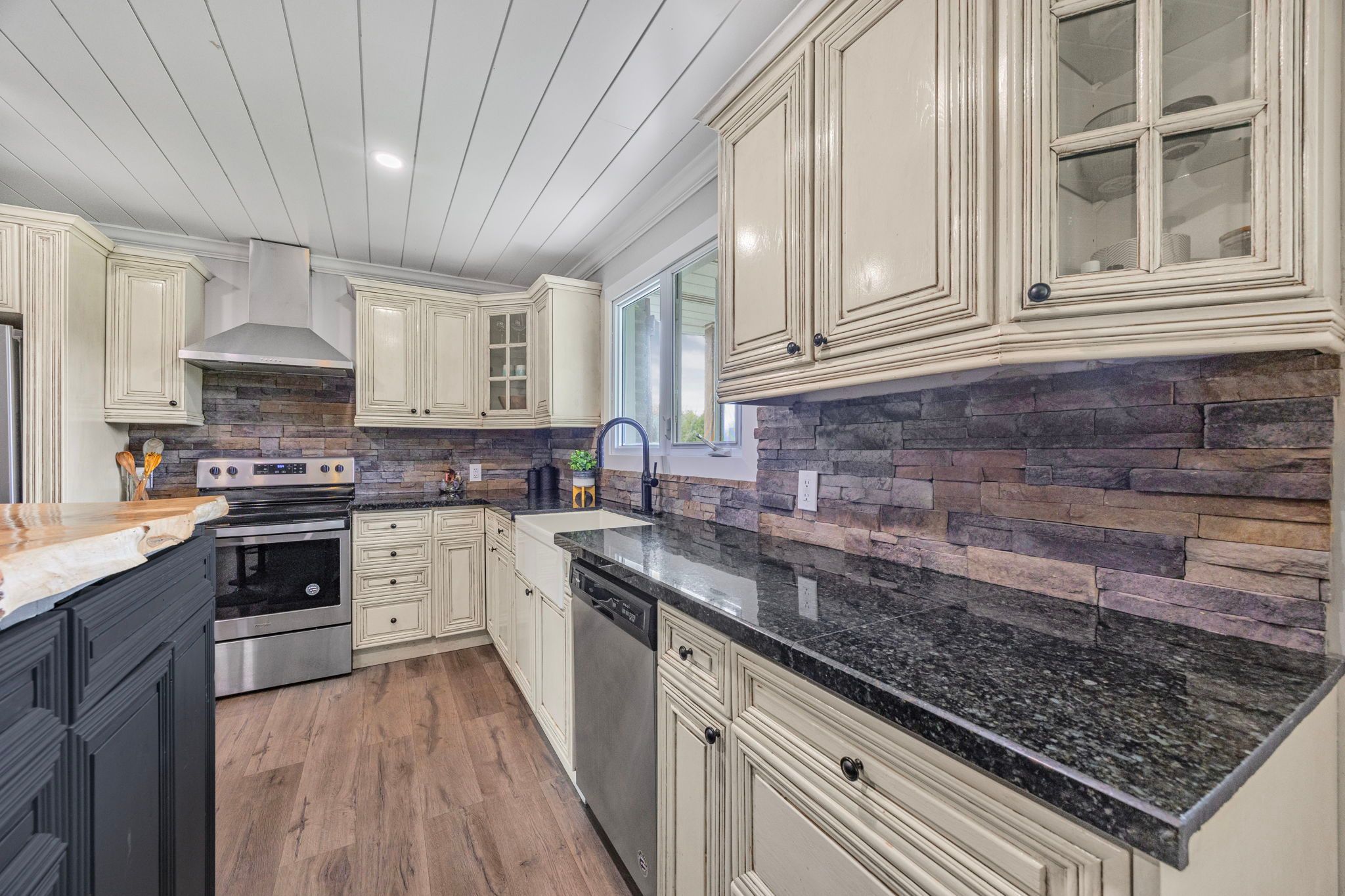• Newly renovated brick bungalow blends rustic charm with modern comforts.