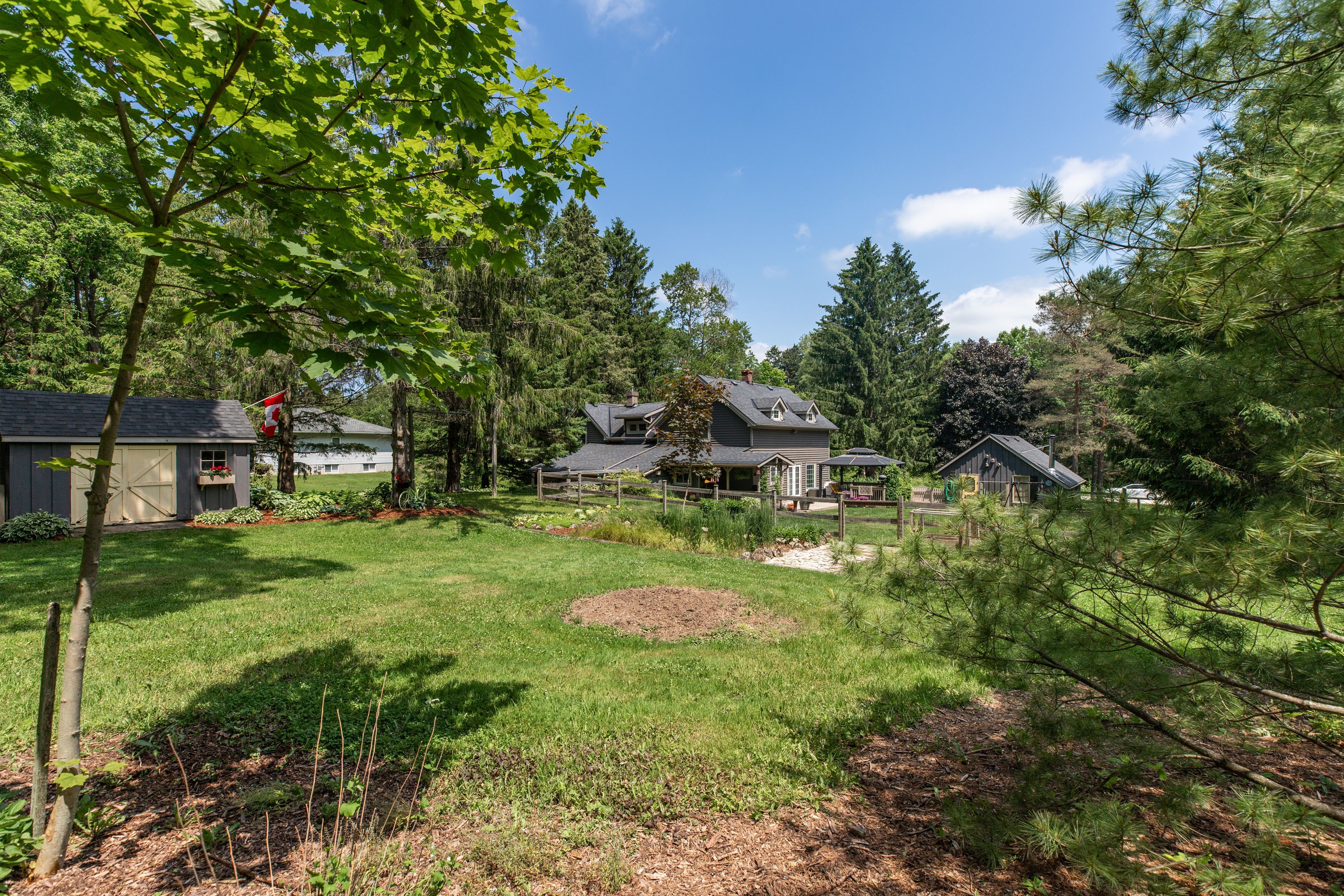 Welcome to one of the best-kept secrets near owen sound, where peace, privacy, and convenience meet on a quiet dead-end street. Set on justover an acre of beautifully landscaped land, this property offers a level of serenity that's rarely found this close to town. Mature trees, opengreenspace, and established perennial gardens surround you, making it truly an outdoor paradise. Whether it's morning coffee on the coveredfront porch, a peaceful afternoon in the gazebo, or watching the kids and pets play safely in the fenced side yard, the outdoor lifestyle here issecond to none. Inside, the home is warm and welcoming, with a unique layout that offers both privacy and flexibility. There are two separateliving areas, each with its own staircase leading to the second floor a great setup for families with children, guests, or those working from home. A central laundry room and powder room sit between the living spaces, making day-to-day life both comfortable and convenient. You'll find fourbedrooms, two bathrooms, two gas fireplaces, and a recently updated kitchen that blends modern functionality with timeless charm. A mudroomoff the kitchen adds valuable storage and space for a second fridge or freezer. Additional highlights include a detached, insulated 2. 5-car garagewith a wood stove and a full loft for storage, a 15' x 19' workshop/storage room, central vac, gas dryer, gas bbq hookup, and hot and cold watertaps on the back porch for easy outdoor use. Located in georgian bluffs but bordering owen sound, you get the best of both worlds: lower property taxes with the perks of city water, transit access, and close proximity to schools, parks, and shopping. Lovingly maintained by the sameowners for 49 years, this home offers more than just space, it offers a lifestyle. One visit, and you'll understand why they never wanted to leave.