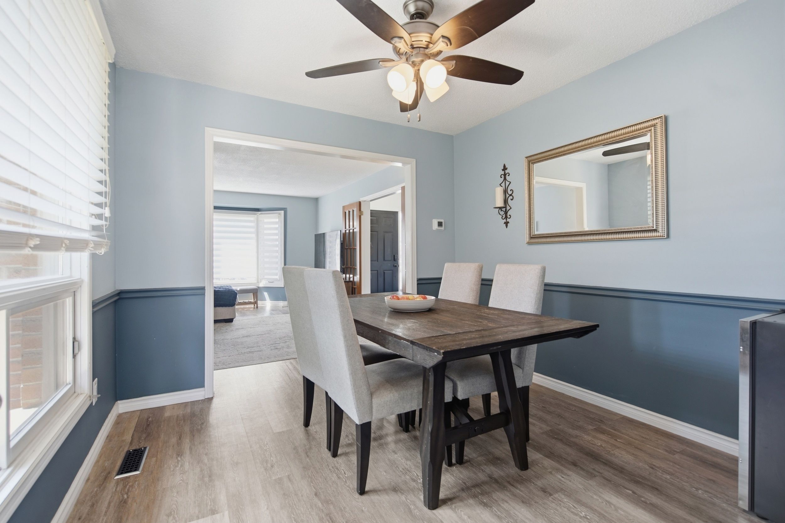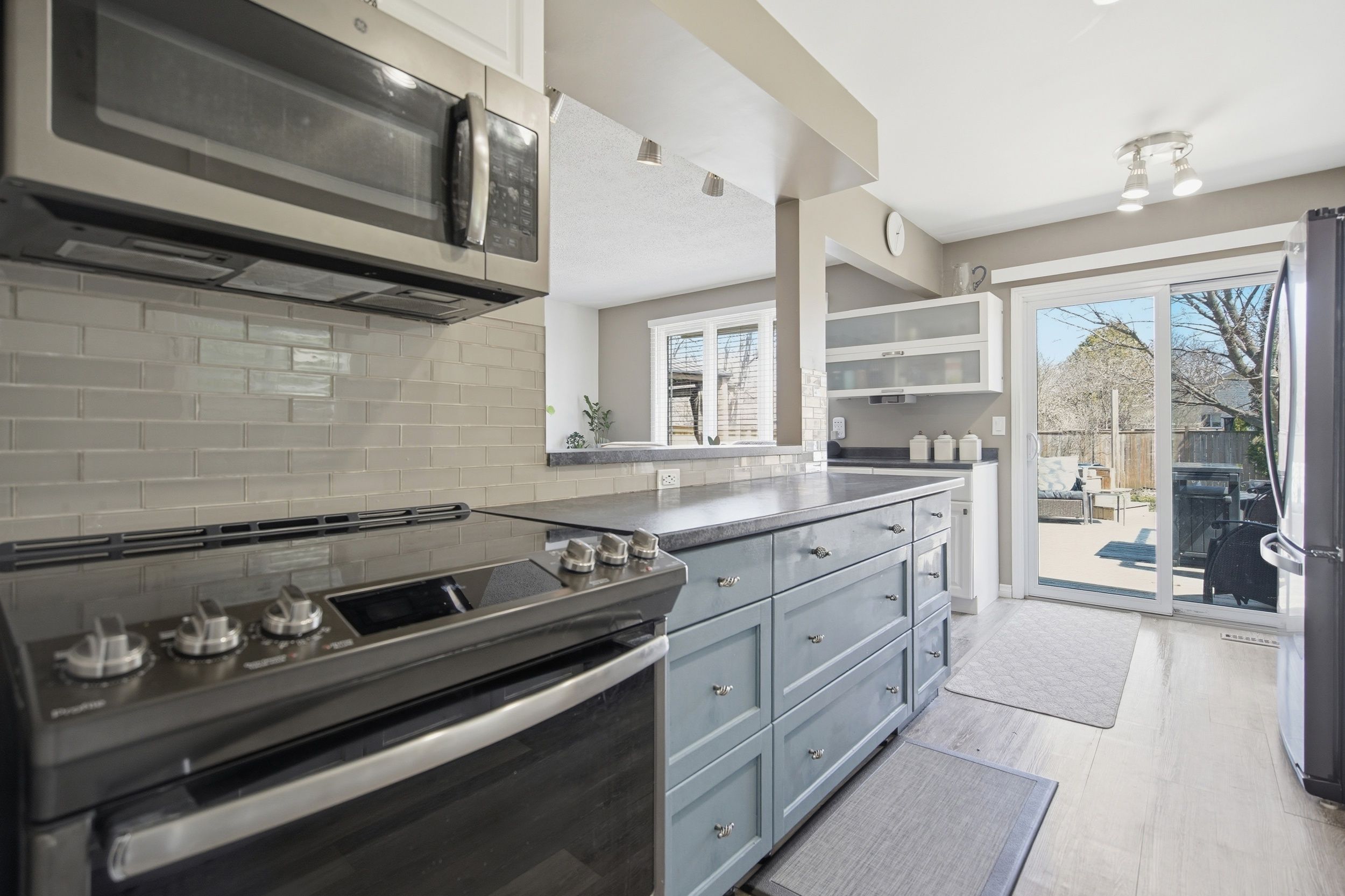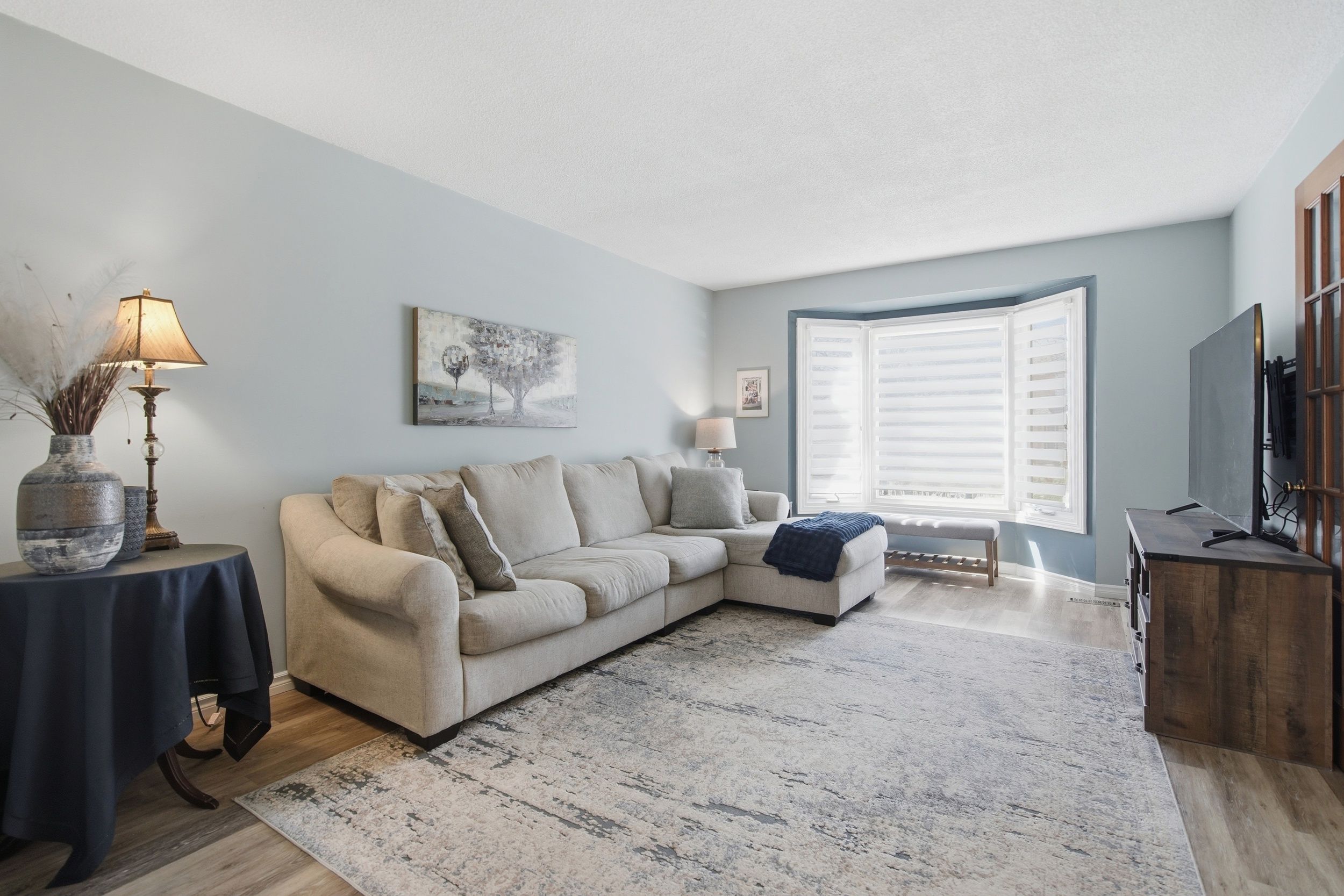 Located in family friendly mature neighbourhood in sought after south end walking distance to parks, river trails, playground and school. City bus at corner. 6 minutes to white oaks mall. 3 minutes to plaza with bank, library, restaurants, grocery and drug store and more! Nestled on quiet no exit place. Family home on privacy fenced lot with entertainment in mind. Enjoy spacious deck, covered bbq area, on ground pool with solar and winter covers as well as a concrete pad covered with a gazebo for a future hot tub. Sought after main floor plan has bay windowed living room and a family room which has a fireplace to warm up winter nights. Updated kitchen overlooks family room and opens through patio doors to backyard. Formal dining room for family meals. Fully finished lower level complete with rec room and a den. There are 3 spacious bedrooms on 2nd floor and the primary bedroom boasts its own ensuite and walk in closet. Updates also include furnace, air, flooring, dishwasher, fridge and stove. Long closing date preferred but sellers are flexible.