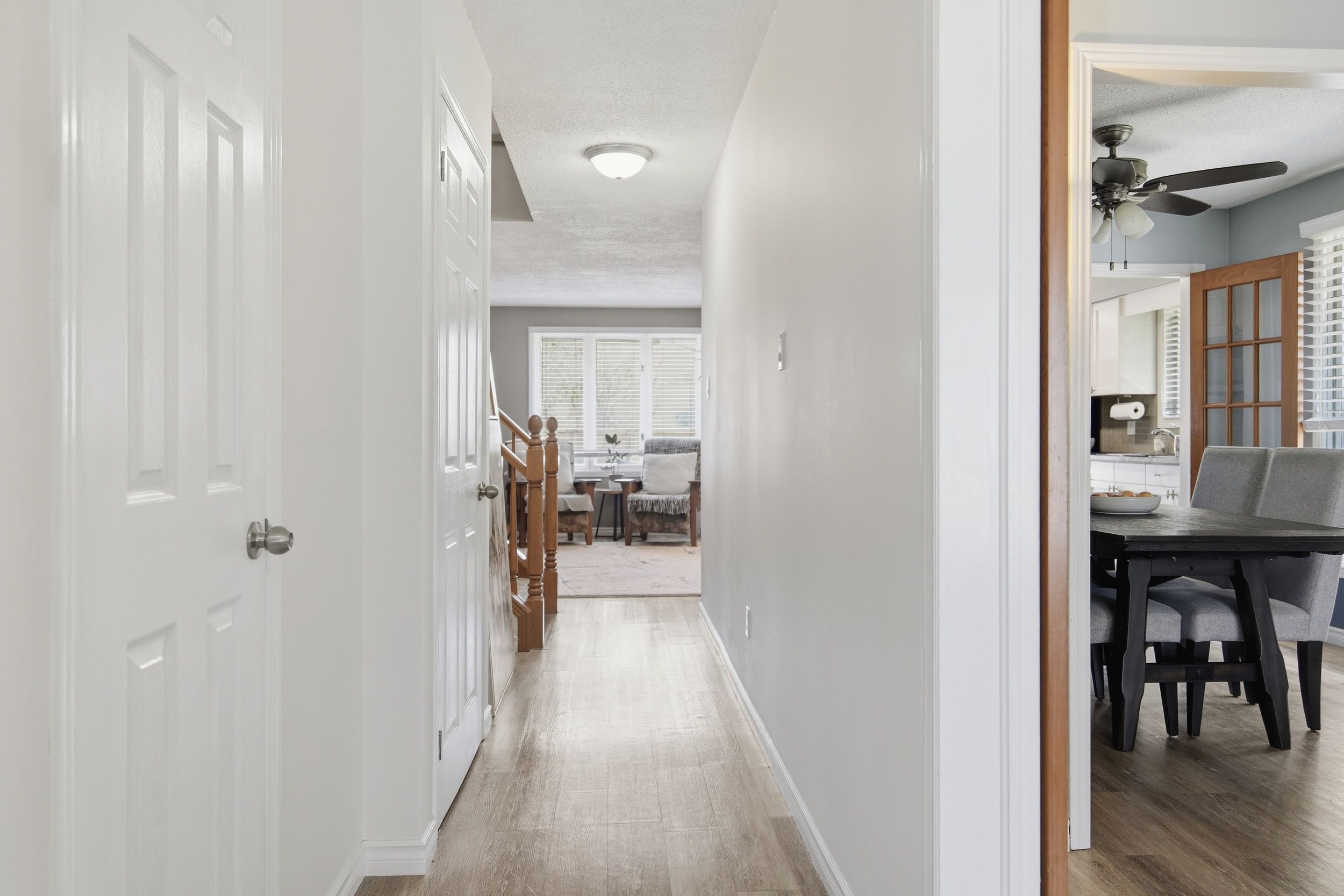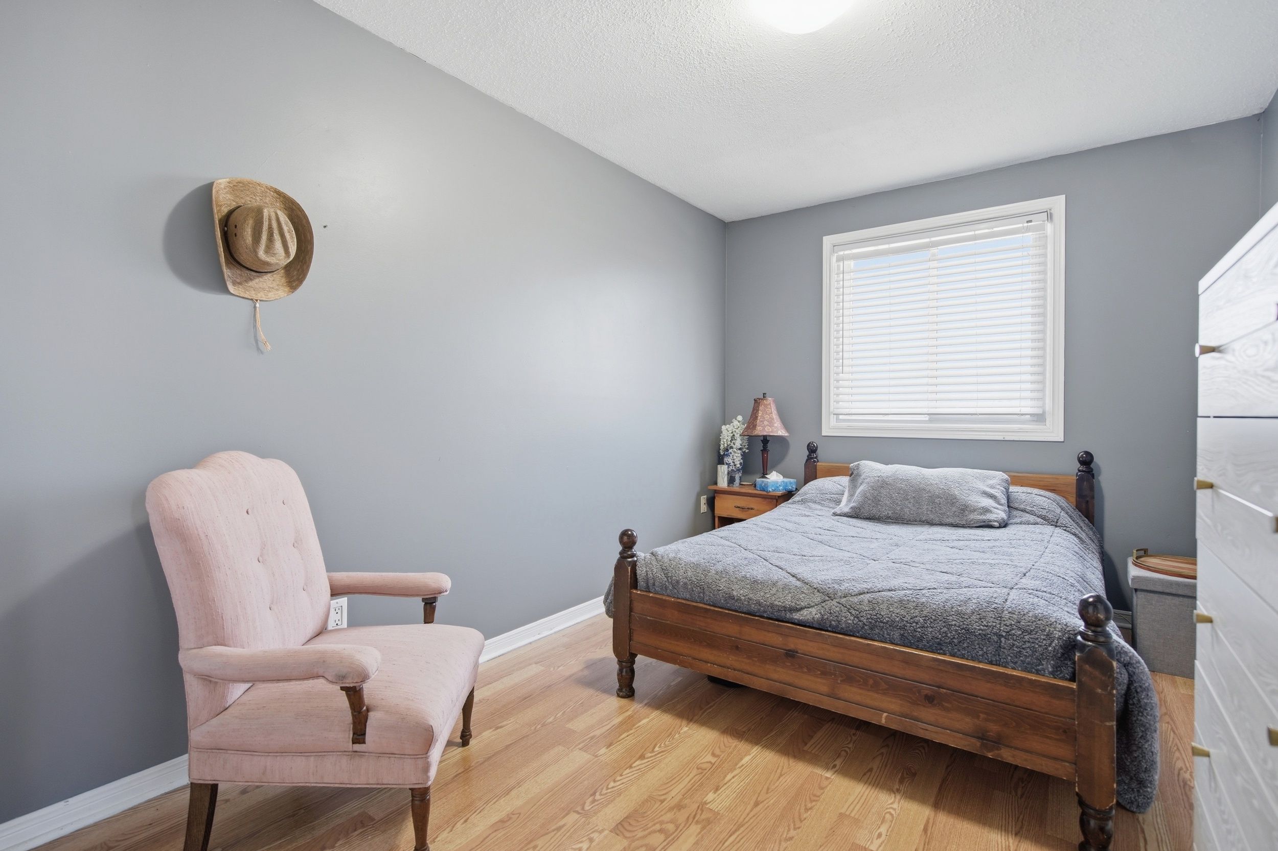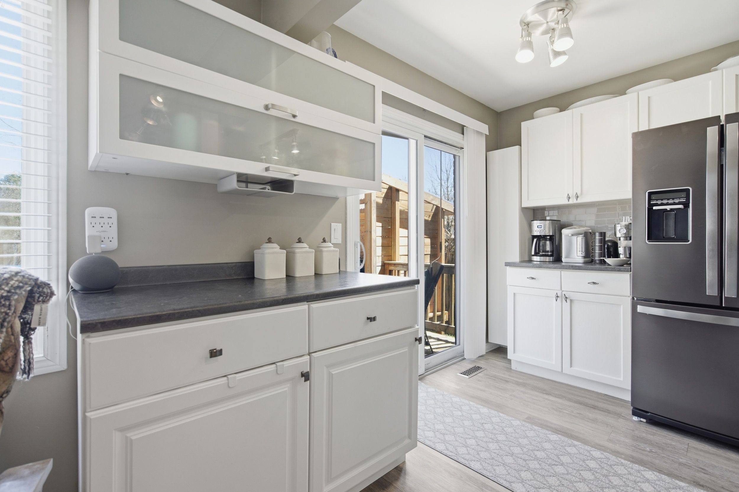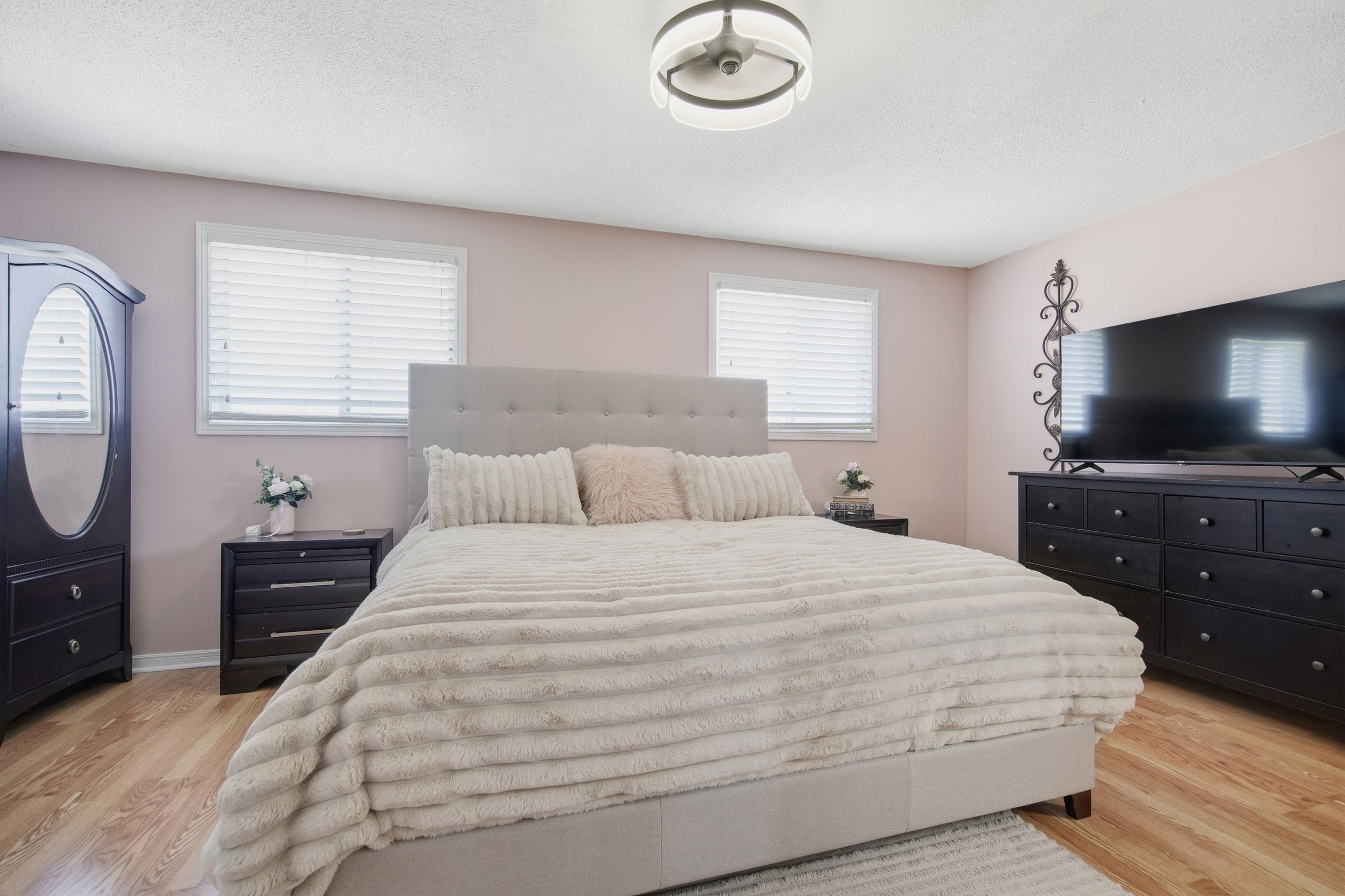 Located in family friendly mature neighbourhood in sought after south end walking distance to parks, river trails, playground and school. City bus at corner. 6 minutes to white oaks mall. 3 minutes to plaza with bank, library, restaurants, grocery and drug store and more! Nestled on quiet no exit place. Family home on privacy fenced lot with entertainment in mind. Enjoy spacious deck, covered bbq area, on ground pool with solar and winter covers as well as a concrete pad covered with a gazebo for a future hot tub. Sought after main floor plan has bay windowed living room and a family room which has a fireplace to warm up winter nights. Updated kitchen overlooks family room and opens through patio doors to backyard. Formal dining room for family meals. Fully finished lower level complete with rec room and a den. There are 3 spacious bedrooms on 2nd floor and the primary bedroom boasts its own ensuite and walk in closet. Updates also include furnace, air, flooring, dishwasher, fridge and stove. Long closing date preferred but sellers are flexible.