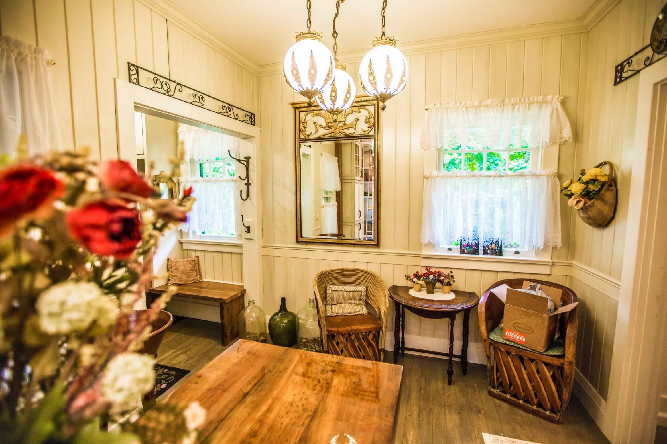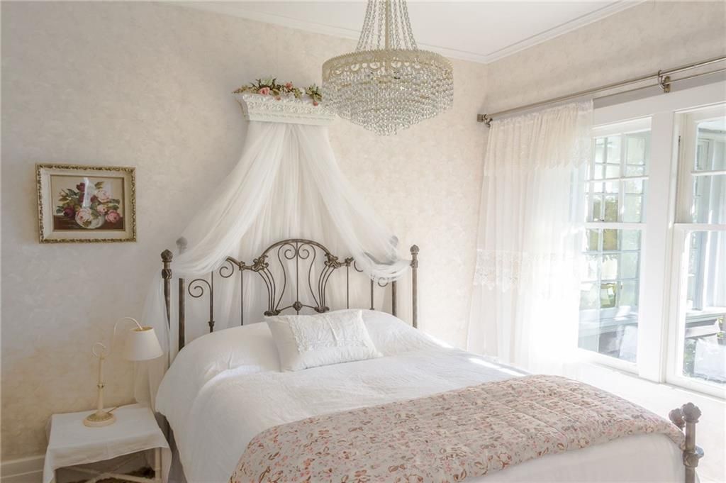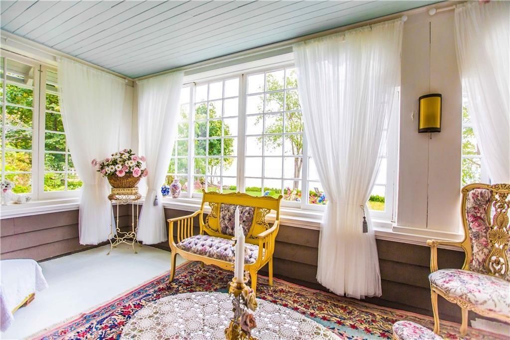 • Bright sunroom with 18-paned windows showcasing views of Lake Ontario.