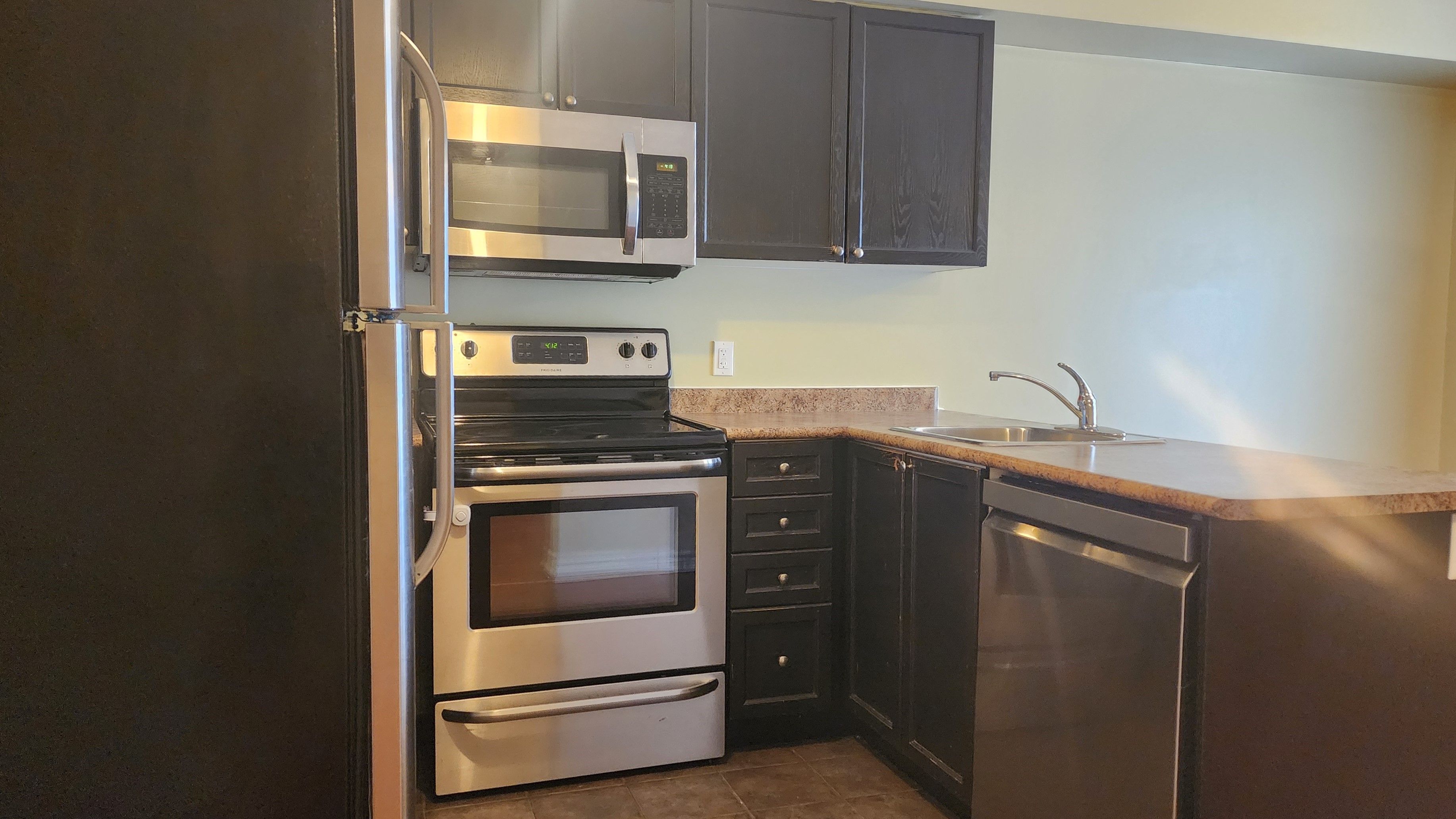 • Modern kitchen with stainless steel appliances for easy cooking.