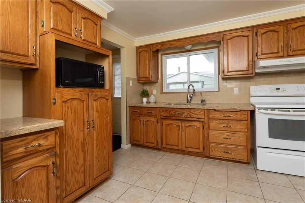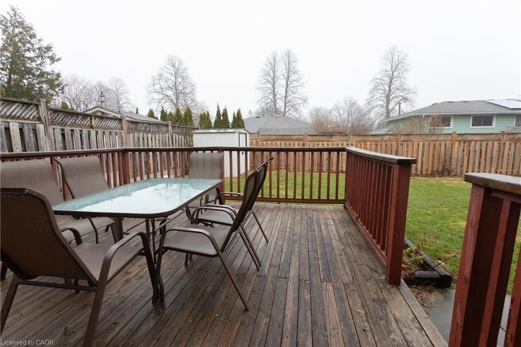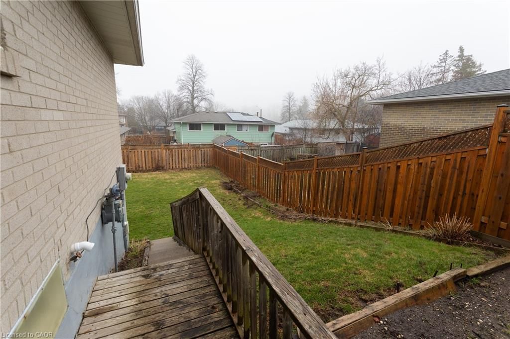 Victoria hills bungalow! Offered for the first time for sale, this one-owner, custom-built brick home has a practical layout and plenty of space. The main floor features a bright living room with a large bay window, a separate dining room, and an eat-in kitchen with oak cabinetry, granite countertops and ceramic backsplash. There is also a walkout to a private side yard. There are three well-sized bedrooms with laminate flooring, along with a 4 piece main bathroom. The fully finished lower level adds extra living space with a bedroom, sitting area, large rec room, full bathroom, and laundry. You will love the pub-style bar with retro mirrors, coloured mood lighting and seating for 4. Walkout from the basement to an oversized pressure-treated deck and a fully fenced yard. With in-law potential, this home is a great option for first-time buyers or investors. Updates include the furnace, central air, windows, and roof.