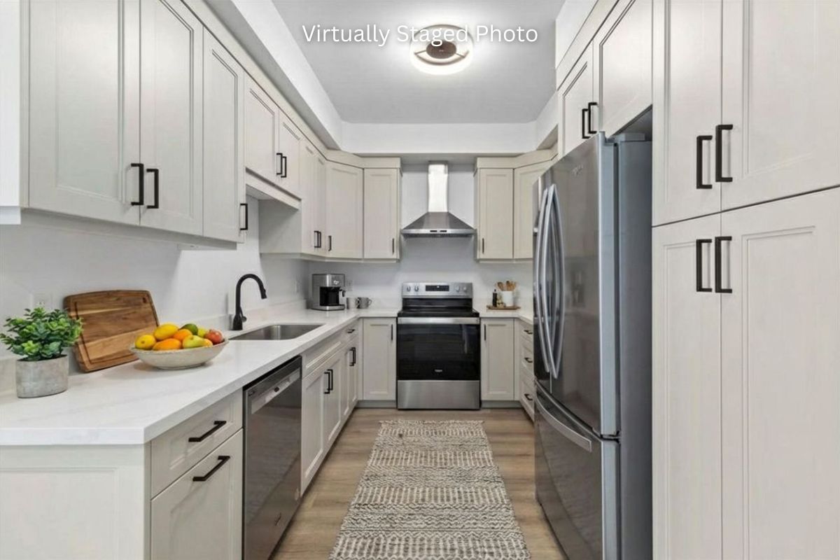 Discover this stunning southampton townhome, perfectly positioned along the scenic saugeen river, it's just a short walk to vibrant downtown shops, restaurants, the beach & breathtaking sunsets on lake huron. Spanning over 2,000 sq ft of finished living space across three levels (two above grade plus a full finished basement), the home features a bedroom and full bathroom on each floor for ultimate convenience and privacy. Inside, you'll appreciate the tasteful finishes, including quality cabinetry, solid surface counters, luxury vinyl plank flooring, tiled bath/shower surrounds, led lighting, and more. The main level showcases an open-concept living/dining area with access to your south facing deck, a u-shaped kitchen loaded with ample cabinetry and included appliances, a bright main-floor bedroom and a 4-piece bathroom. Upstairs, a versatile loft/sitting room leads to the primary bedroom suite, displaying river views through the dormer window, a 3-piece ensuite, and a large walk-in closet. The fully finished basement offers guest-friendly space with a third bedroom, another 4-piece bathroom, and a generous sized recreation room. Additional highlights include efficient natural gas furnace, central air conditioning, laundry hookups ready for your washer/dryer, concrete driveway, single attached garage, and low maintenance curb appeal with the stone-brick exterior. Built just a few years ago, this turn-key townhome is ready for you to move right in and add your decorative touch. Waterfront travelled road between. Photos with furniture and decor are virtually staged.
