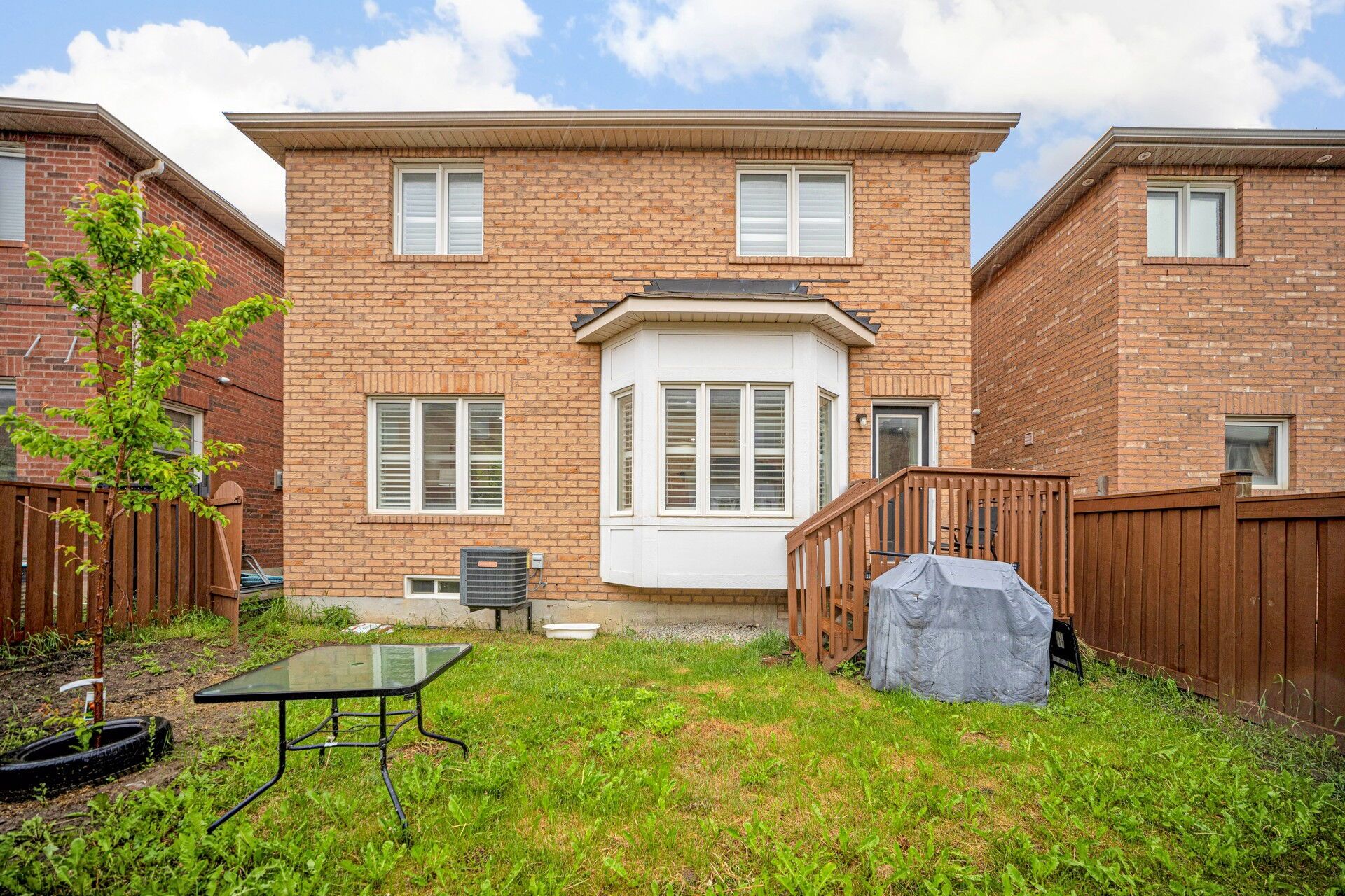 • Fully fenced backyard with wooden deck, great for outdoor gatherings.