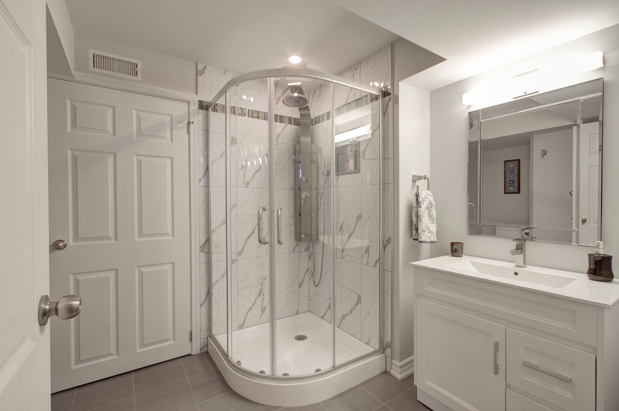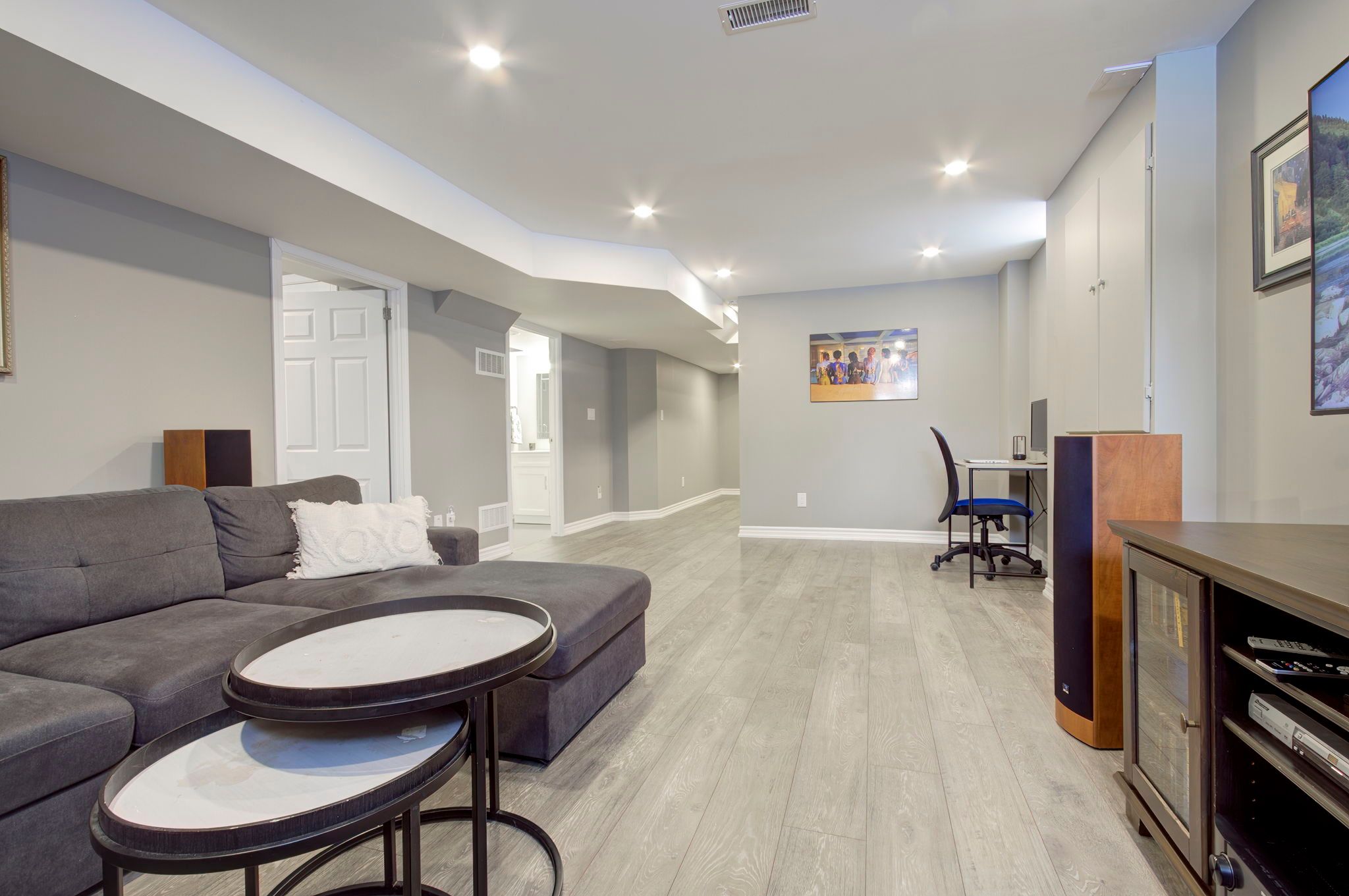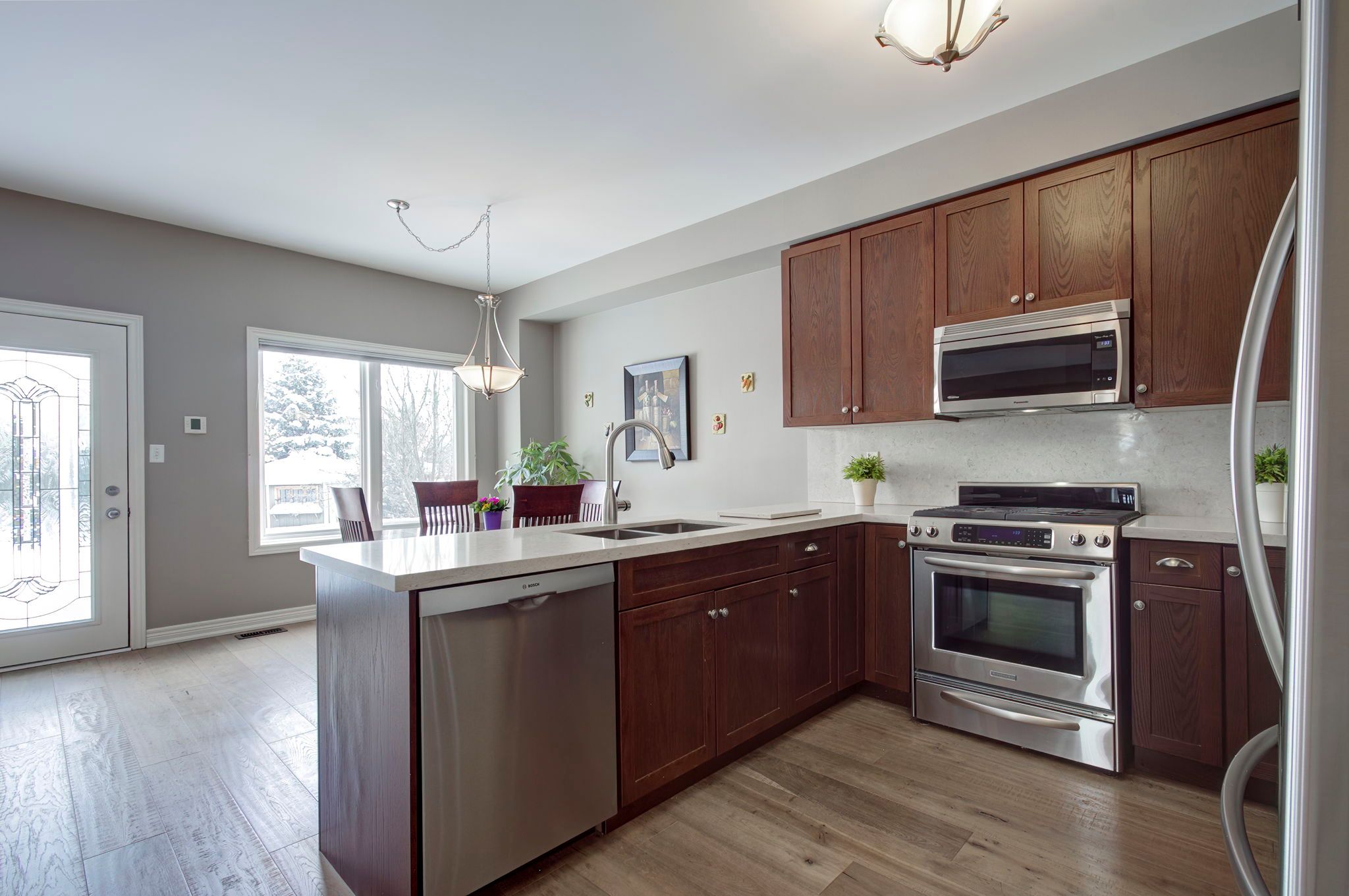 • Spacious open concept with 9-foot ceilings and gourmet kitchen.