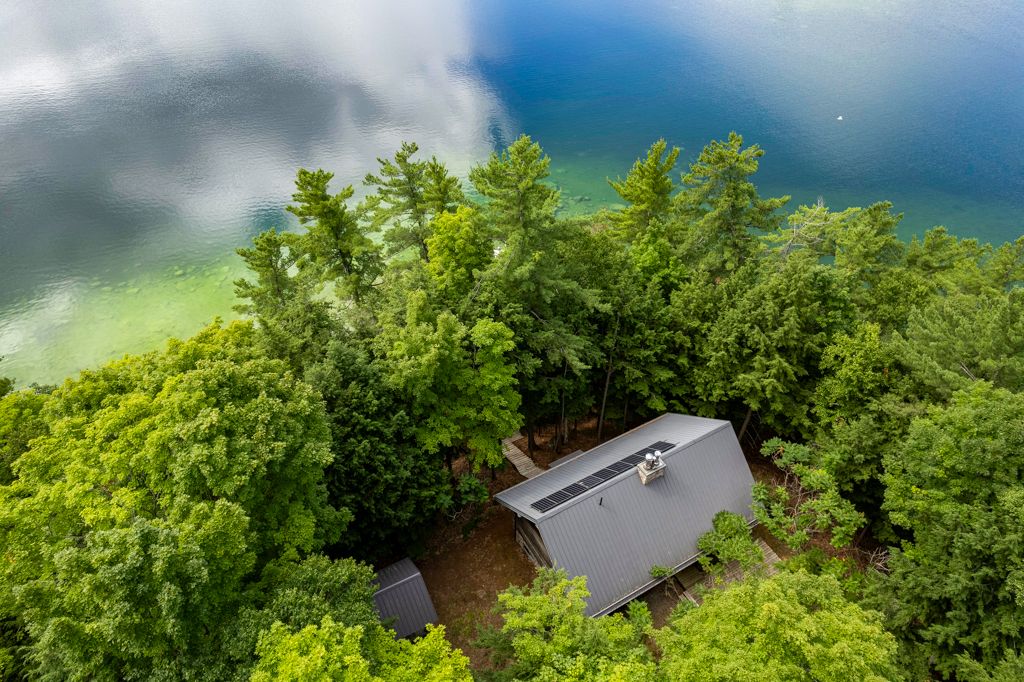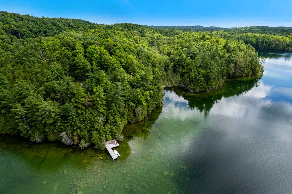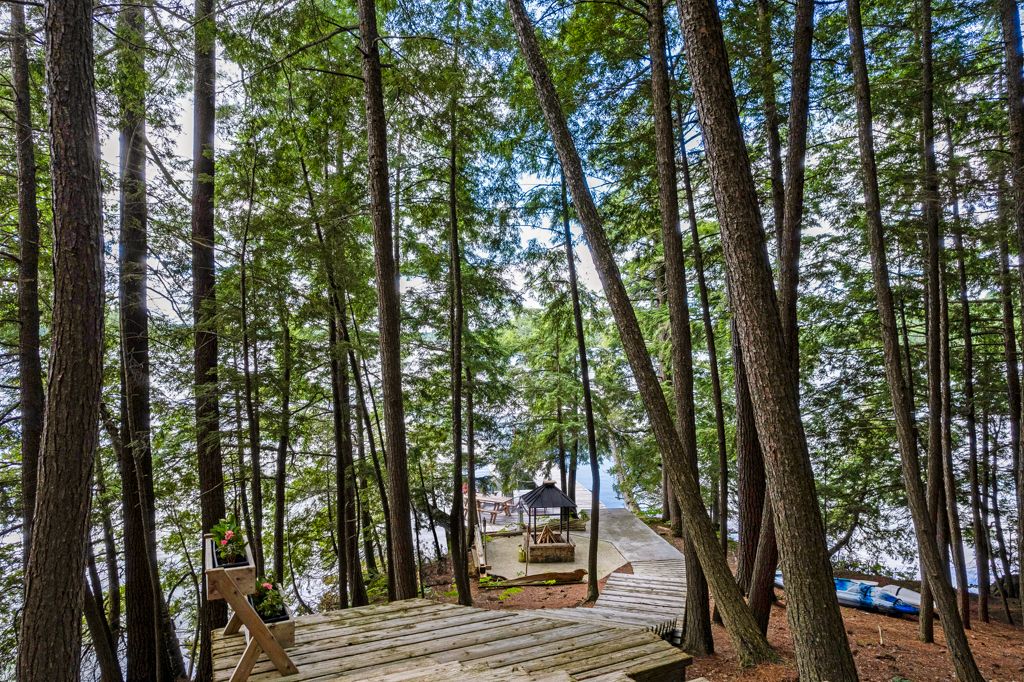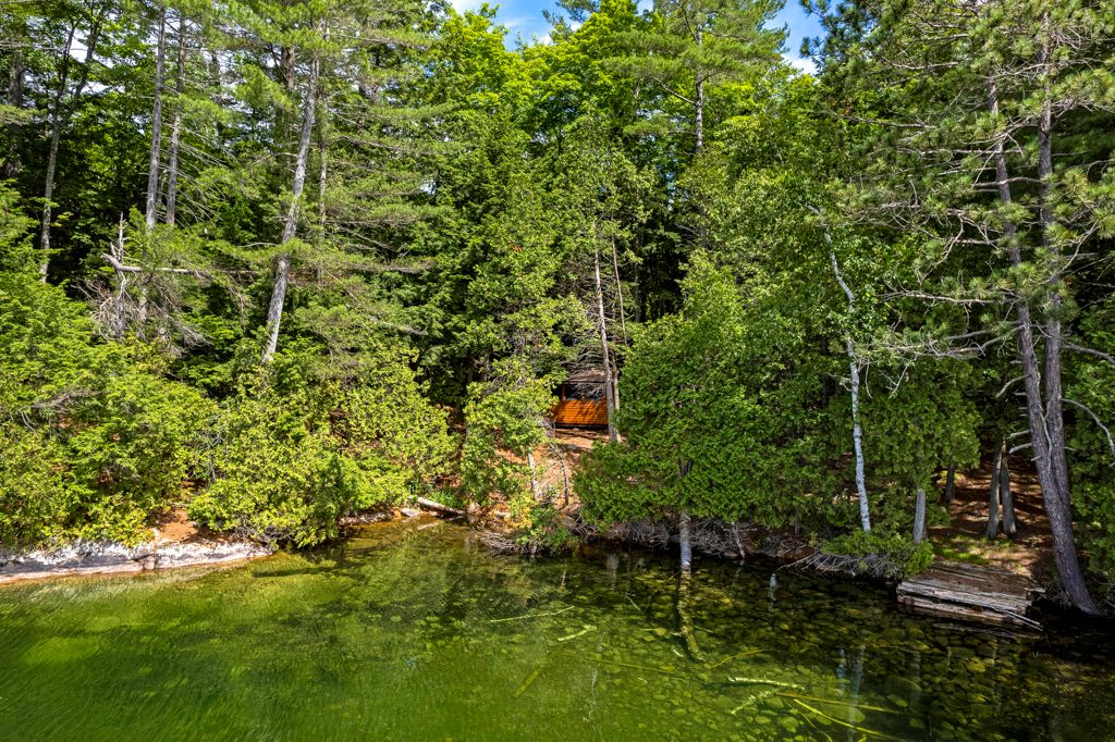 Set on 6. 69 forested acres with over 1,400 feet of private shoreline, this custom-built log home on palmerston lake offers quiet comfort and quality craftsmanship. The setting is both peaceful and wild, bordered by more than 1,000 acres of crown land and over a kilometre of untouched crown shoreline to the west. A short boat ride from the marina brings you to the dock, where deep, clean water invites you to swim, fish, or simply take in the long, uninterrupted views down the lake. Designed with care and built to last, the home features timberframe accents, wide-plank pine floors, and a soaring great room anchored by a striking fieldstone fireplace. A woodstove adds warmth to the lower-level family room, while three bedrooms and two full baths provide space for family and guests. Down a forest path, a separate bunkie with its own outhouse offers a quiet retreat for visitors or a distraction-free artist's studio. The off-grid systems are robust, with a large solar and battery setup, generator backup, lake water intake, and full septic. Outside, a large firepit near the waters edge offers the perfect way to enjoy starlit evenings, and trails through to the neighbouring crown land offer easy access to atv and snowmobile routes. Imagine sipping your morning coffee on the dock as loons call across the water, grounding you in the quiet beauty of the land. 1. 5 hours from ottawa or kingston, this is a place to get away and settle into a slower rhythm.