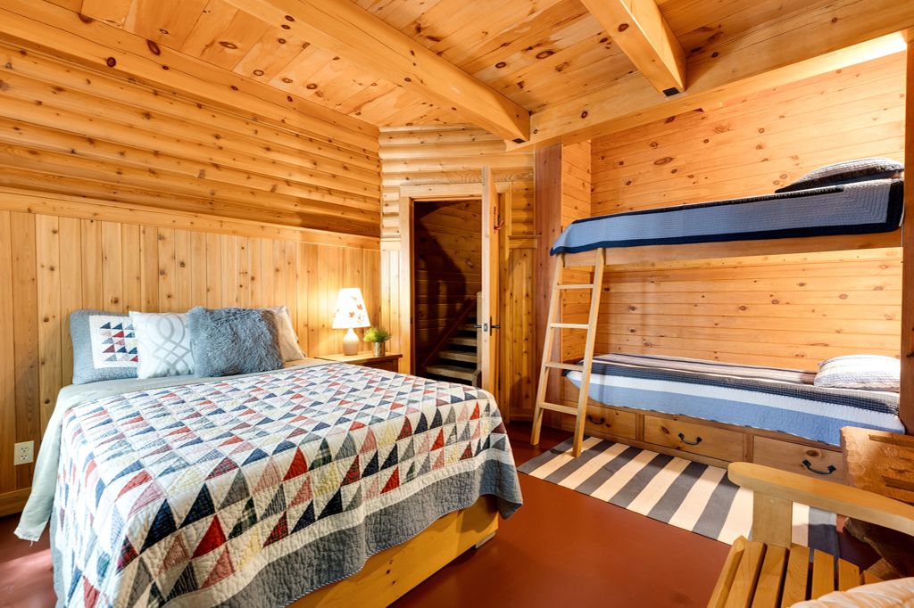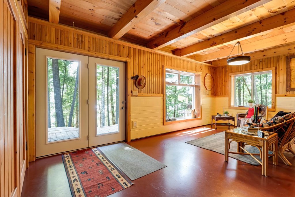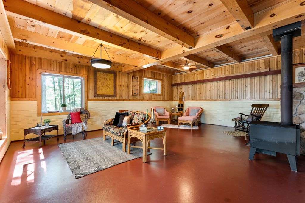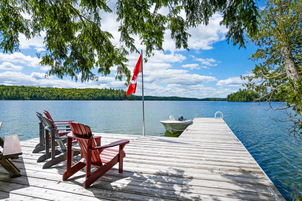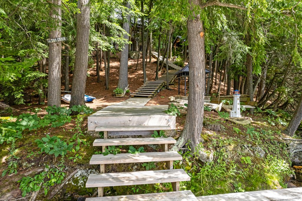 Set on 6. 69 forested acres with over 1,400 feet of private shoreline, this custom-built log home on palmerston lake offers quiet comfort and quality craftsmanship. The setting is both peaceful and wild, bordered by more than 1,000 acres of crown land and over a kilometre of untouched crown shoreline to the west. A short boat ride from the marina brings you to the dock, where deep, clean water invites you to swim, fish, or simply take in the long, uninterrupted views down the lake. Designed with care and built to last, the home features timberframe accents, wide-plank pine floors, and a soaring great room anchored by a striking fieldstone fireplace. A woodstove adds warmth to the lower-level family room, while three bedrooms and two full baths provide space for family and guests. Down a forest path, a separate bunkie with its own outhouse offers a quiet retreat for visitors or a distraction-free artist's studio. The off-grid systems are robust, with a large solar and battery setup, generator backup, lake water intake, and full septic. Outside, a large firepit near the waters edge offers the perfect way to enjoy starlit evenings, and trails through to the neighbouring crown land offer easy access to atv and snowmobile routes. Imagine sipping your morning coffee on the dock as loons call across the water, grounding you in the quiet beauty of the land. 1. 5 hours from ottawa or kingston, this is a place to get away and settle into a slower rhythm.