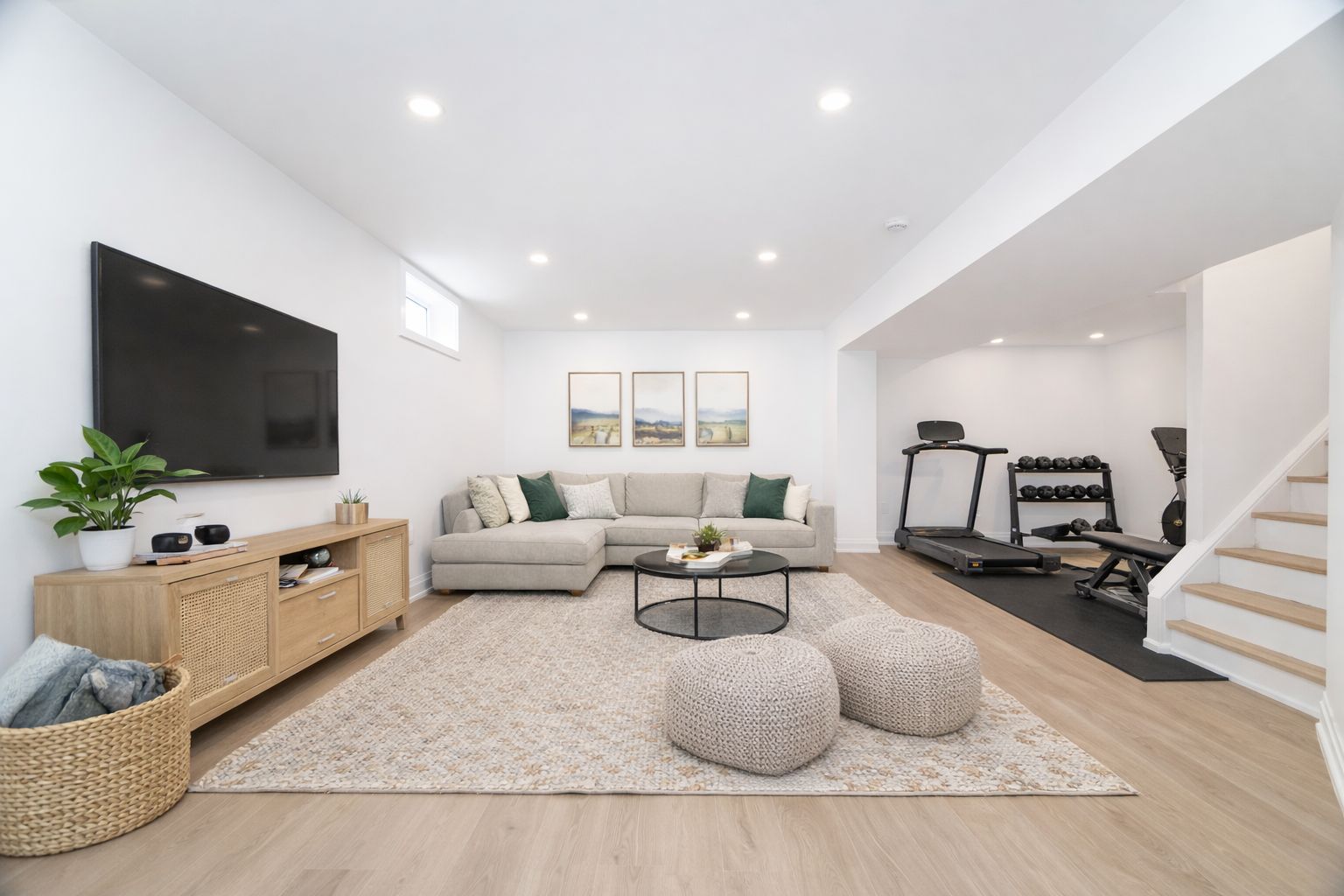 • Finished basement with versatile spaces for recreation and laundry.