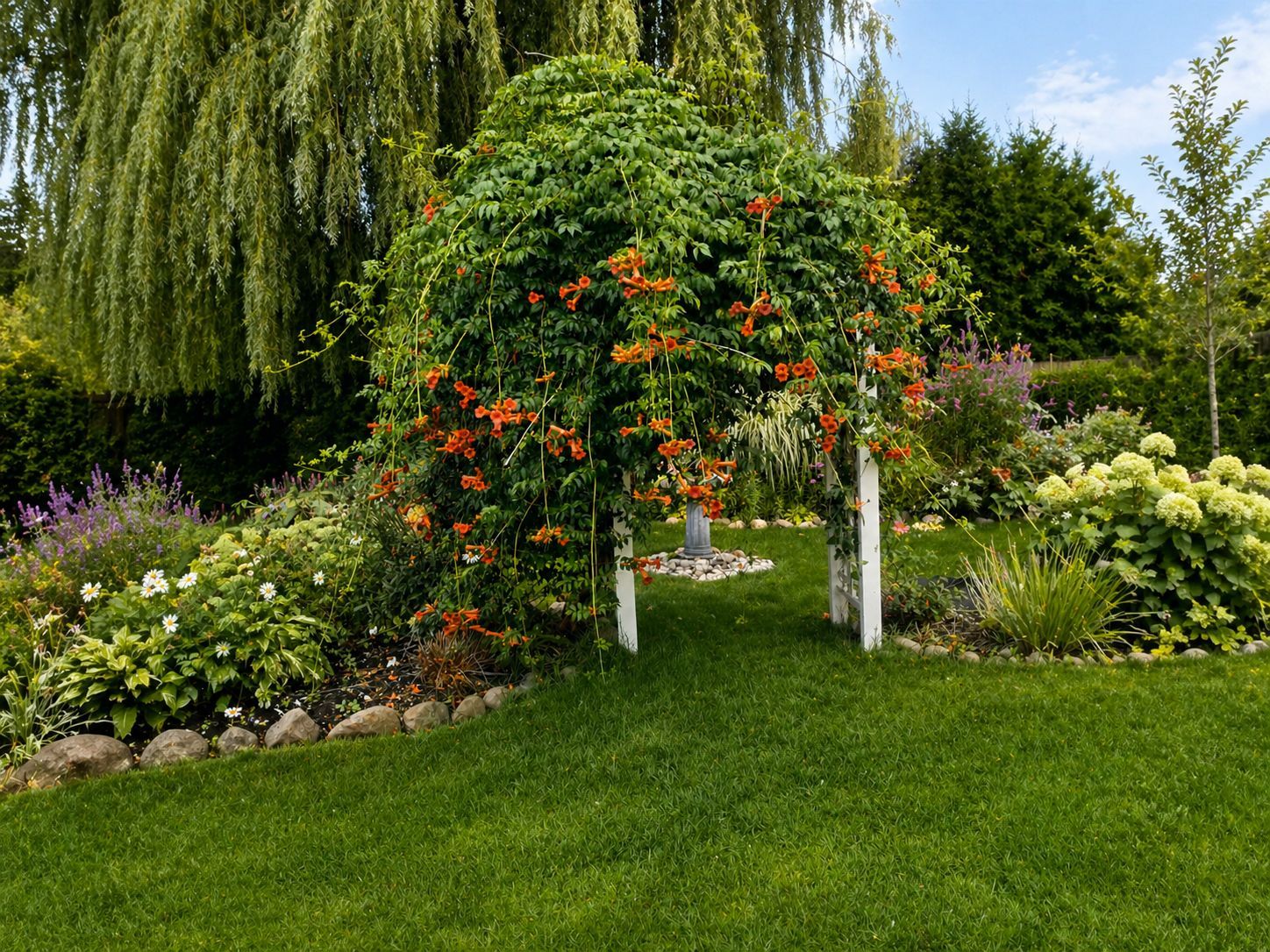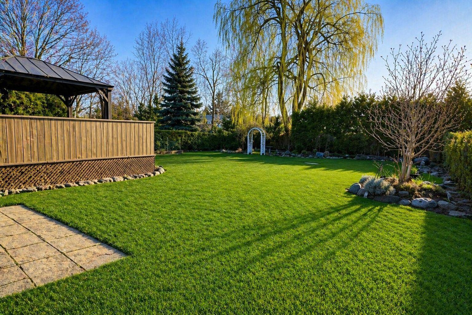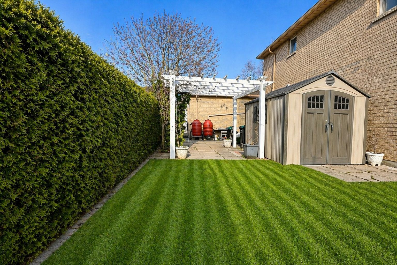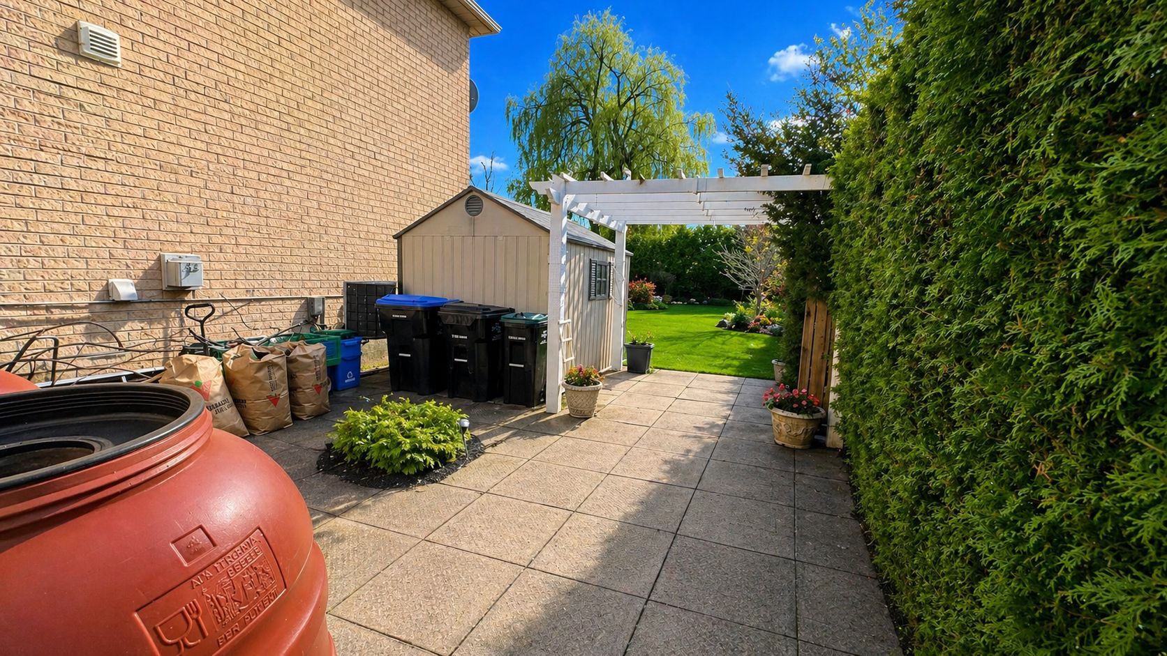 • Private backyard with a gazebo, garden, and surrounded by mature trees.