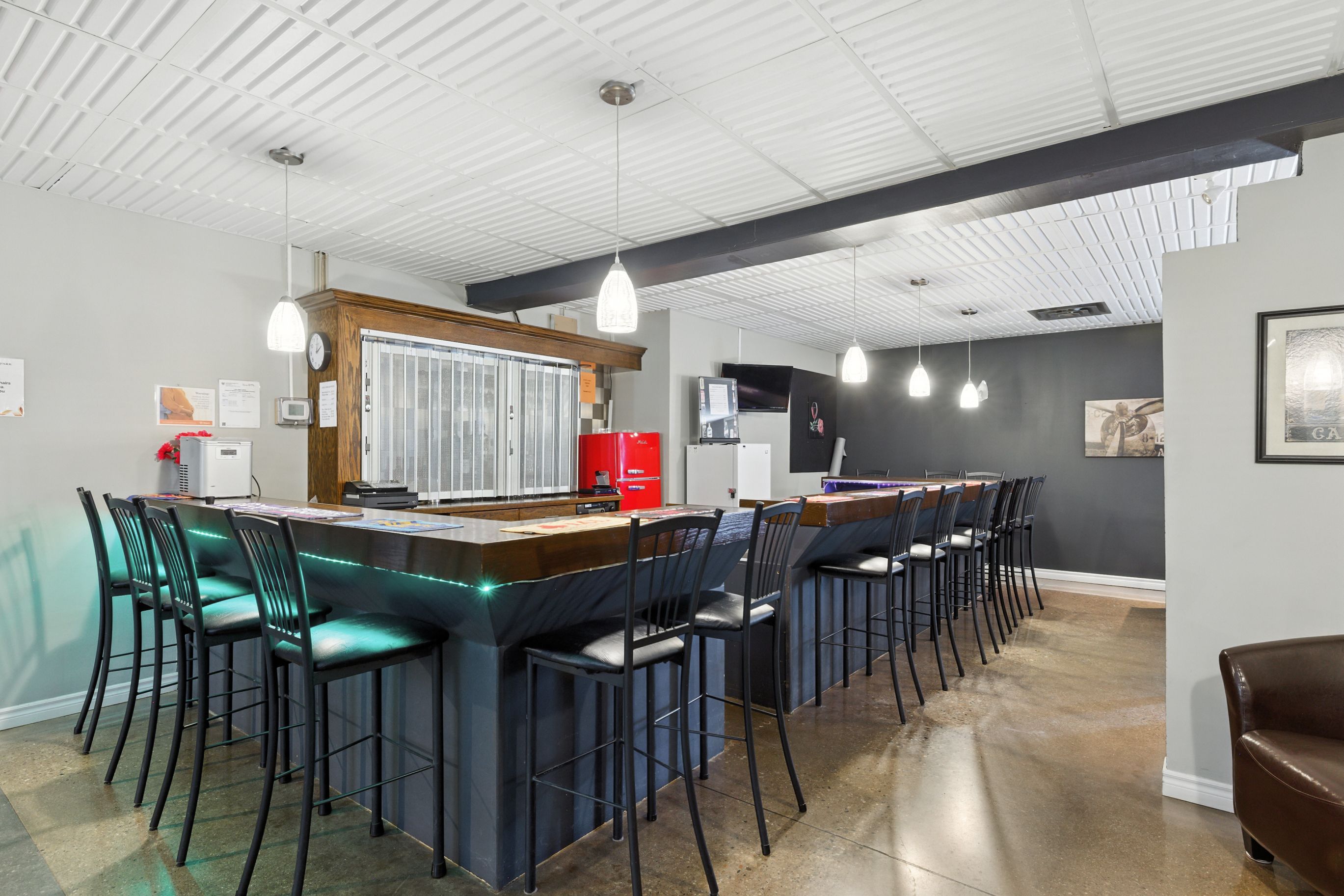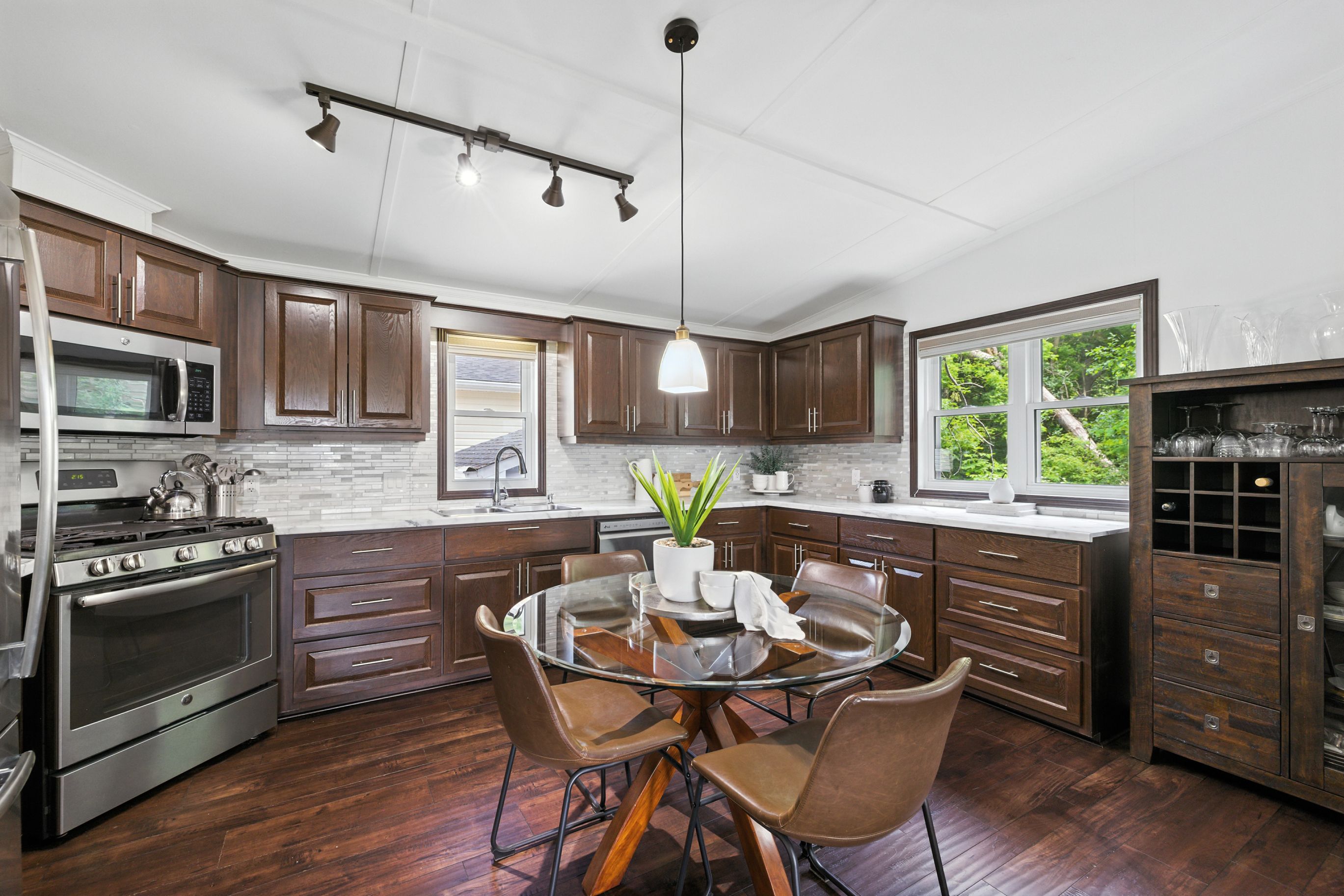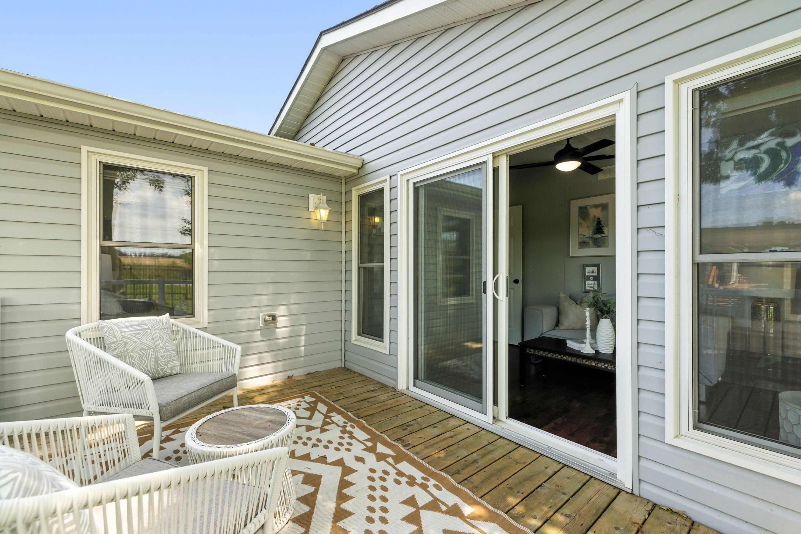 • Private back deck with BBQ space and nearby propane hook-up for outdoor fun.