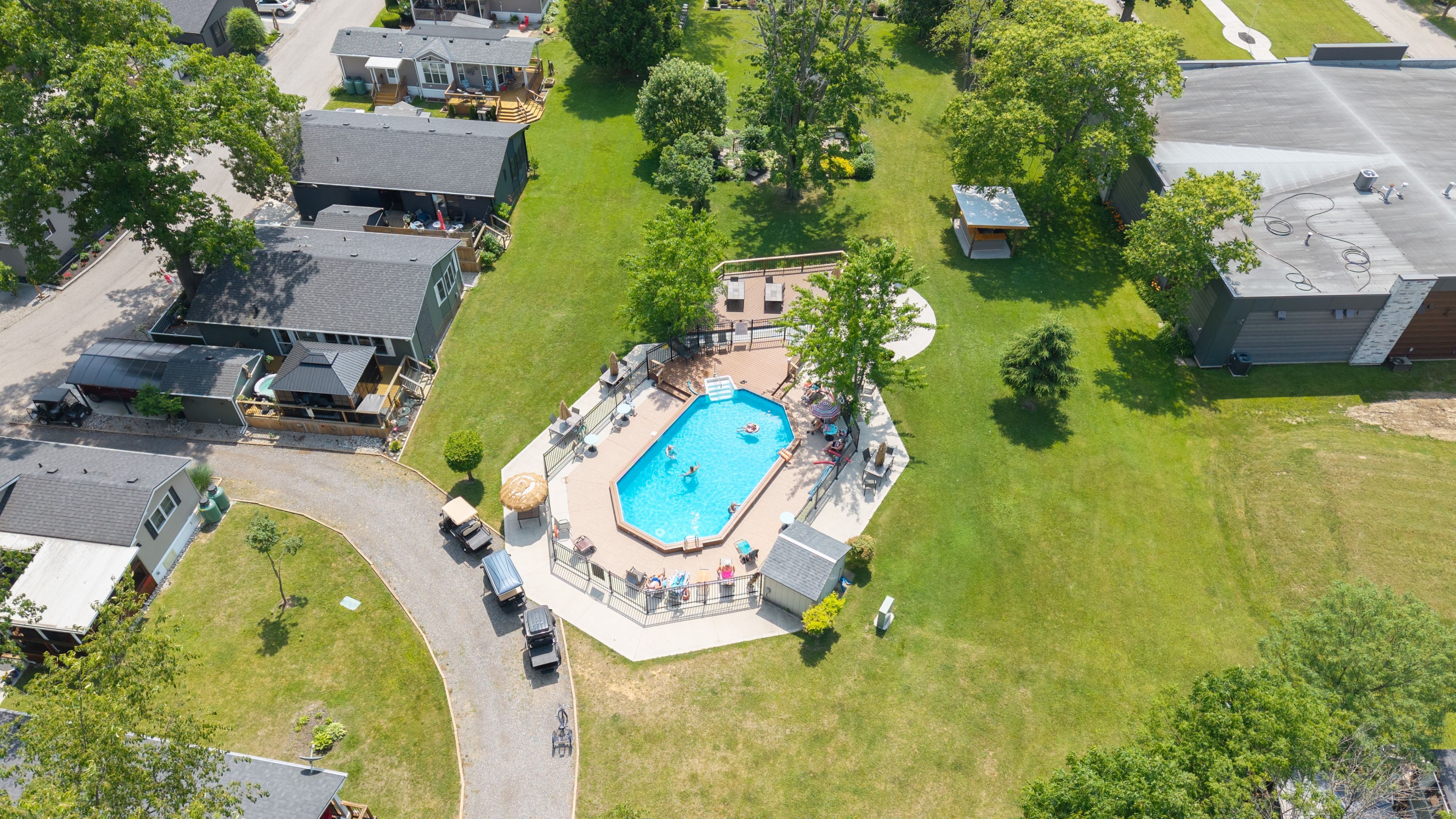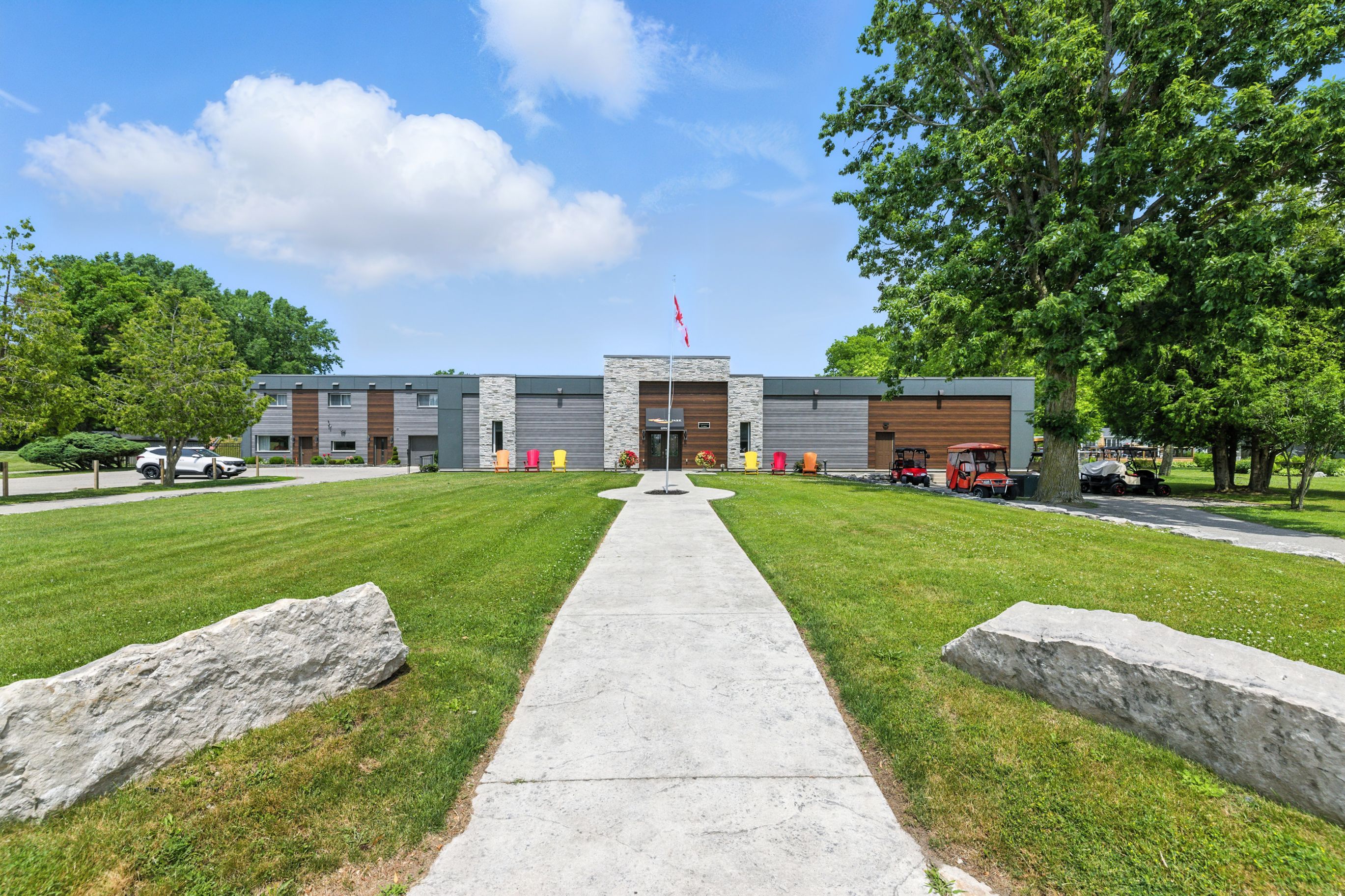 Live the resort lifestyle year-round in unit #1 at oriole park resort--a rare gem in komoka just 10 minutes west of london. This vibrant four-season retirement community offers a peaceful, cottage-like setting and this 3-bedroom, 2-bathroom modular home is packed with features that make everyday living feel like a getaway. Inside, enjoy hand-scraped laminate floors, an open-concept living, dining, and kitchen area filled with natural light, plus generous closet space at the entrance. The kitchen features stainless steel appliances, tile backsplash, and ample cabinetry. Off the dining area, step onto a private back deck with patio space and a nearby propane hook-up--perfect for summer bbqs. The main 4-piece bathroom is equipped with built-in storage and a convenient stacked washer/dryer. All bedrooms are bright and spacious, with great closet space. One room functions beautifully as a sunroom, an office or third bedroom--your choice! From there, sliding doors lead to a cozy enclosed deck for even more outdoor enjoyment. The primary suite features vaulted ceilings, generous closet space, and 3-piece ensuite. Enjoy unobstructed outdoor views with a neighbouring lot that will remain vacant--offering extra privacy and serenity. A storage shed adds practical outdoor space for tools and gear and two parking spaces is a bonus! But what truly sets this home apart is the unmatched lifestyle oriole park offers: clubhouse amenities like a salon and spa, golf simulator, dog grooming station, fitness centre, pickleball court, event space, library, and a fully licensed bistro/bar with a pool table and darts. Stroll the beautifully landscaped grounds, complete with koi ponds, shuffleboard, an off-leash dog park, saltwater pool, community fire pit and garden, and bbq areas. If you're ready to downsize without compromise, unit #1 is your ticket to affordable, stylish, and social living in one of the regions most unique communities.