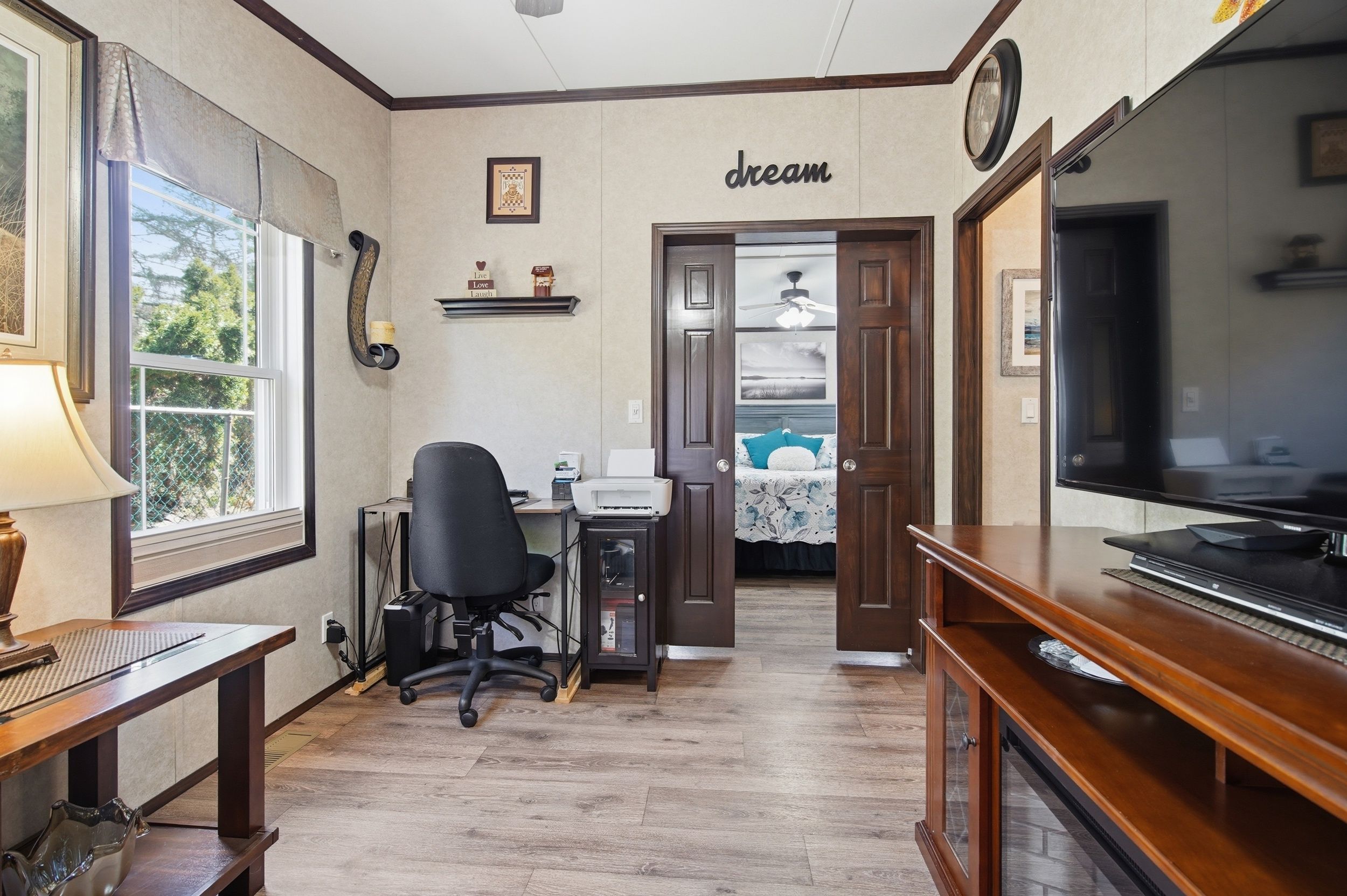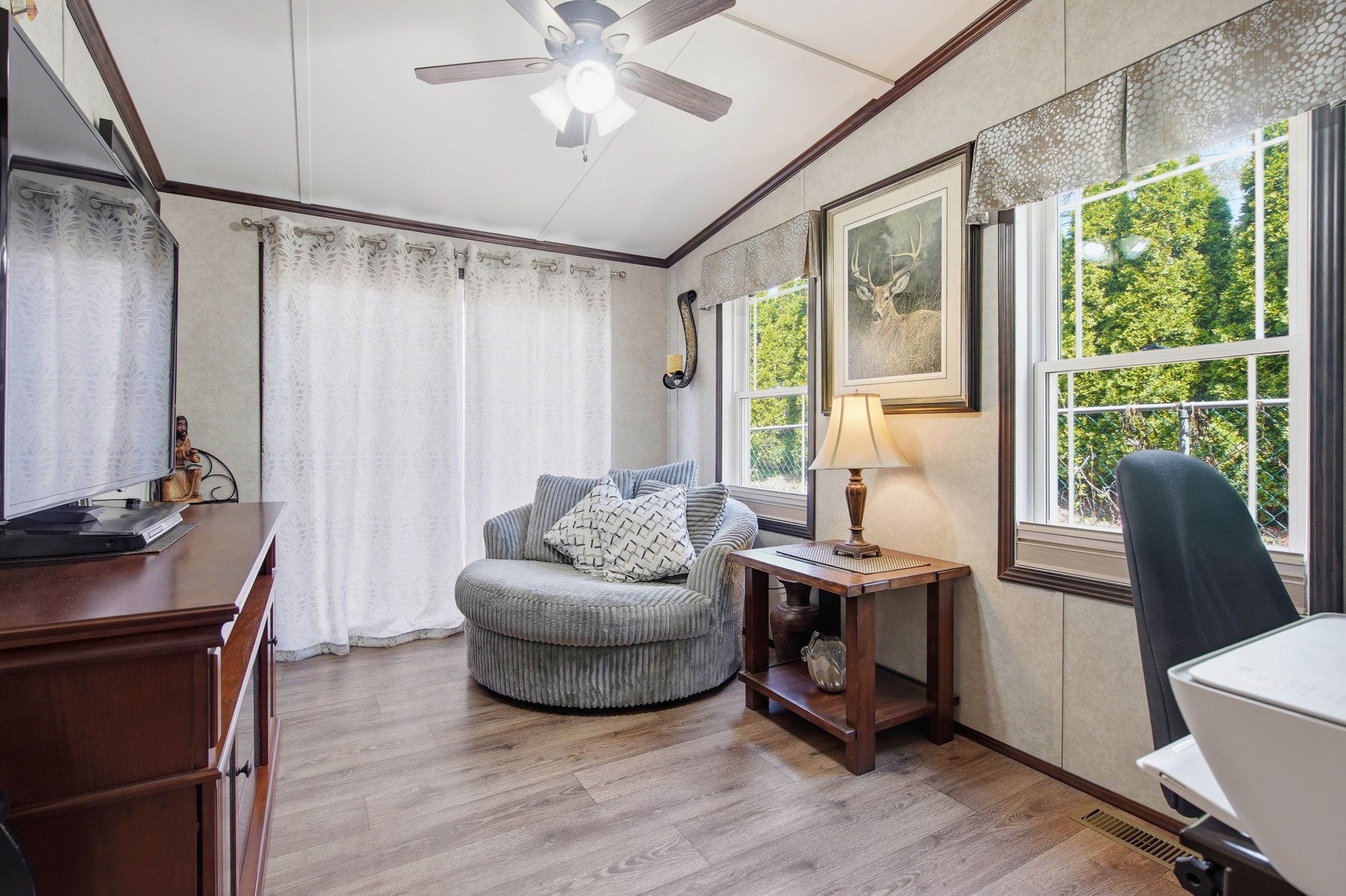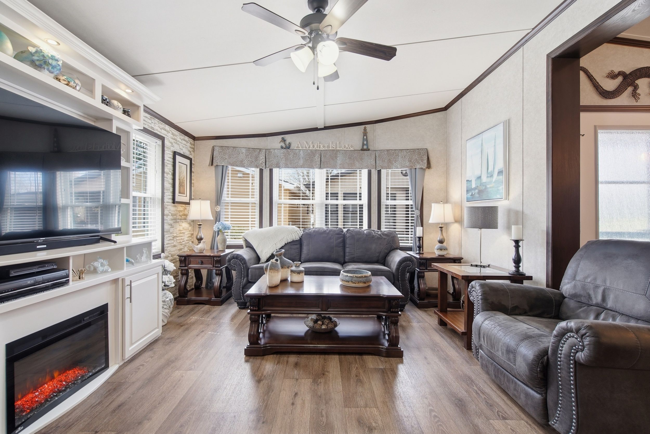 Welcome to oriole park #142 in komoka's sought-after 55+ community... Where lifestyle meets low-maintenance living. This beautifully maintained, original-owner modular home (2017) stands out with upgraded black trim, a premium location within the park, and exceptional indoor-outdoor living. Offering approximately 1,250 sq ft, this home features a bright, open-concept layout with a spacious kitchen complete with abundant cabinetry, large island, and included appliances... Flowing seamlessly into the dining area. The inviting living room showcases a custom built-in wall unit with electric fireplace and oversized windows that flood the space with natural light. A versatile den/family room with patio doors leads to a stunning 24' x 18' private deck... Perfect for entertaining, complete with gazebo, curtains, screens, and winter cover. Two generous bedrooms and two full bathrooms include a primary suite with ensuite and ample closet space. Additional highlights include forced air propane furnace and central air, convenient in-home laundry, upgraded blinds, in living room & dining room, front porch with glass railing, and excellent storage including an 8' x 12' shed and storage beneath the deck. The exterior is equally impressive with a double driveway and newly built 2-car carport (2025), propane bbq with quick connect, and beautifully maintained gardens. Residents enjoy access to resort-style amenities including a community centre with licensed bistro/bar, pool table, shuffleboard, darts, golf simulator, pickleball, fitness centre, event space, library, salon & spa, dog grooming station. Beautifully landscaped grounds with swimming pool, community fire pit and garden, bbq area, off leash dog park, and fish pondsa rare opportunity to enjoy living in one of komoka's most desirable adult lifestyle communities.