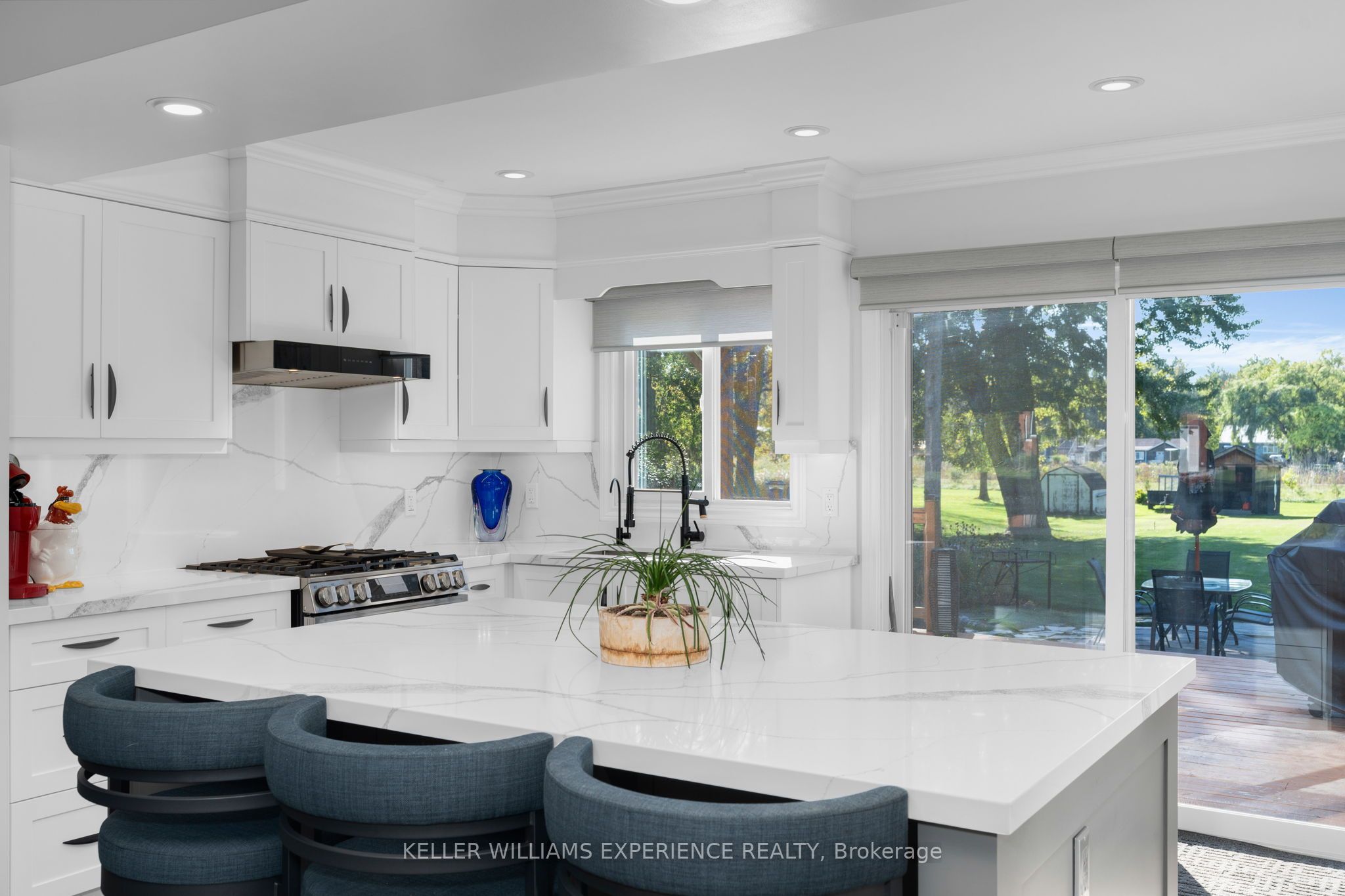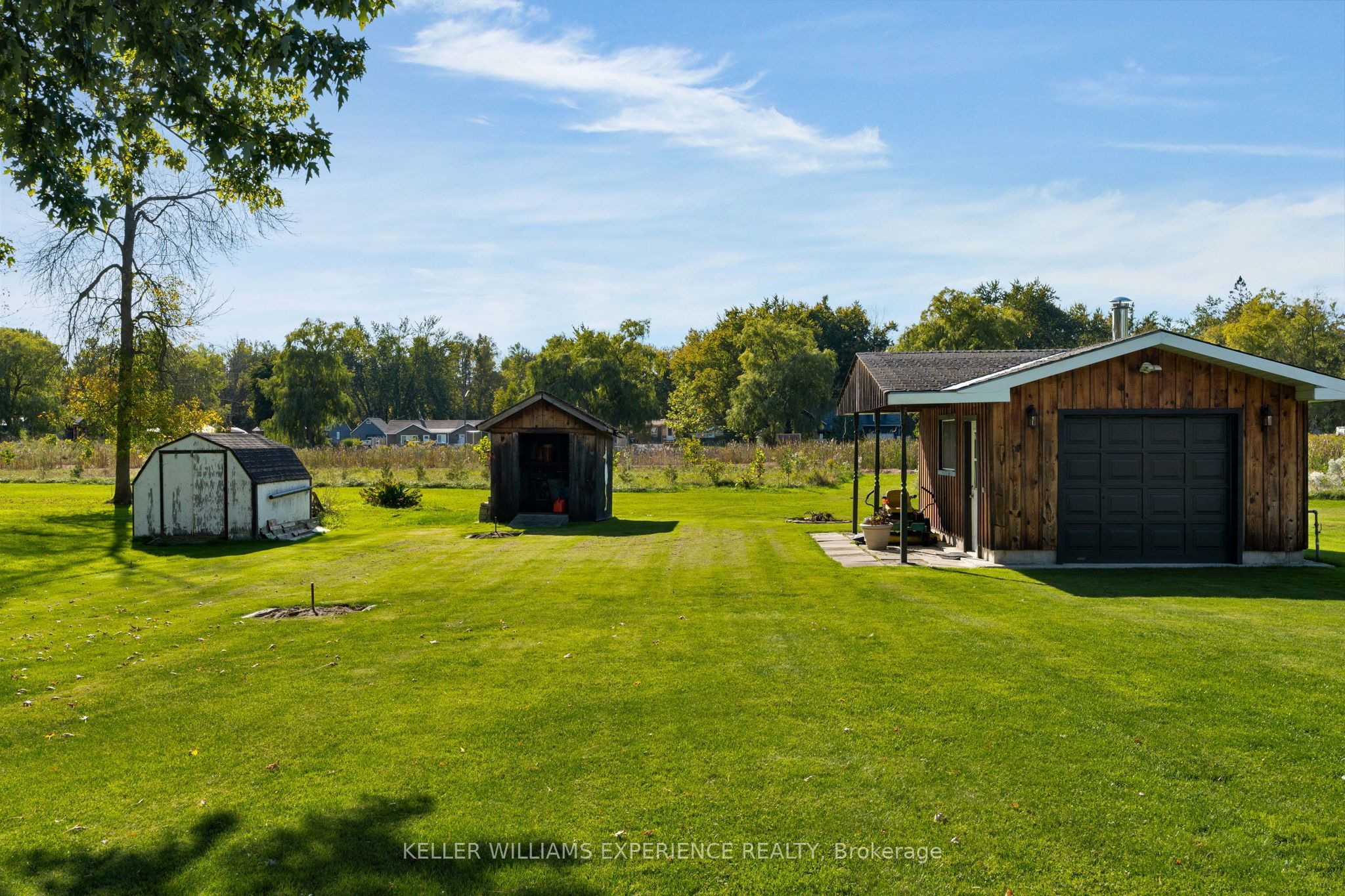 Nestled on a generous lot with peaceful nature behind and the lake just across the road, this property offers the perfect balance of family living and lakeside retreat. Just steps from the waterfront park, you can enjoy morning walks by the water, afternoons at the park, and evenings taking in the fresh lake breeze. Inside, the open-concept layout creates a warm and welcoming space where family and friends can gather with ease. A versatile separate area provides flexibility for a workshop, garage, or hangout, making the home as practical as it is inviting. Outdoors, a large deck and stone patio with a hot tub set the stage for relaxation, entertaining, and enjoying the beautiful natural surroundings. With its serene setting, proximity to the lake, and spaces designed for both everyday living and year-round enjoyment, this home is truly special.