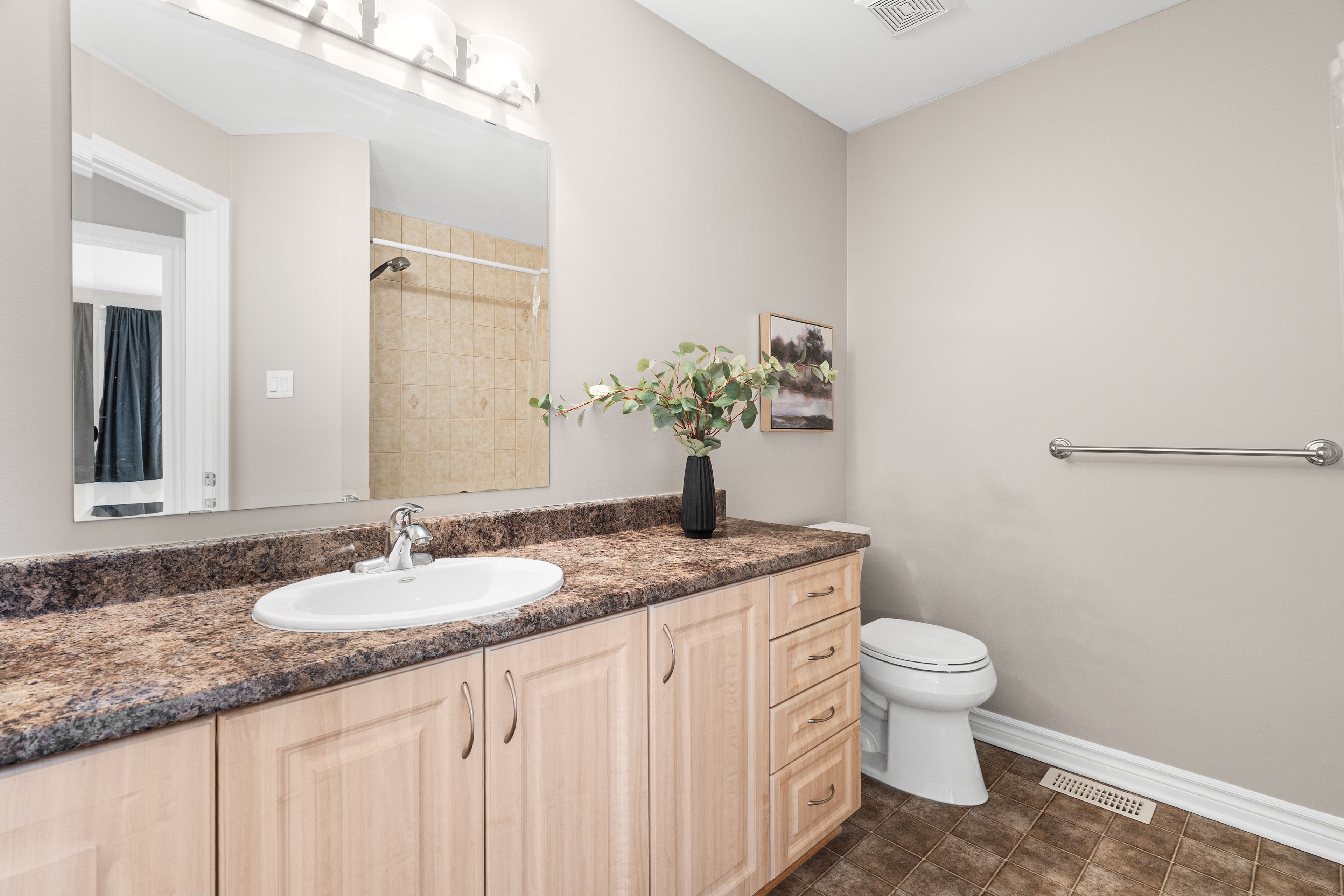 Bright and spacious 3+1 bedroom, 4 bathroom home in desirable avalon with no rear neighbours! This well-maintained property features an attractive layout with vaulted ceilings and an abundance of natural light throughout. The main level offers a welcoming living area, dedicated dining space, and a functional kitchen with ample cabinetry, stainless steel appliances, and an eating area with access to the backyard. You'll also find a cozy family room with fireplace, convenient laundry room, and powder room on this level. Upstairs, the primary suite includes a walk-in closet and private 4-piece ensuite, along with two additional bedrooms and a full bathroom. The finished basement adds valuable living space with a rec room, fourth bedroom, and another full bathroom - ideal for guests or extended family. Recent updates include a new furnace and a/c (2024), fresh paint (2026), and updated lighting (2026). Enjoy the fully fenced backyard with a large deck - perfect for entertaining! Conveniently located close to parks, schools, and amenities. Please note: some photos are virtually staged.