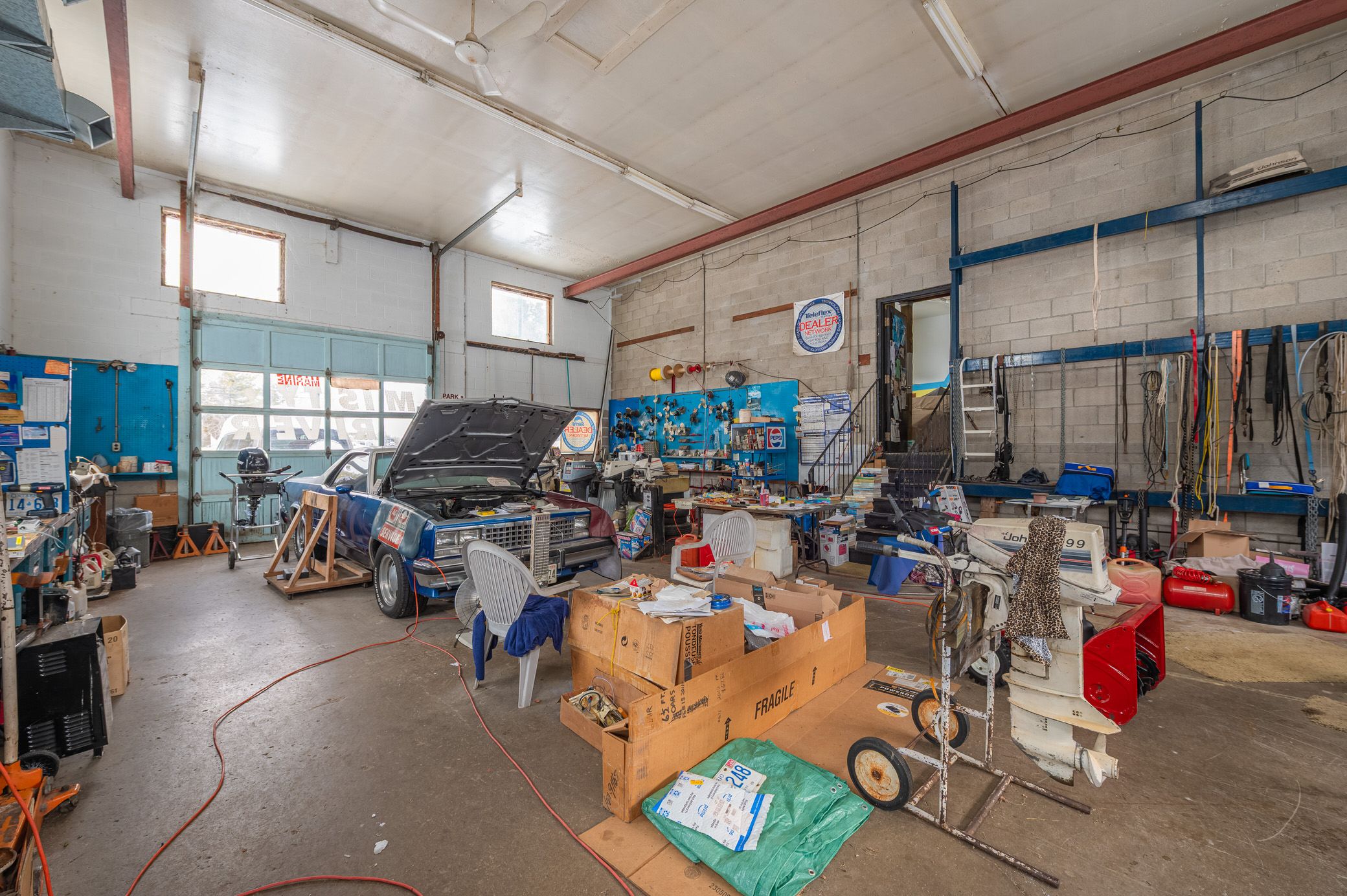 • Spacious built-in shop/garage/showroom with drive-thru access for convenience.